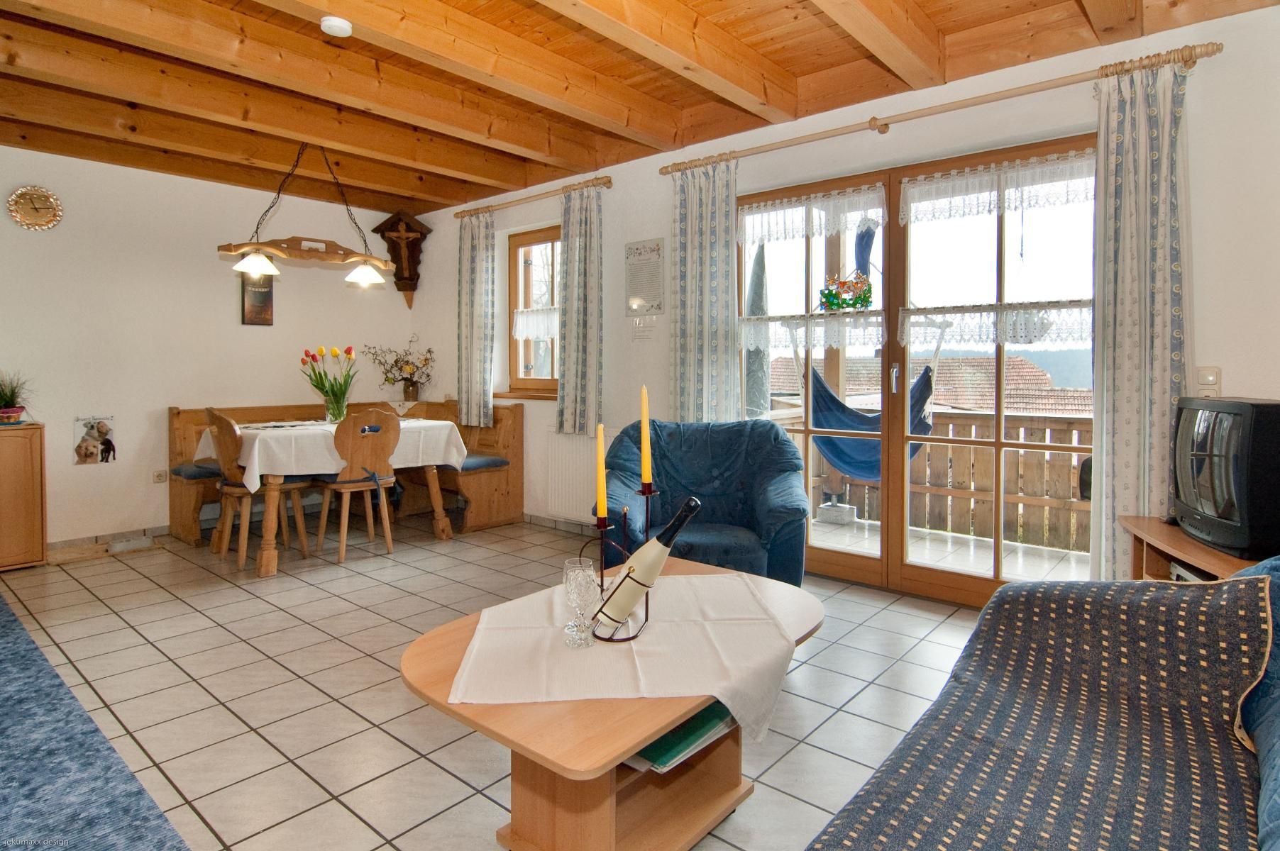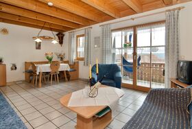 Diese sind liebevoll und komfortabel für 2 bis 5 Personen ausgestattet. Wohnküche, zwei Schlafzimmer, Dusche, WC und extra WC, Balkon oder Terrasse, mit Blick auf Berge, Wiesen und Wälder.