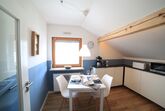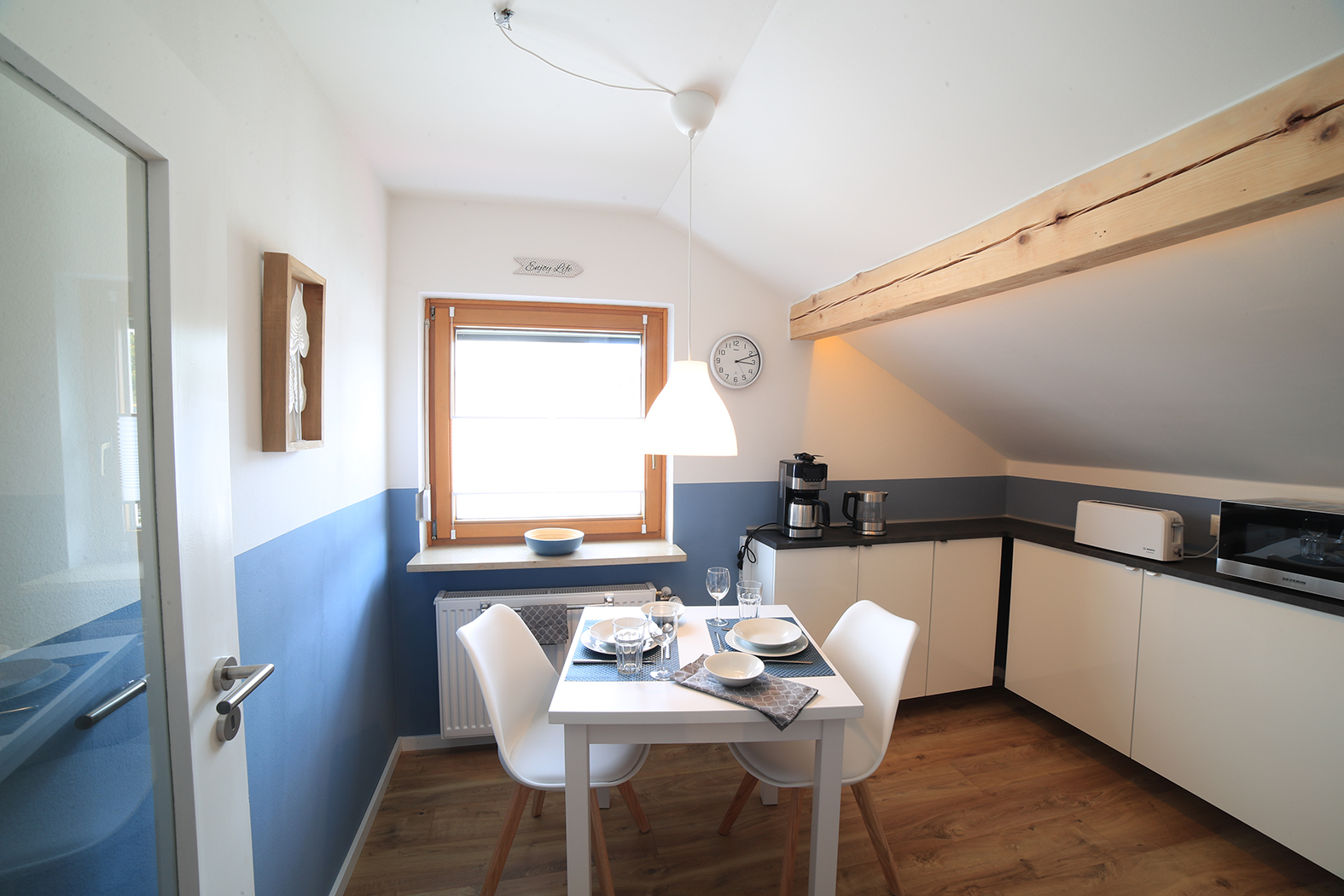 Küche: Essplatz für 2 Personen, weiteres Kind möglich, Cerankochfeld, Kühlschrank mit 3*-Gefrierfach, Mikrowelle mit Grill, Kaffeemaschine, Wasserkocher, Toaster, USB-Ladebuchsen