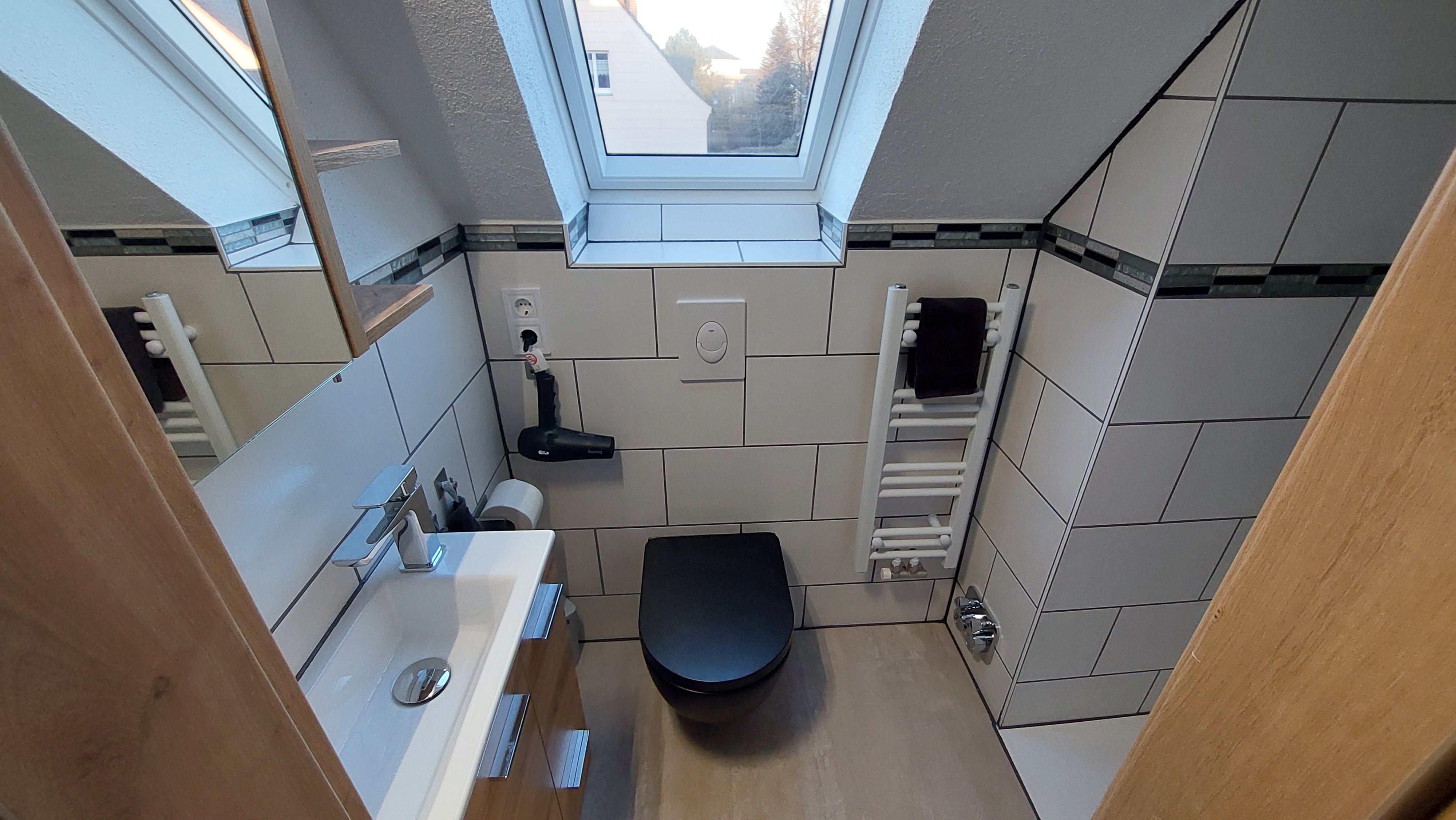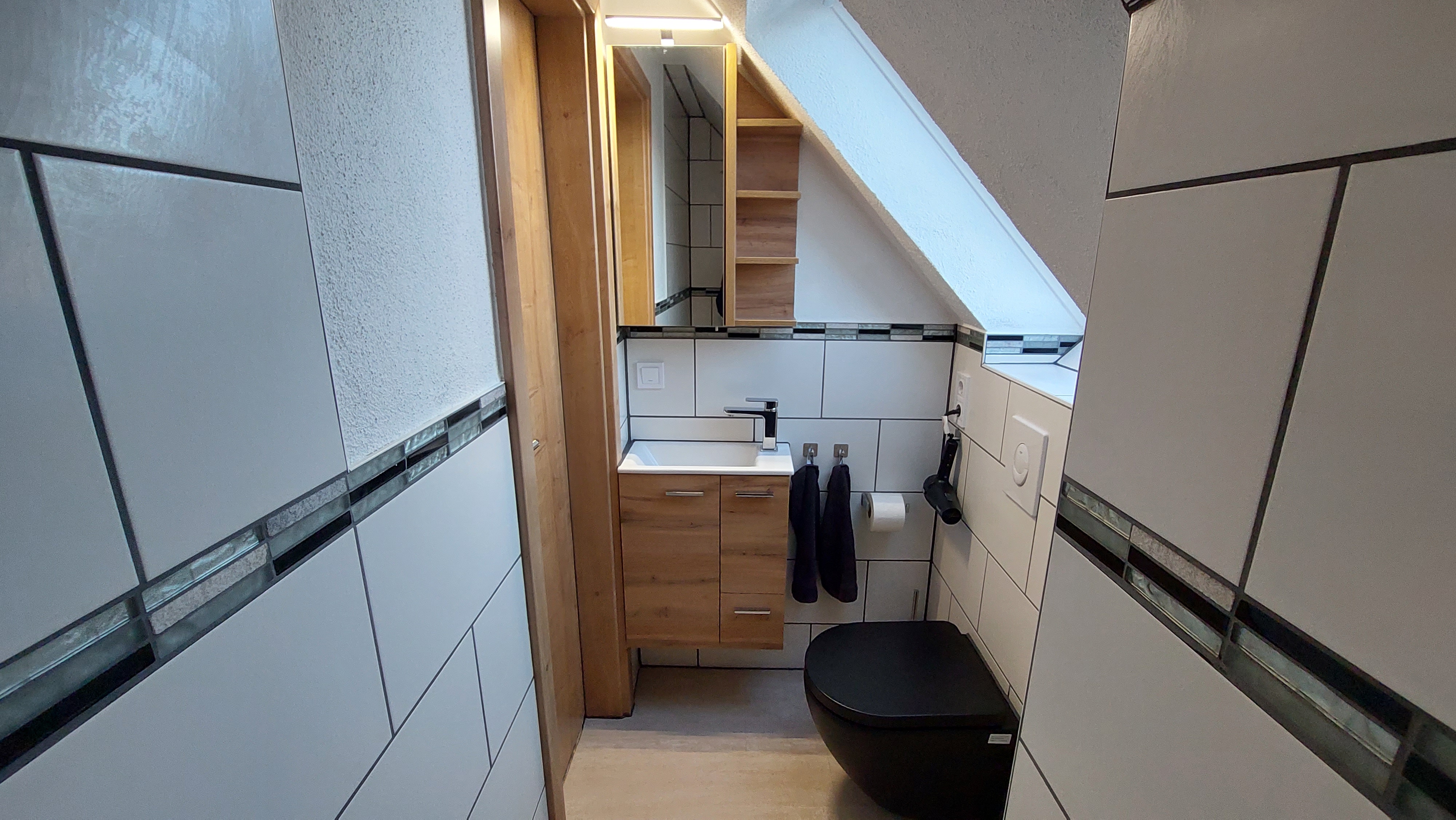 Ein weiteres Gäste-WC steht im Erdgeschoss zur allgemeinen Benutzung zur Verfügung.