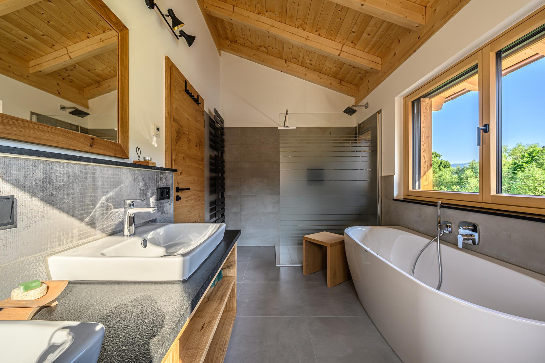 Jedes Chalet hat zwei hochwertige Bäder. Ein Bad verfügt zusätzlich über eine Badewanne.