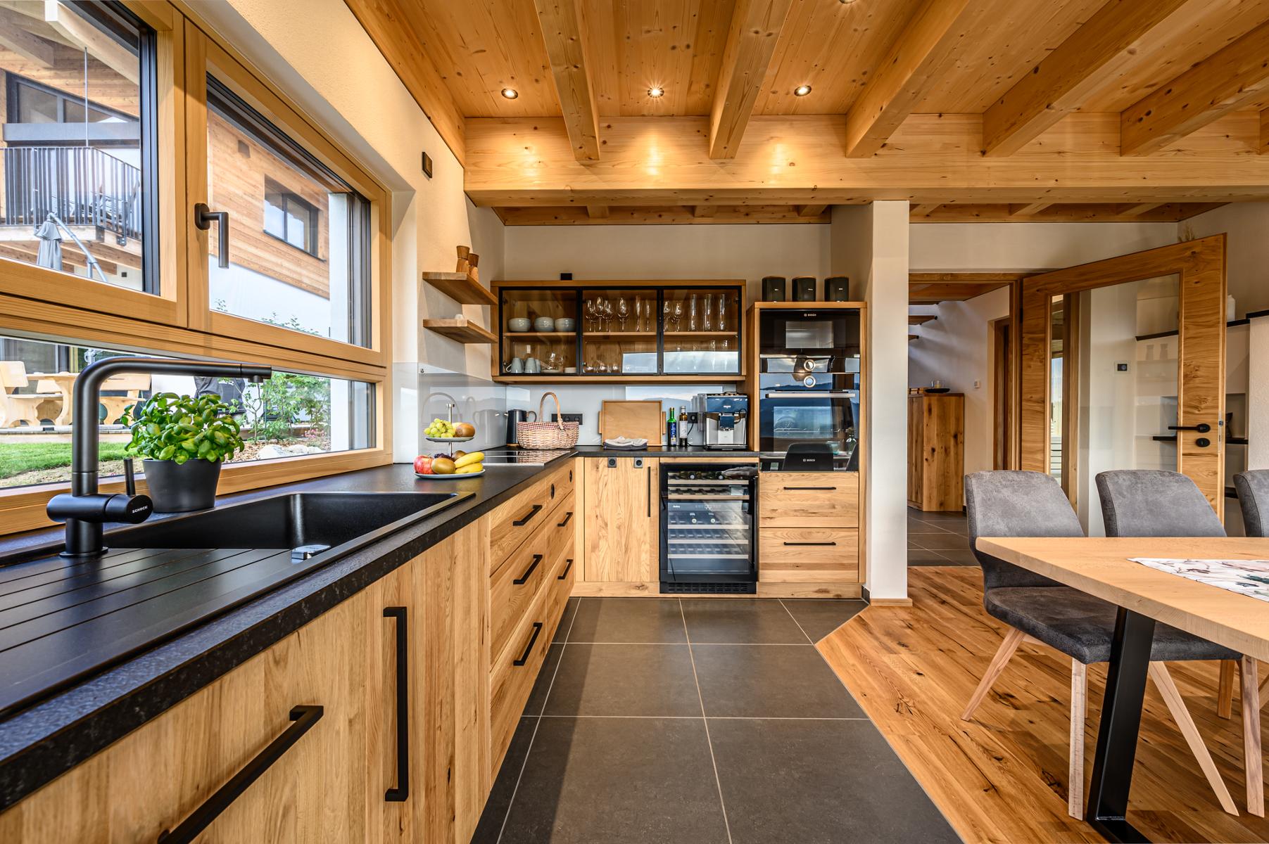 Durch die Verwendung von natürlichen Baumaterialien, wie heimischen Fichtenholz und Lehmputz wird eine einzigartige Wohlfühlatmosphäre geschaffen. Hier verschmelzen traditionelle Bauweise mit modernem Design und natürlichem Luxus.