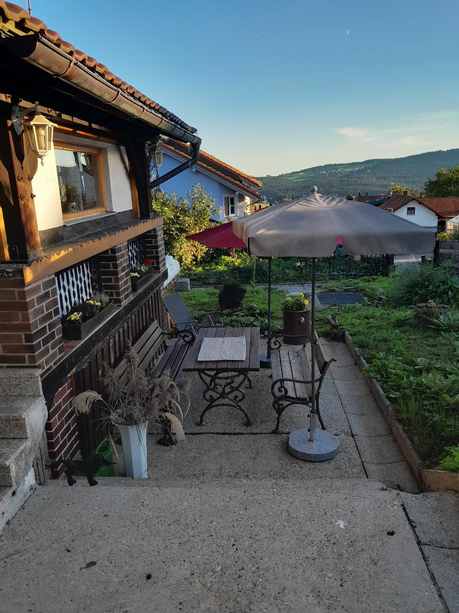 Wunderschönes 97 m² großes Ferienhaus neu renoviert und liebevoll eingerichtet. Im großzügigen Schlafzimmer befindet sich ein Doppelbett, die Möglichkeit eines dritten Bettes und auf Wunsch ein Babybett . Im rustikal eingerichteten Wohnzimmer garantiert ein Schwedenofen gemütliche Stunden am Abend. Das Schlafsofa bietet 2 zusätzliche Schlafplätze. Atmen Sie durch und genießen Sie den Seeblick zum Badeweiher vom Wintergarten aus. Die neue Küche ist hochwertig ausgestattet, unter anderem mit Ofen, Spülmaschine, Kaffeemaschine, Wassersprudler, Mikrowelle, uvm. Das Bad ist mit Waschbecken, Dusche und Badewanne ausgestattet. WC ist vom Bad getrennt. Der hauseigenen Grillplatz im Naturgarten und Freisitz, sowie eine weitere Terrasse laden zum Verweilen ein. Das Ferienhaus befindet sich in unmittelbarer Nähe zum Badeweiher, mit Natur-Kinderspielplatz mit Tippis und Wasserspielbereich, Kneippanlage und großzügiger Spiel- und Relaxwiese mit Liegen und Bademöglichkeiten.