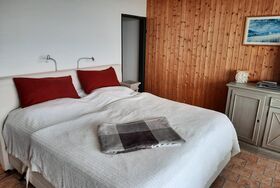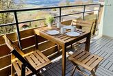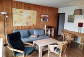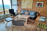 Das geräumige 2,5-Zimmer-Familien Apartment hat einen großen Balkon mit traumhaftem Fernblick. In dem hellen, behaglichen Wohnzimmer befindet sich eine Ledercouch (kann zum Schlafsofa für die 5. Person umgebaut werden), zwei Sessel, der TV (mit Magenta-TV Premium) sowie der Esstisch. Schneller WLAN Anschluss ist ebenfalls vorhanden.