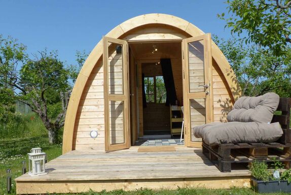Sich selbst mit Frühstück/Brotzeit versorgen? – Unsere zwei Pods sind ausgestattet mit Kühlschrank, Espressomaschine, Wasserkocher, Geschirr uvm.