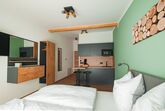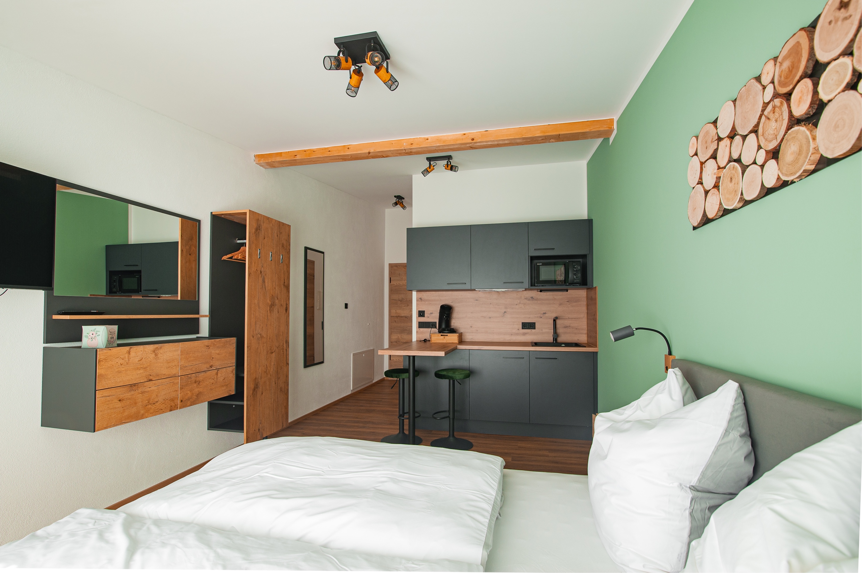Das Appartement hat eine Größe von 23 qm und ist mit einem Doppelbett 180x200 und TV und Internetanschluss ausgestattet.