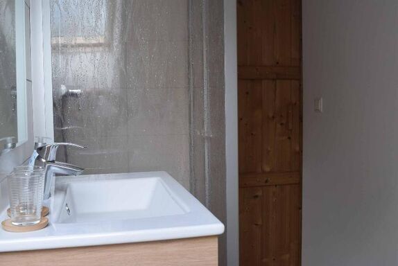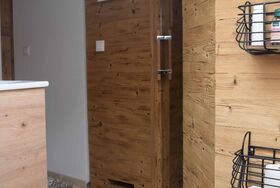 Im Badezimmer gibt es ein WC sowie eine Dusche und eine Zirbensauna. Handtücher und Bettwäsche sind vorhanden, auch Wlan und ein Parkplatz können kostenfrei genutzt werden.