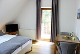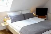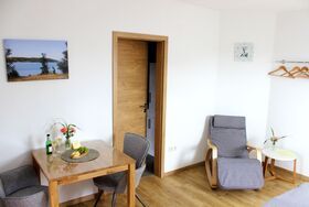 Unser Appartement mit 26 m² Wohnfläche im ersten Stock bietet Platz für bis zu 2 Personen. Das Wohn- / Schlafzimmer ist mit einem Doppelbett (200cm x 160cm), einem Satelliten-TV, Relax-Liege und einer Essecke ausgestattet. Die Wohnung besitzt zudem eine gut ausgestattete Küche mit Kühlschrank, Gefrierschrank, Herd, Backofen, Mikrowelle, sowie Toaster, Wasserkocher und Kaffeemaschine. Zudem ist ein Zugang zum Balkon incl. Sonnenschirm und Sitzgelegenheit mit Tisch vorhanden. Das Badezimmer mit Dusche, Spiegel und Föhn runden das Gesamtbild ab. Auch im Garten befindet sich eine Sitzgelegenheit, die zum Relaxen einlädt. Bitte beachten Sie, dass keine Haustiere erlaubt sind. Im Übernachtungspreis sind Endreinigung, Nebenkosten, PKW-Stellplatz, die gesetzlich gültige Mehrwertsteuer, Bettwäsche, Hand-, Spül- und Geschirrtücher sowie Toilettenpapier enthalten. Küchentücher und Spülmittel liegen bereit.