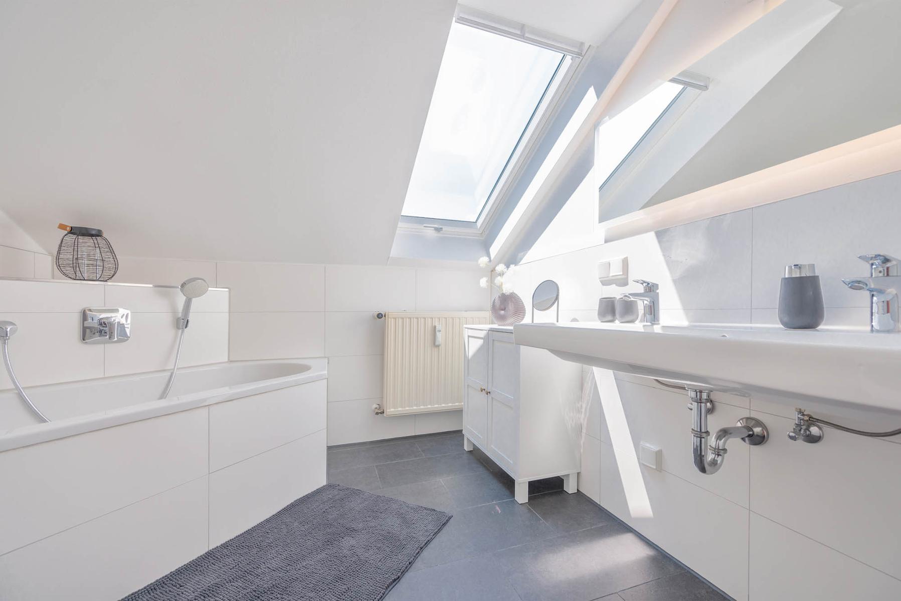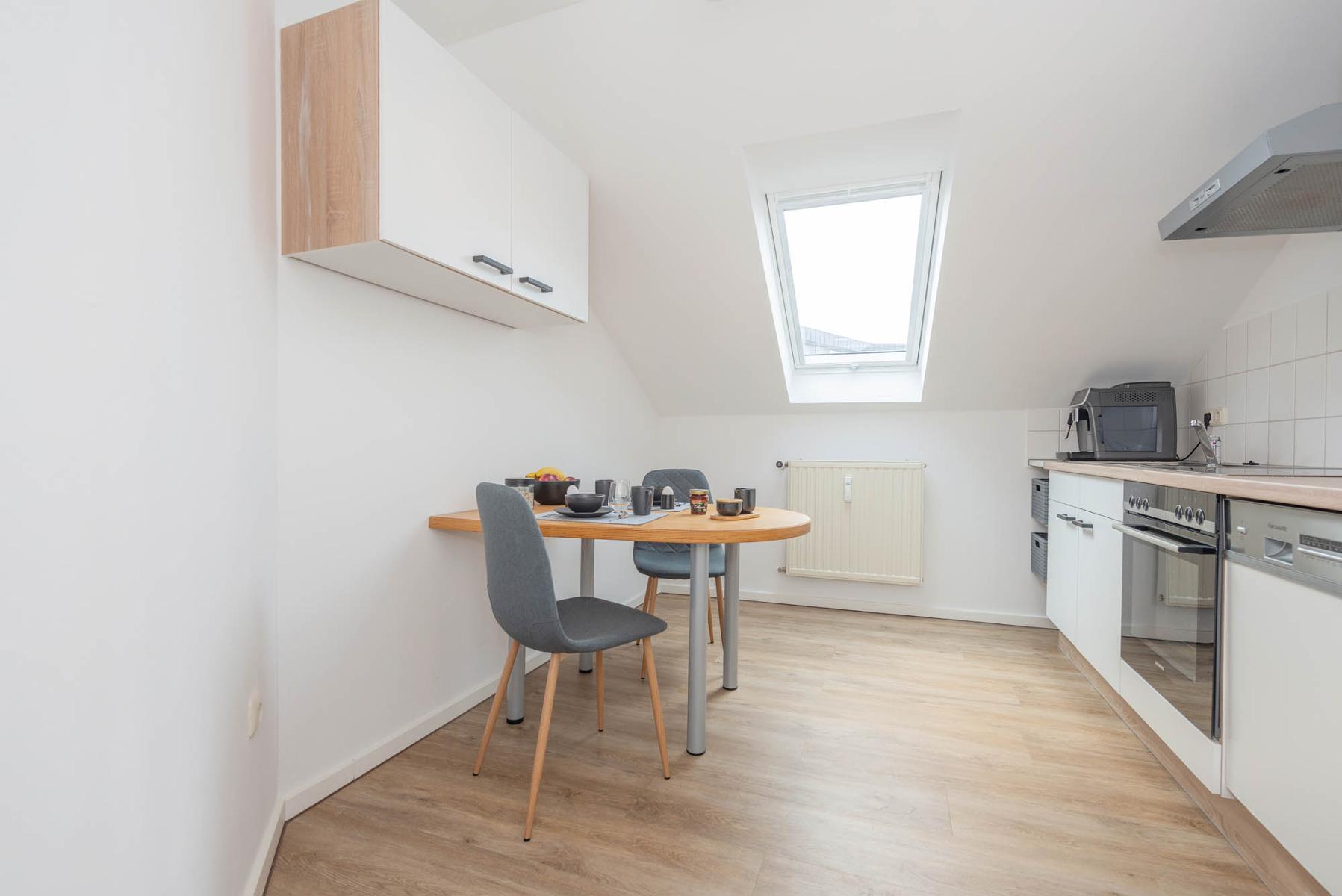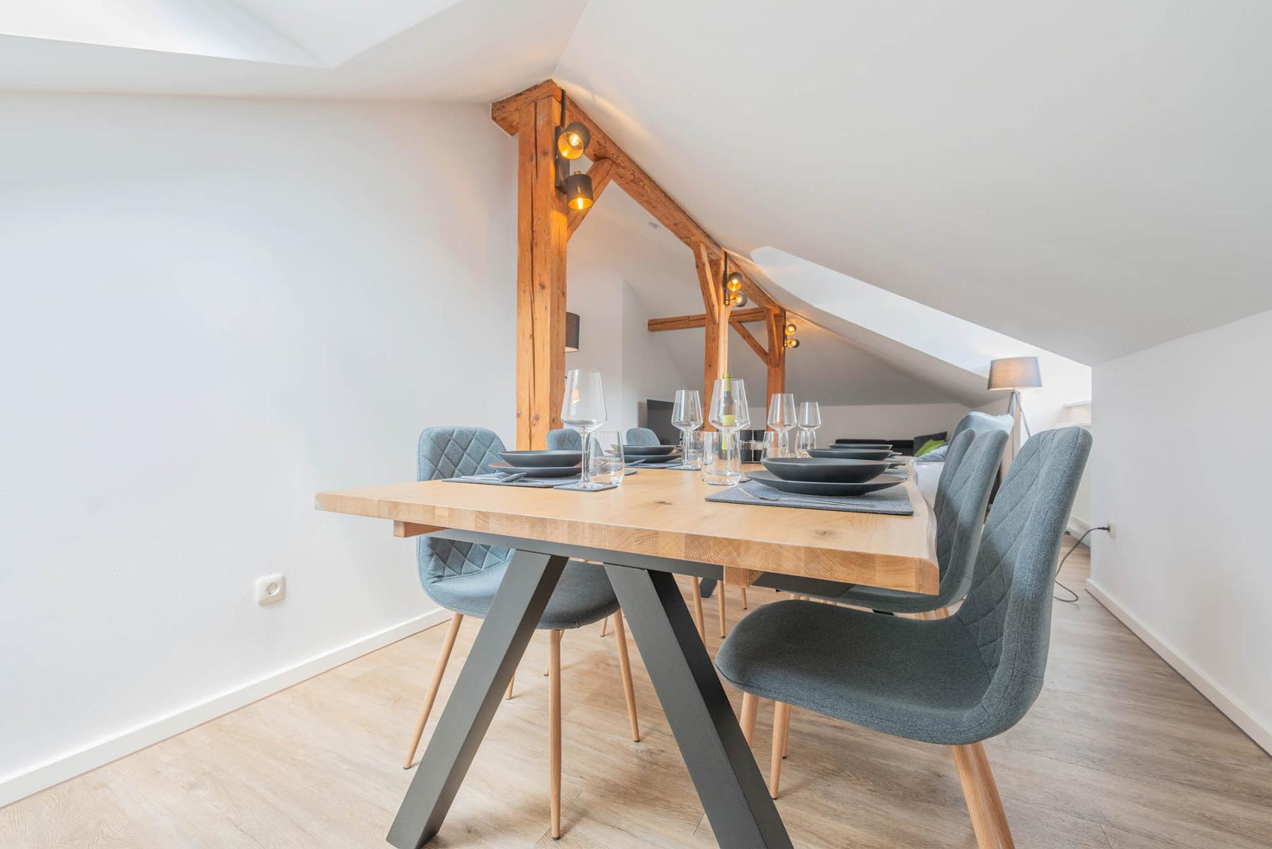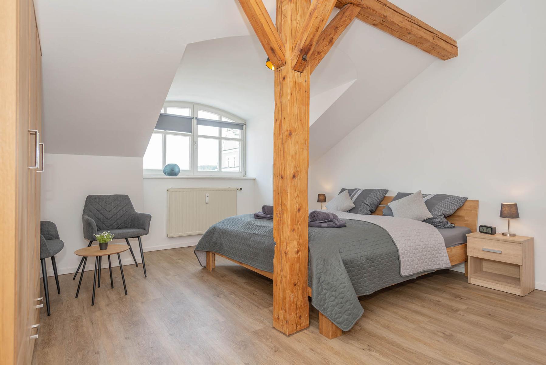 Unsere neue, modern eingerichtete, Dachgeschoss-Ferienwohnung mit ca. 100 m² im 2. Stock bietet Platz für bis zu 6 Personen. Das gemütliche Wohnzimmer mit Schlafsofa (ausziehbar auf 130x197) und Flachbild-TV sowie Internetradio lädt zum Verweilen ein.