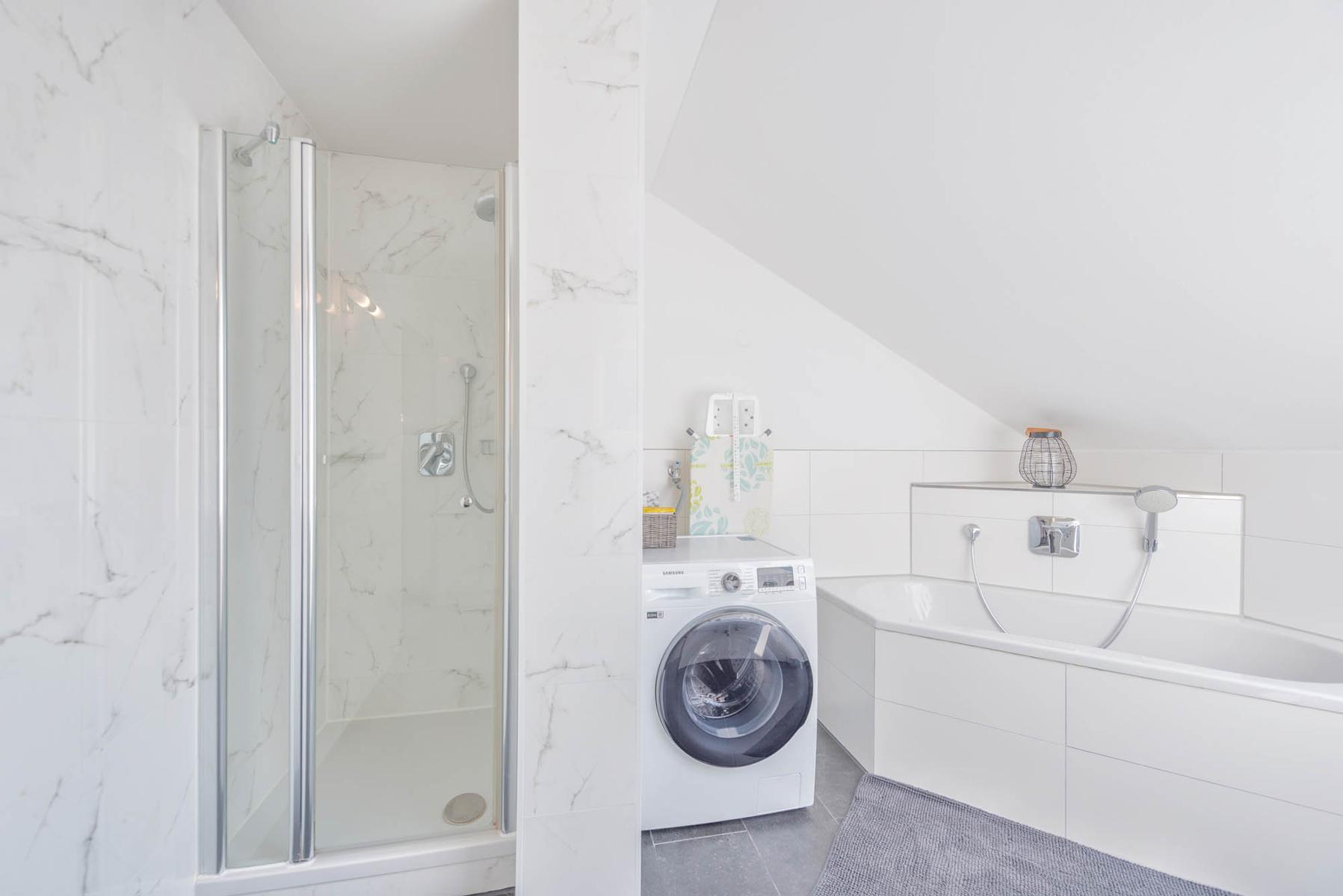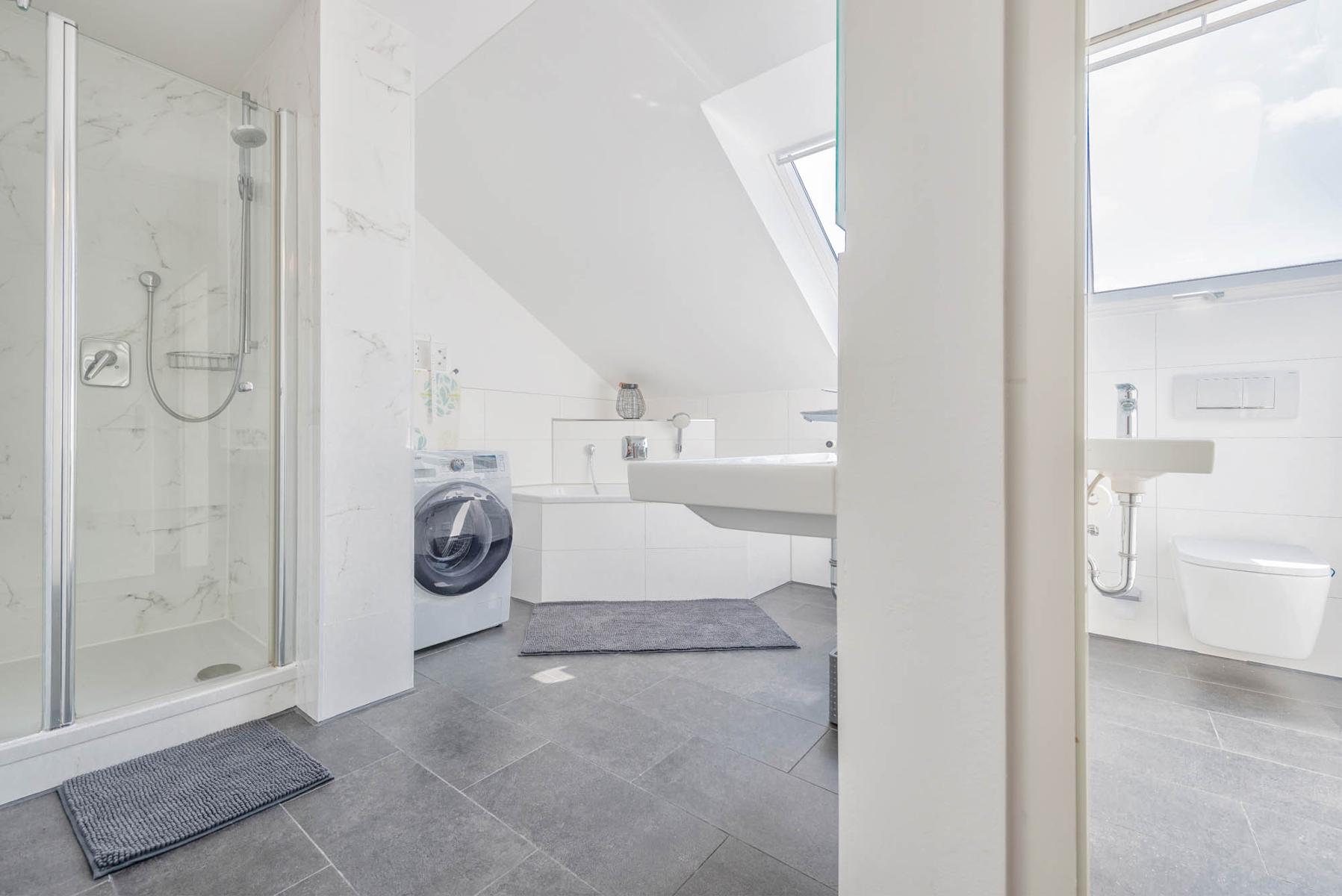 Zum Reinigen ihrer Kleidung steht ihnen ein Waschmaschine mit Trockenfunktion, Bügelbrett und ein Bügeleisen in der Ferienwohnung zur Verfügung.