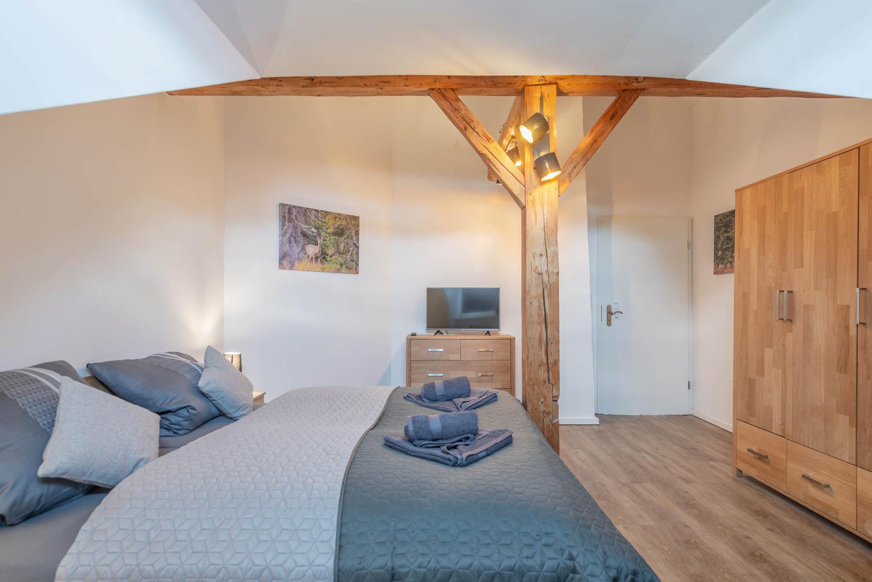 Das Waidla Studio verfügt über 2 Schlafzimmer mit jeweils einem Doppelbett. Das helle, geräumige Badzimmer mit Dusche, Badewanne, Haarfön, Hand- und Duschtücher rundet das Gesamtbild ab.