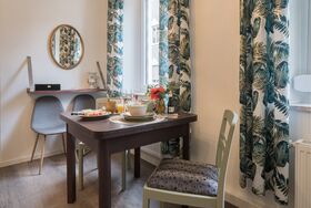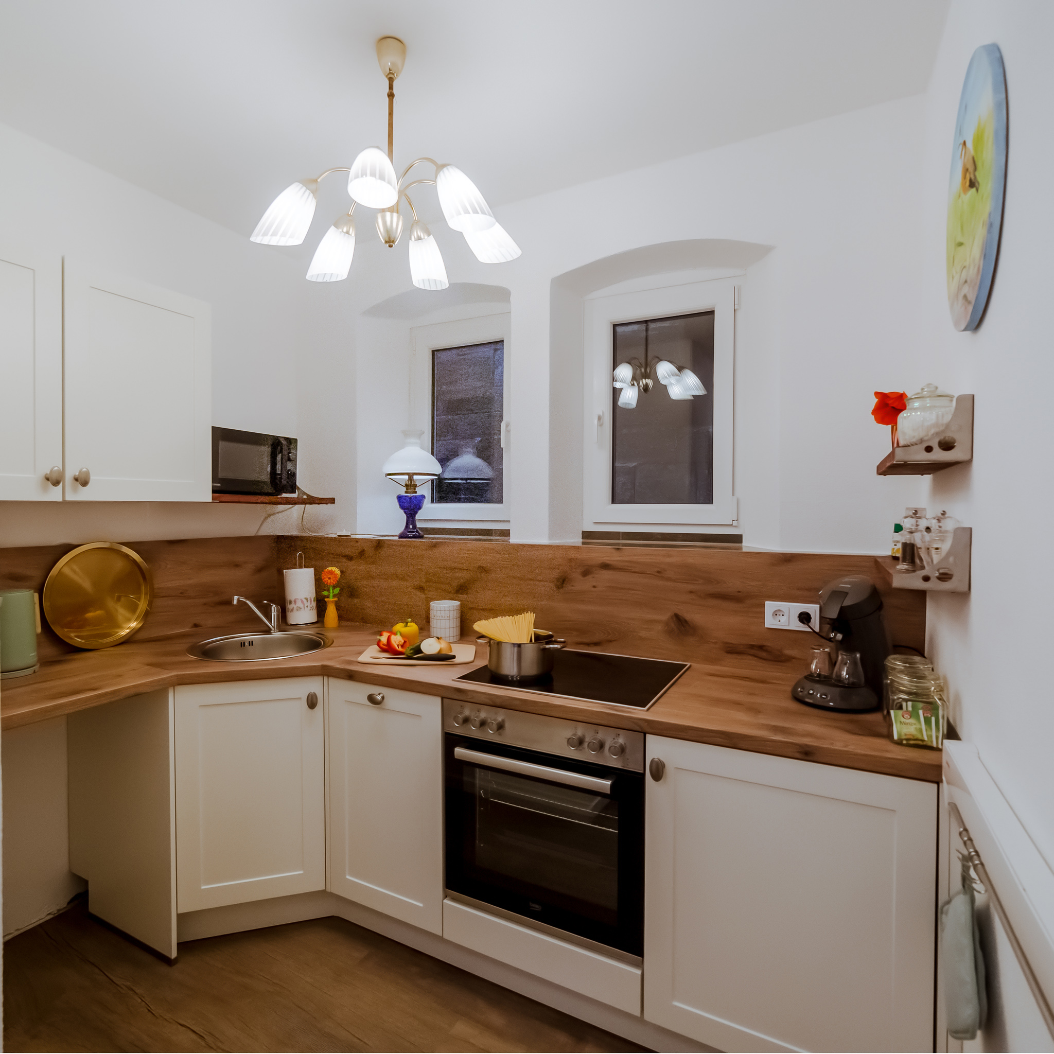 Die 2023 kernsanierte Ferienwohnung mit 45 m² Wohnfläche im 1. Obergeschoss bietet Platz für 1-2 Personen. Das gemütlich eingerichtete Wohnzimmer mit Essbereich lädt zum Verweilen ein. Die vollausgestattete Küche mit Geschirrspüler, Kühlschrank inkl. Gefrierfach, Herd mit Umluftbackofen, Mikrowelle, Wasserkocher, Toaster und Kaffeepadmaschine lässt keine Wünsche offen. Die alte Färberei verfügt über ein Schlafzimmer mit Doppelbett (160x200cm) und hat ein Bad mit Dusche und Handtuchtrockner. Handtücher und Bettwäsche sind kostenfrei, das WLAN können Sie ebenfalls kostenlos nutzen.