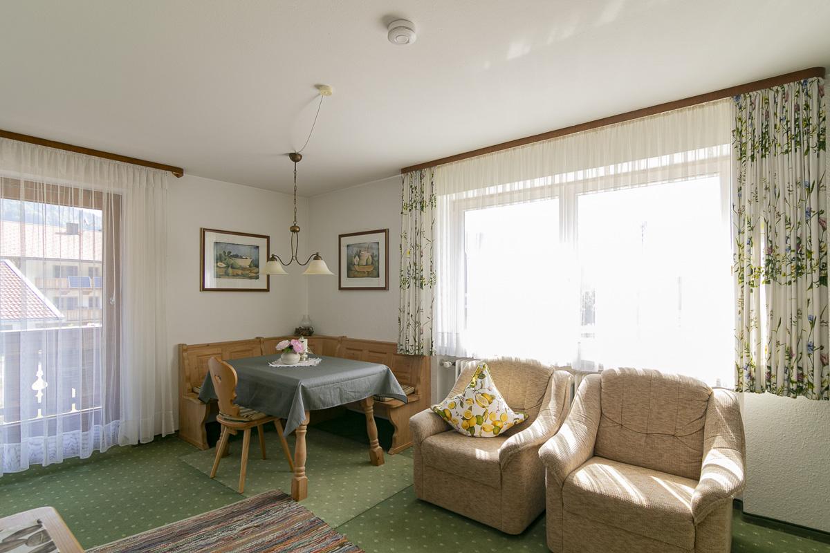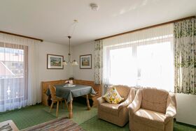 Ausgestattet mit gemütlicher Einrichtung erleben Sie Ihre Urlaubstage auf 45 m² in der 2-Zimmer Wohnung im 1. Stock unseres Gästehauses.