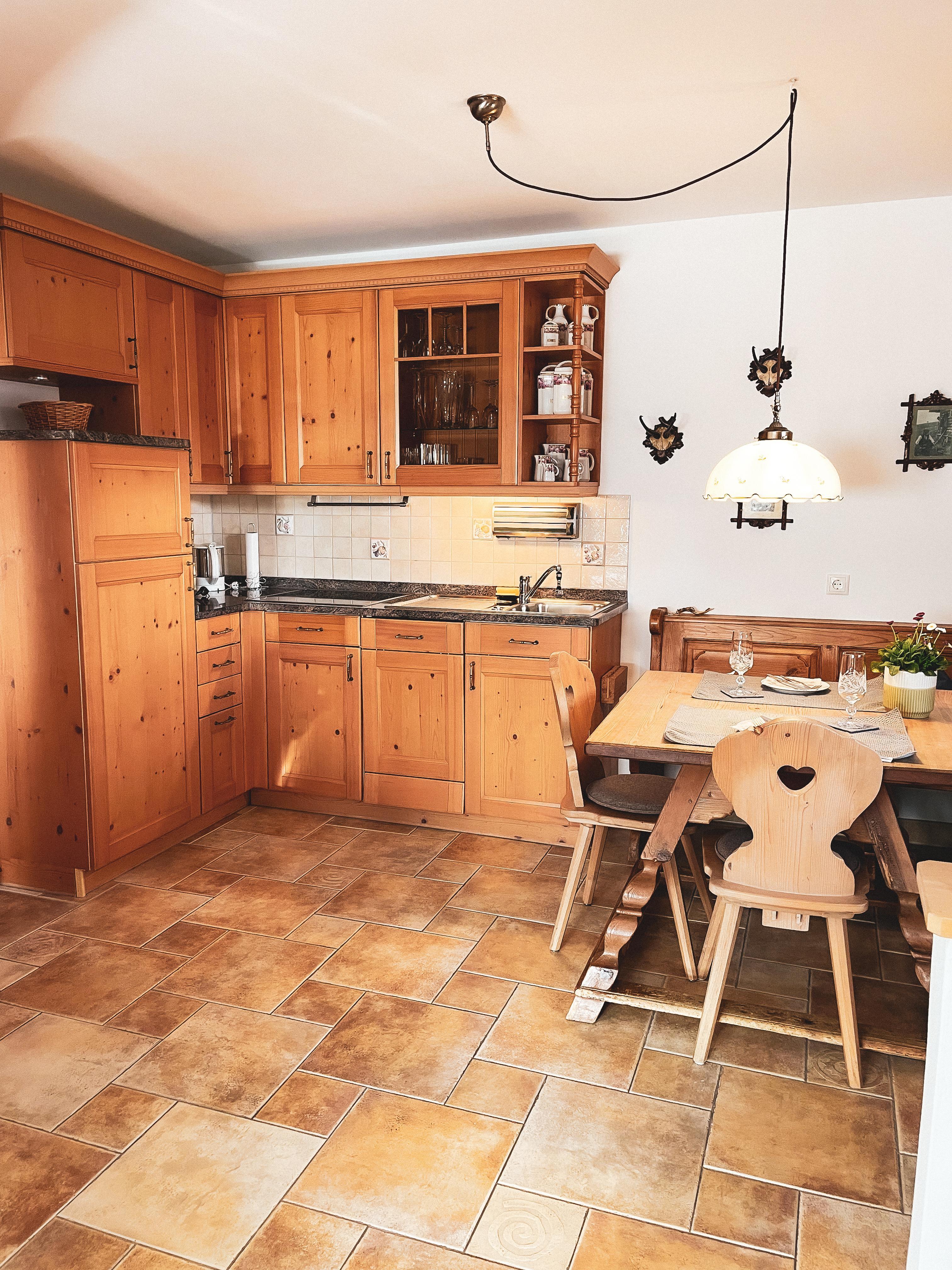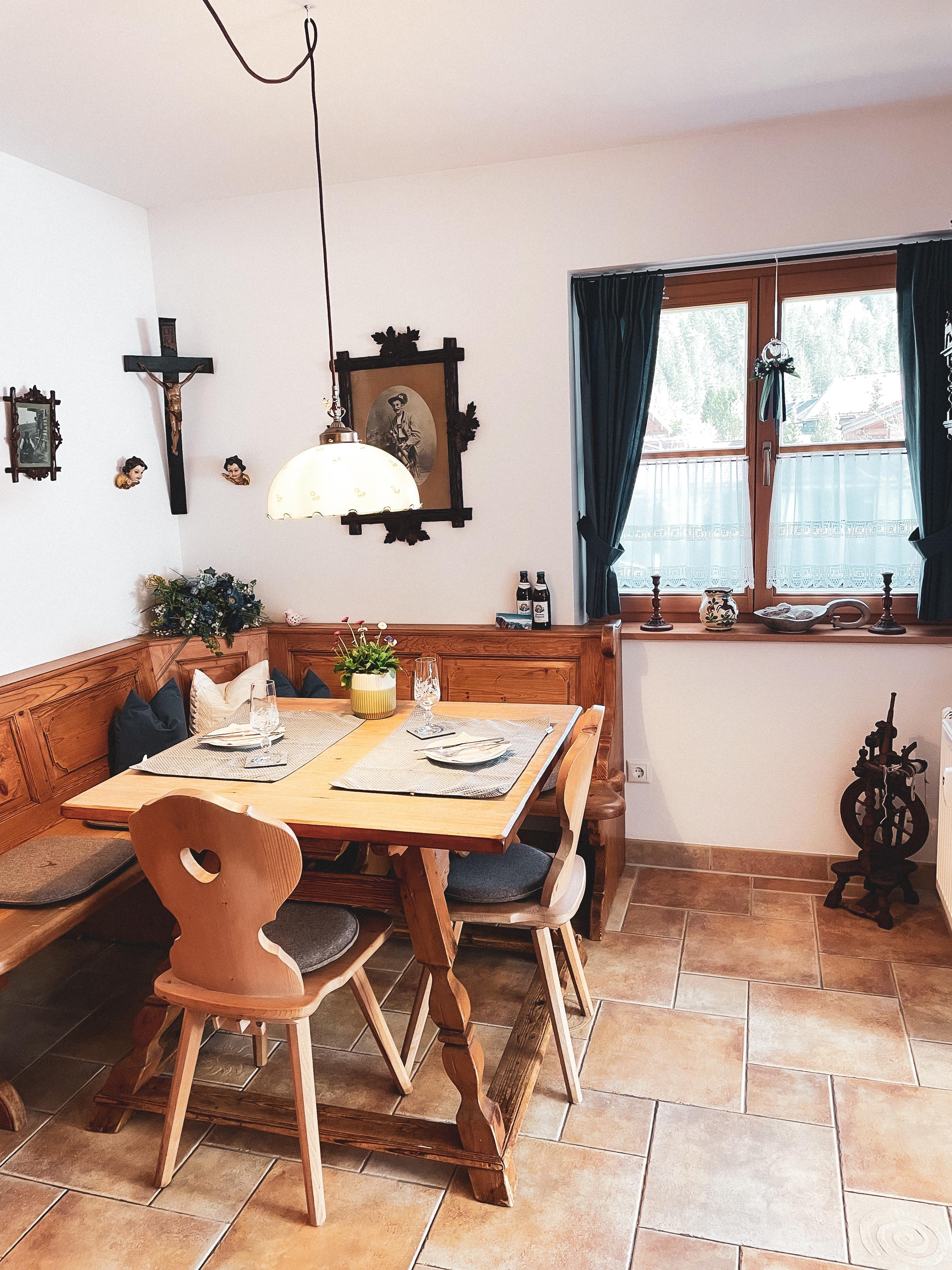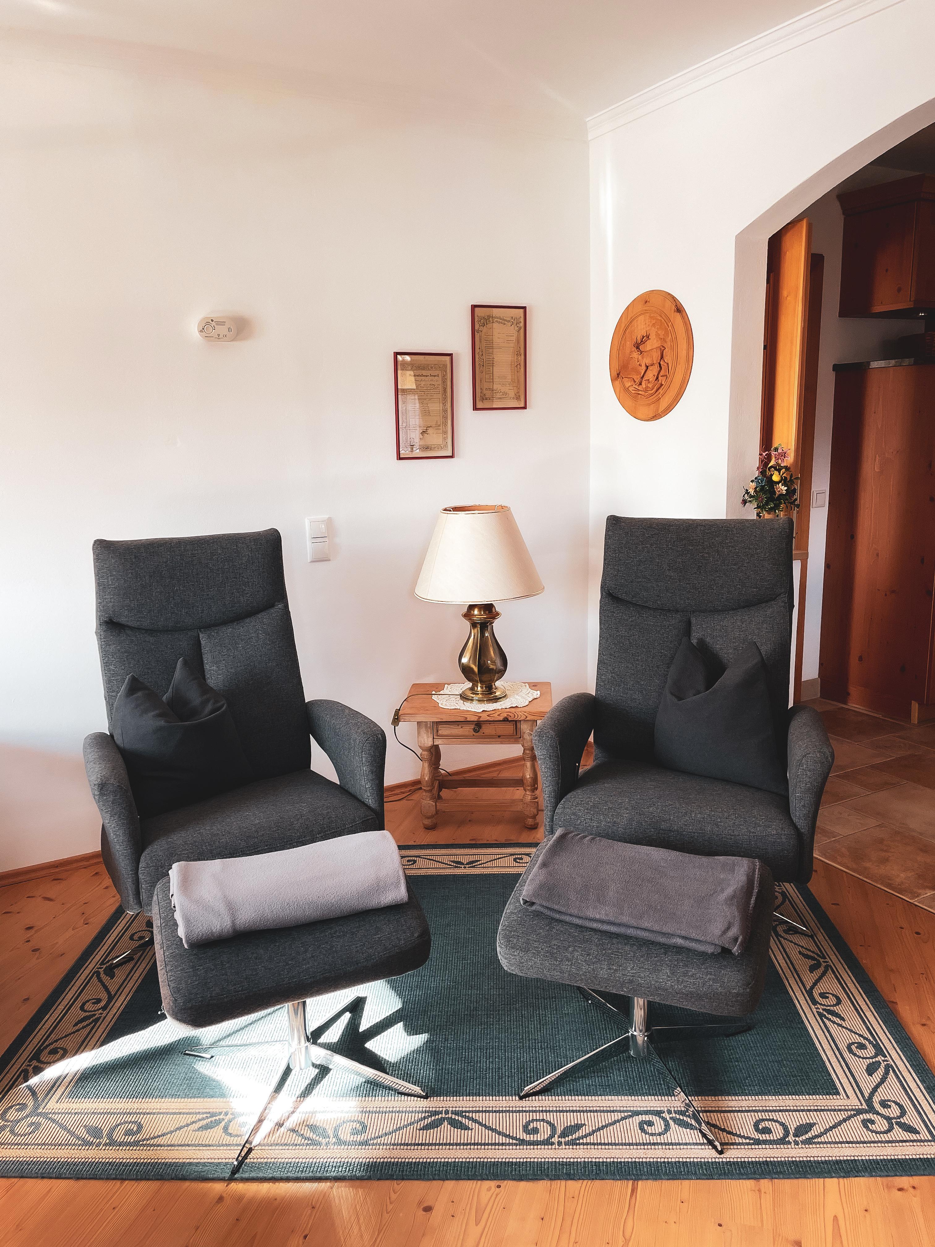 Die Wilderer Wohnung bietet Platz für bis zu 3 Personen und überzeugt mit einem offenen Wohnbereich samt gemütlichen Relaxstühlen, einer voll ausgestatteten Küche sowie einem separaten Schlafzimmer im traditionellen bayerischen Stil. Das großzügige Tageslichtbad ist mit einer Dusche und Badewanne ausgestattet. Besonders hervorzuheben ist der große private Balkon, der mit Liegestühlen und einem Tisch ausgestattet ist und einen grandiosen Blick auf die umliegenden Berge bietet.