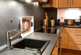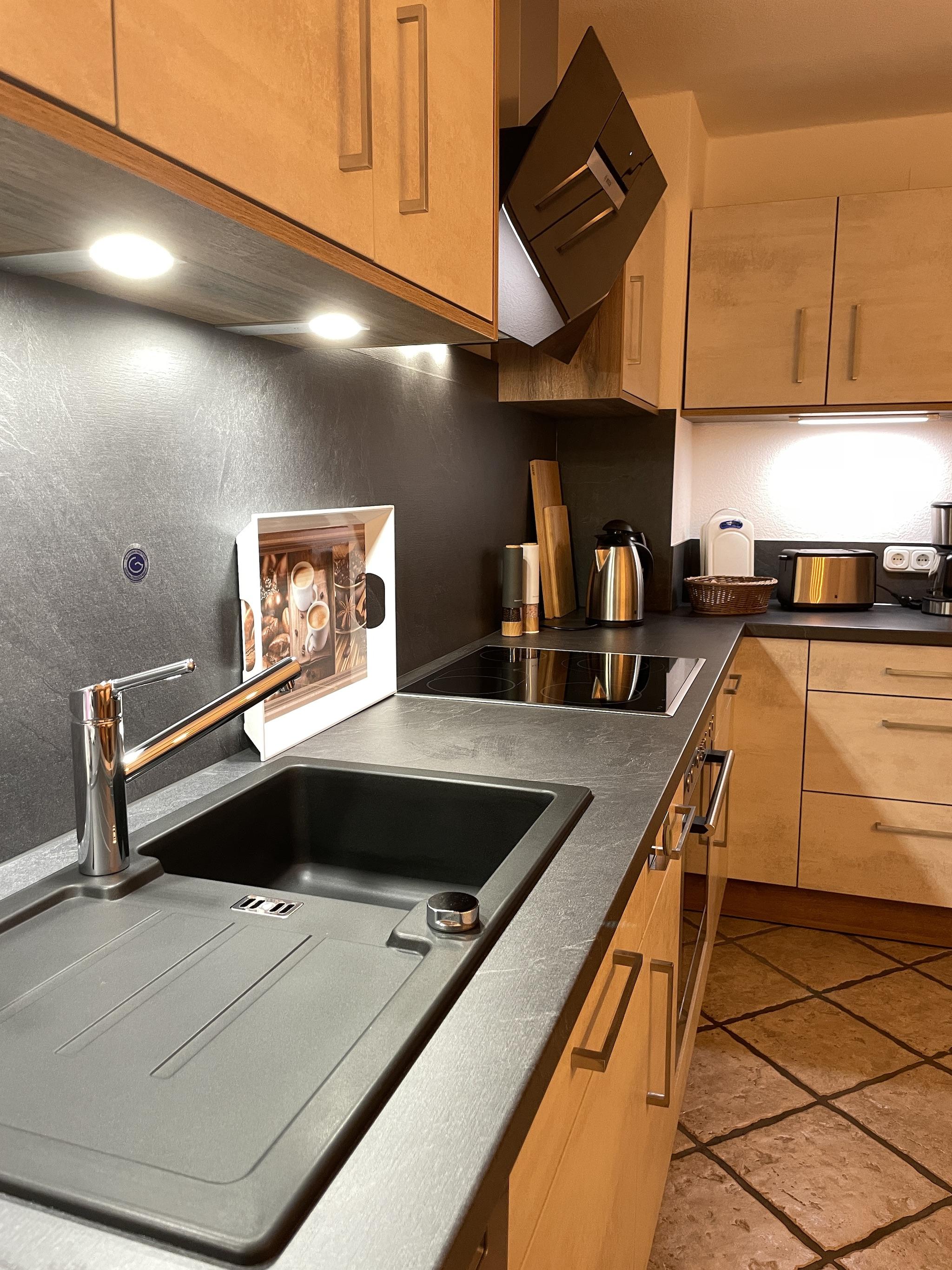 Die große Küche ist komplett ausgestattet mit Kaffeemaschine, Toaster, Wasserkocher, Geschirrspüler, Kühlschrank und Backofen und läßt keine Wünsche offen. Unser Leitungswasser ist mit GRANDER belebt und hat dadurch eine ganz besondere Trink-Qualität.