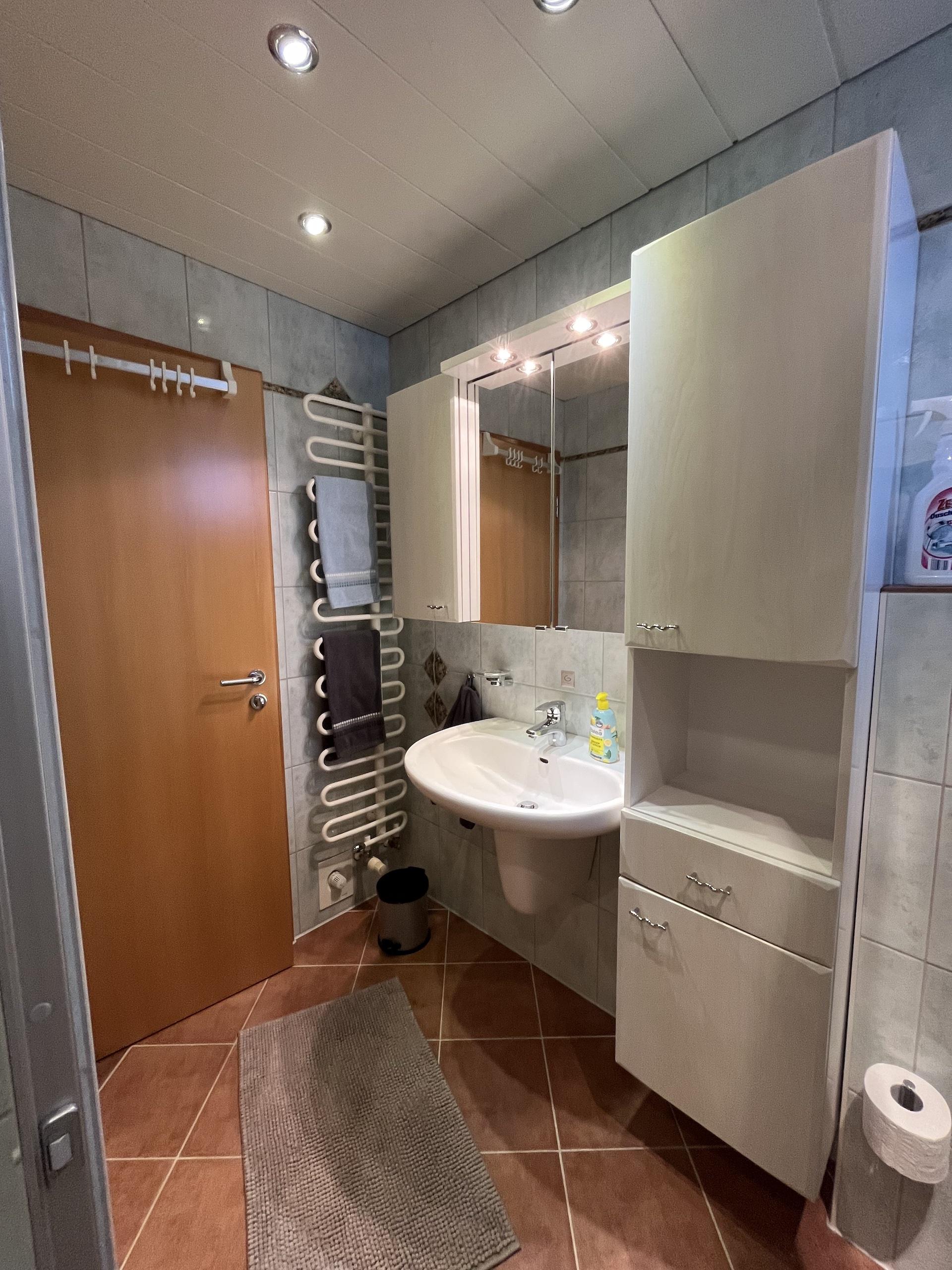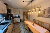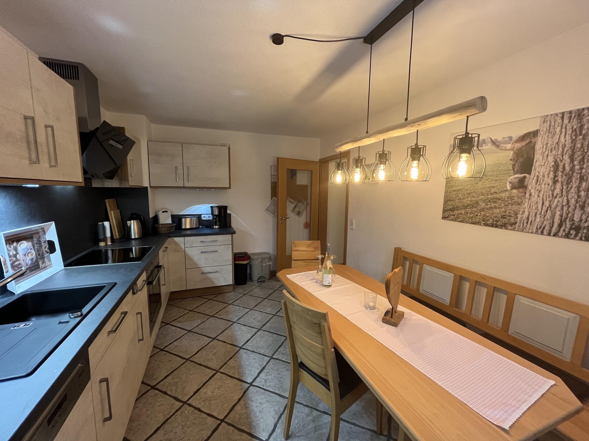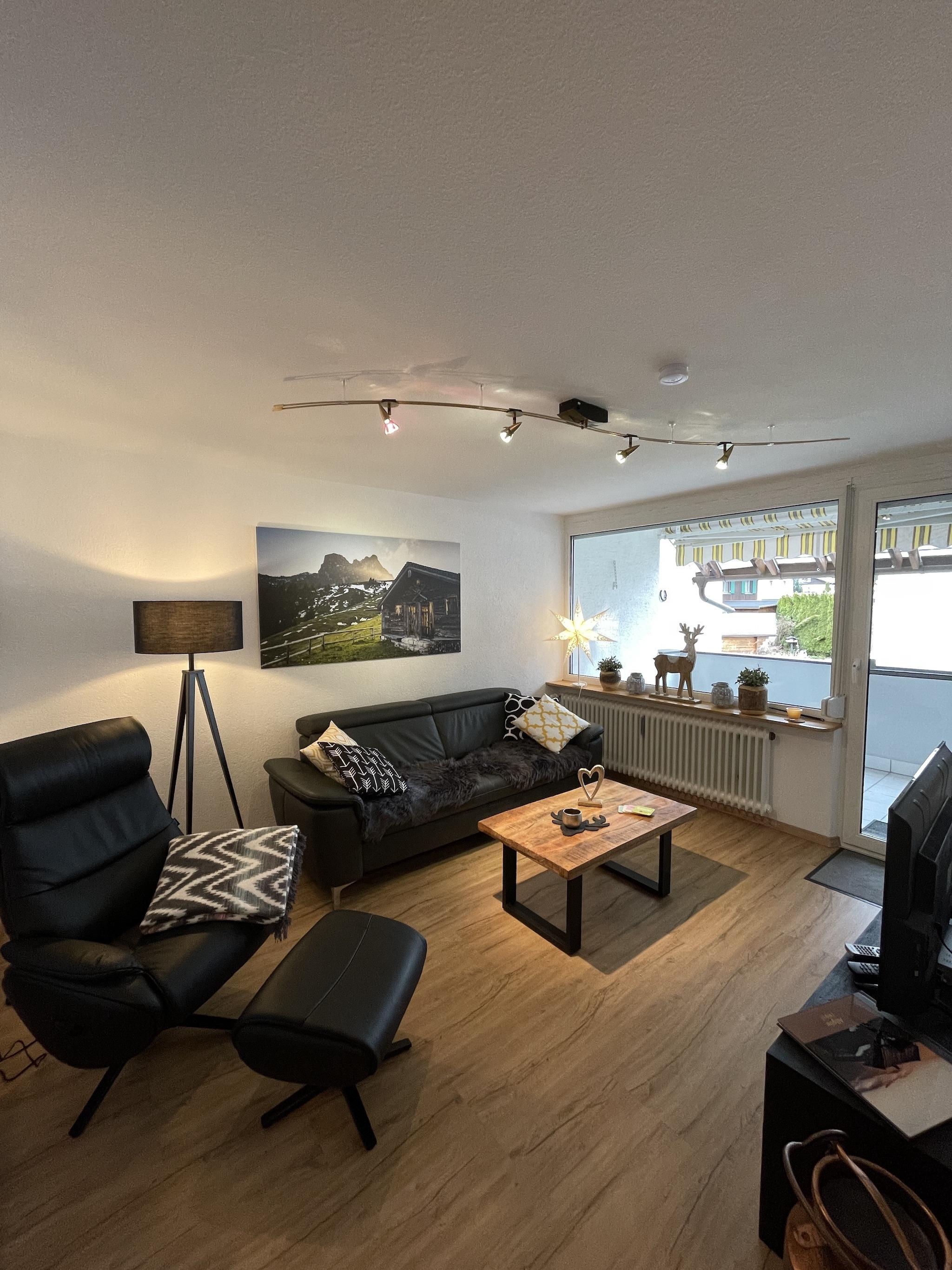 Sie besteht aus einem separaten Schlafzimmer, Wohnzimmer mit gemütlicher Leder Couch und einem Relaxsessel, einer Küche mit großem Tisch und Eckbank, einem Bad mit einer ebenerdigen geräumigen Dusche, WC, inkl. Fußbodenheizung, sowie einem wettergeschütztem Balkon (Loggia) mit Sonnenmarkise und mit Bergblick für gemütliche Stunden auch noch am Abend.