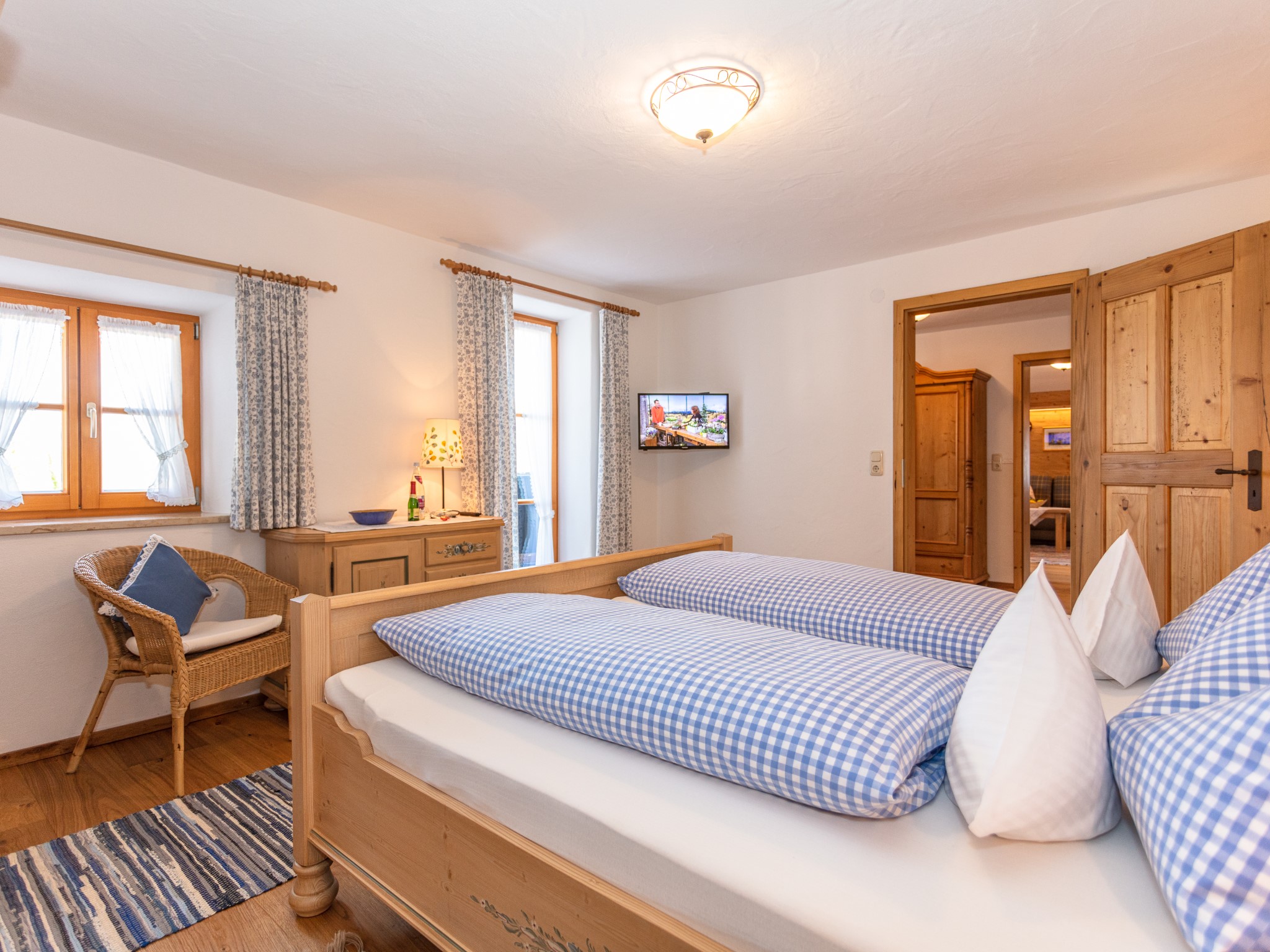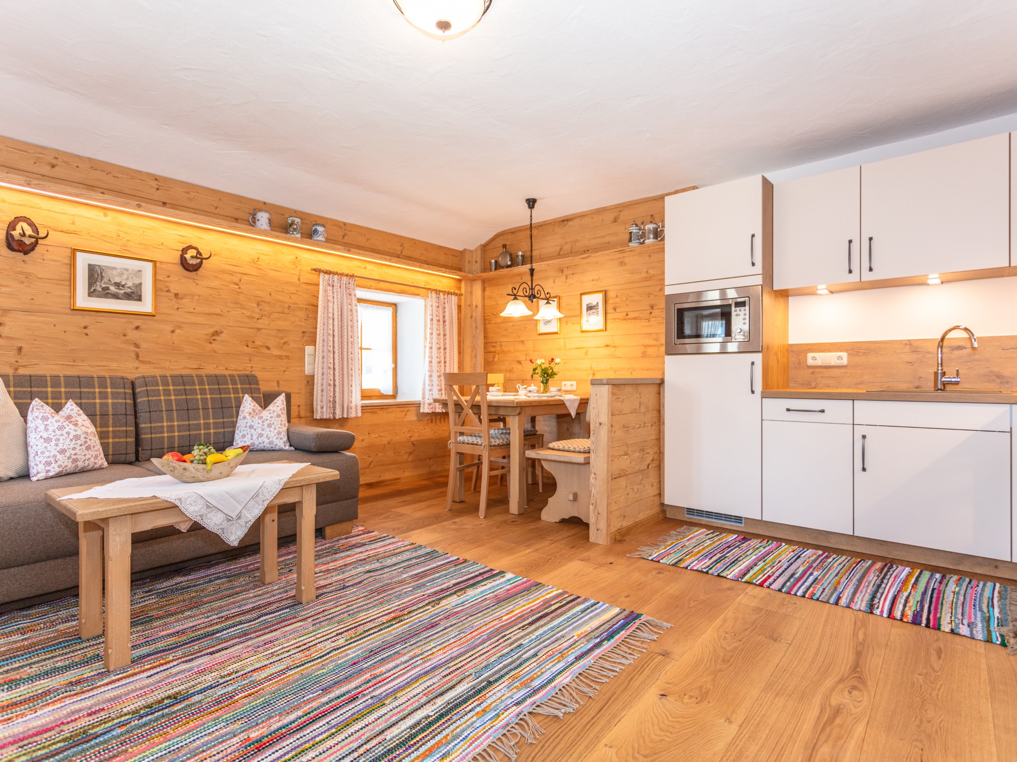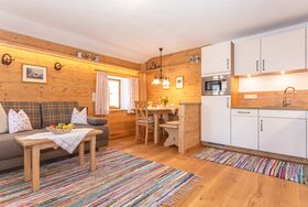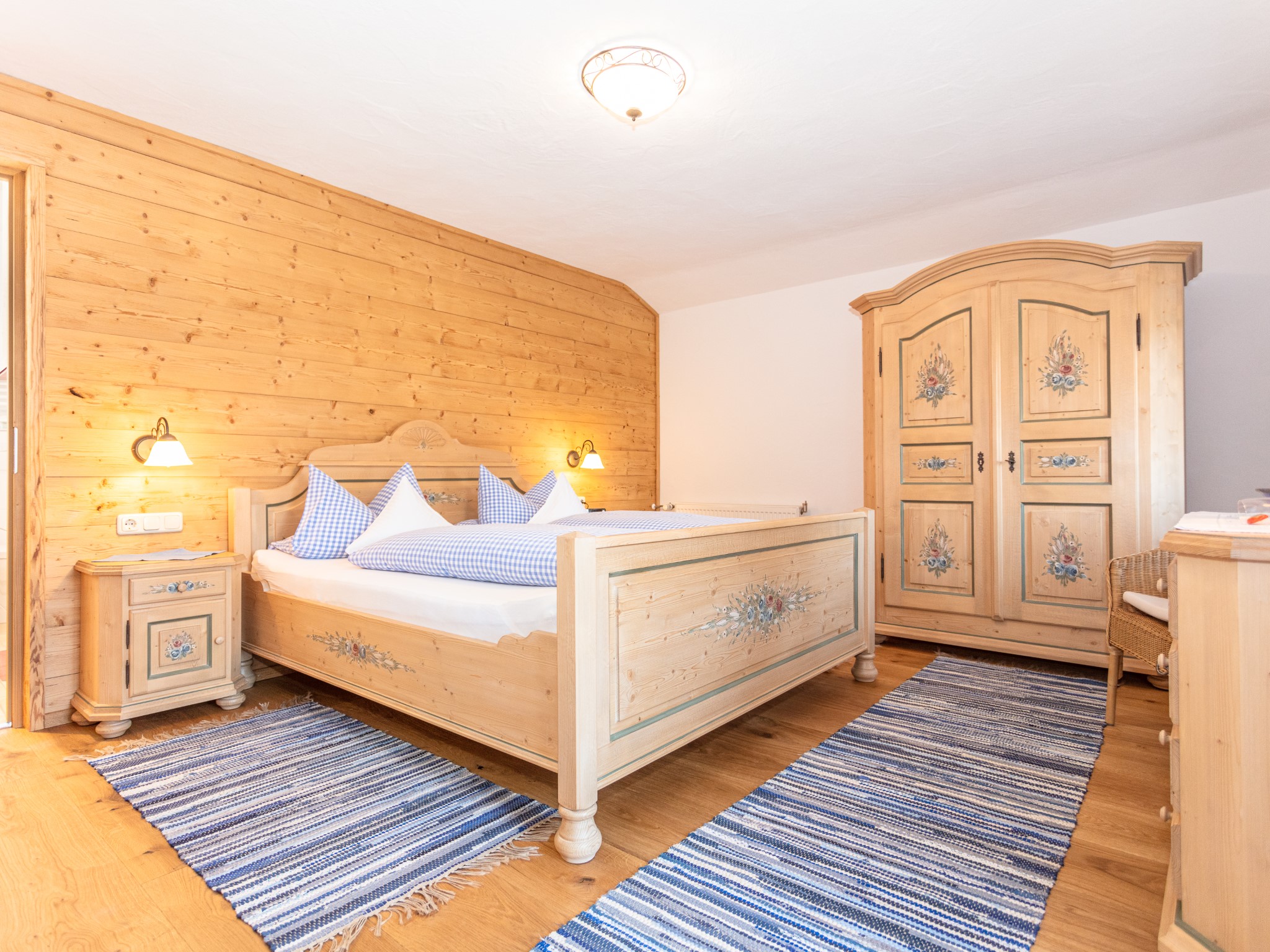 Diese Wohnung wurde komplett neu erstellt und ist sehr exklusiv ausgestattet. Die Ferienwohnung Hochthron befindet sich im 2. Stock (ohne Aufzug) des Haupthauses und verfügt über einen eigenen großen Balkon mit Sitzmöbeln und einen Tisch. Die Wohnung ist sehr ruhig, da sie in der obersten Etage liegt und sich dort keine weiteren Gäste befinden. Die Ferienunterkunft, mit einer Wohnfläche von 50 m², ist wie folgt aufgeteilt: Ein Schlafzimmer, ein Badezimmer, Wohn-Esszimmer mit Küche und Essecke, einen Eingangsbereich mit Garderobe. Hochwertigste Ausstattung: Vom Schreiner aus der Umgebung gefertigte massive Altholztüren und massive handbemalte Schlafzimmermöbel. Echtholzboden aus Eichendielen. Teilweise Wandvertäfelung aus Altholz. Komplett neues Badezimmer mit Regenschauerdusche. Komplett eingerichtete Küchenzeile mit Kühlschrank inklusive Gefrierfach, Geschirrspüler, Backofen, Ceranfeld, Mikrowelle, Kaffeemaschine, Wasserkocher, Toaster, Geschirr in ansprechenden Design, Töpfe, Pfannen und Kleinutensilien, Essecke, ausziehbares Ecksofa, Fernseher im Wohnbereich ( 50 Zoll) und im Schlafzimmer, Kostenloses W-LAN.