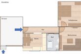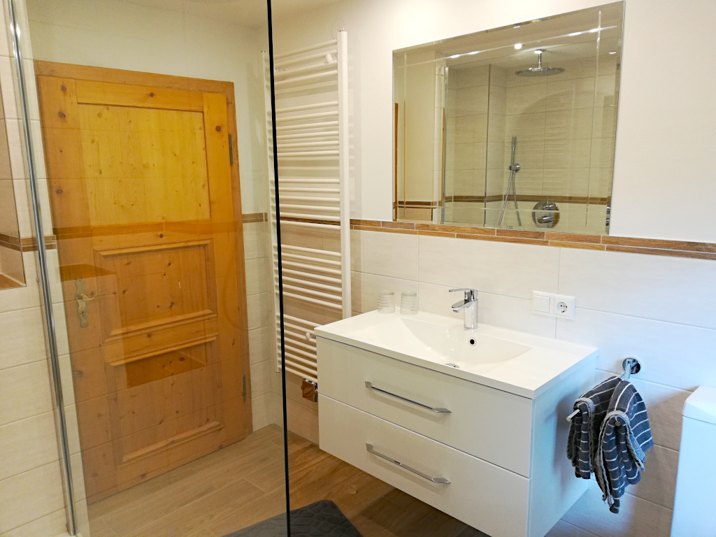 Schöne, ruhige und geräumige Ferienwohnung mit separatem Zugang und großzügiger Terrasse Richtung Osten.1 Küche mit Spülmaschine, Elektroherd und -ofen, Kühlschrank, Mikrowelle, Toaster, Kaffeemaschine, Eierkocher, Wasserkocher, Kochutensilien. 1 Wohnzimmer mit Couch und Satelliten-TV. 1 Badezimmer mit Dusche, WC, Waschtisch und Fön. 1 Schlafzimmer mit Doppelbett, Kleiderschrank, Sitzgelegenheiten. 1 Terrasse inkl. Sitzgelegenheiten und herrlicher Aussicht. Kostenloses WLAN, PKW-Stellplatz, Möglichkeit zum Unterstellen von Fahrrädern.