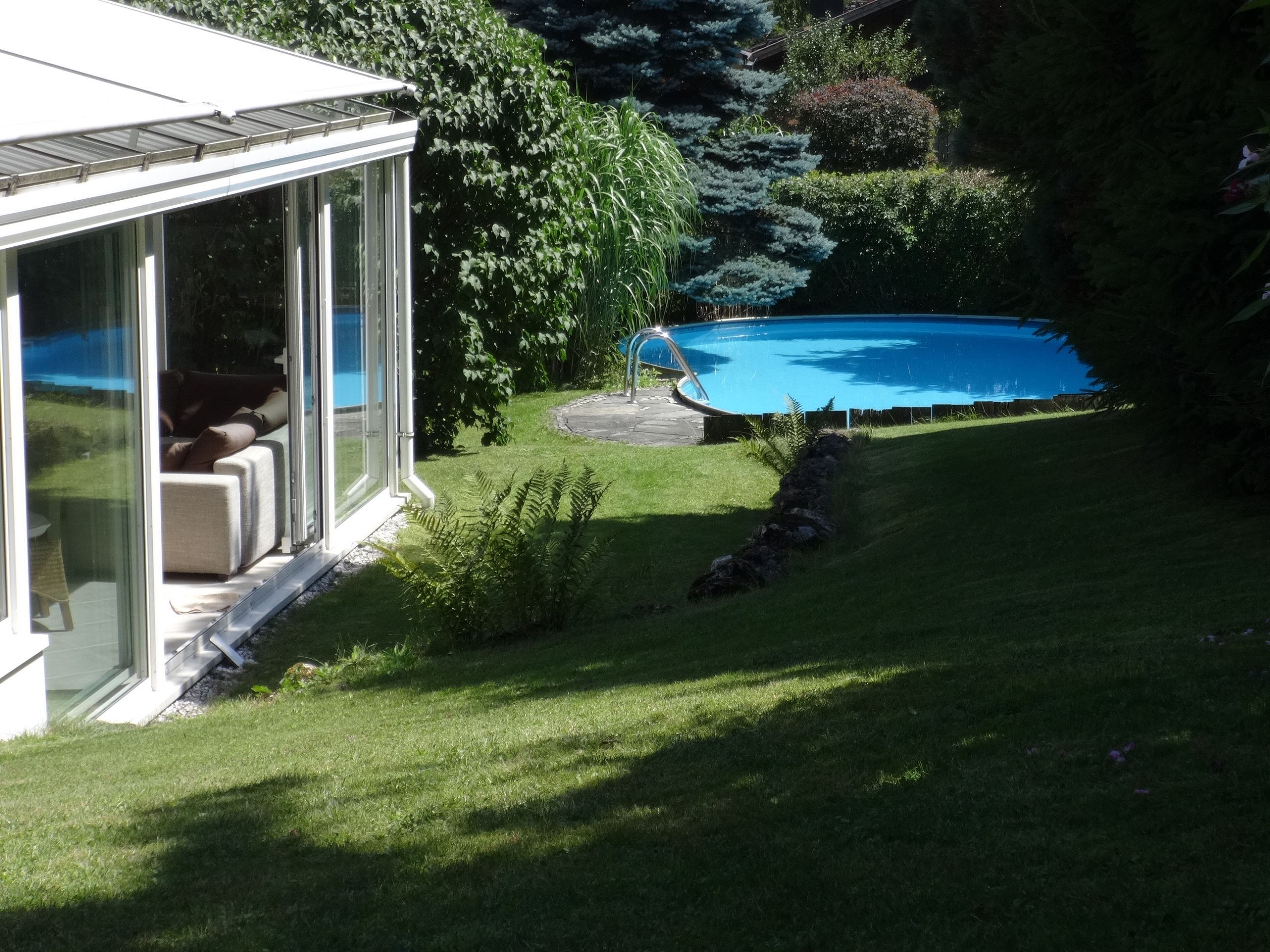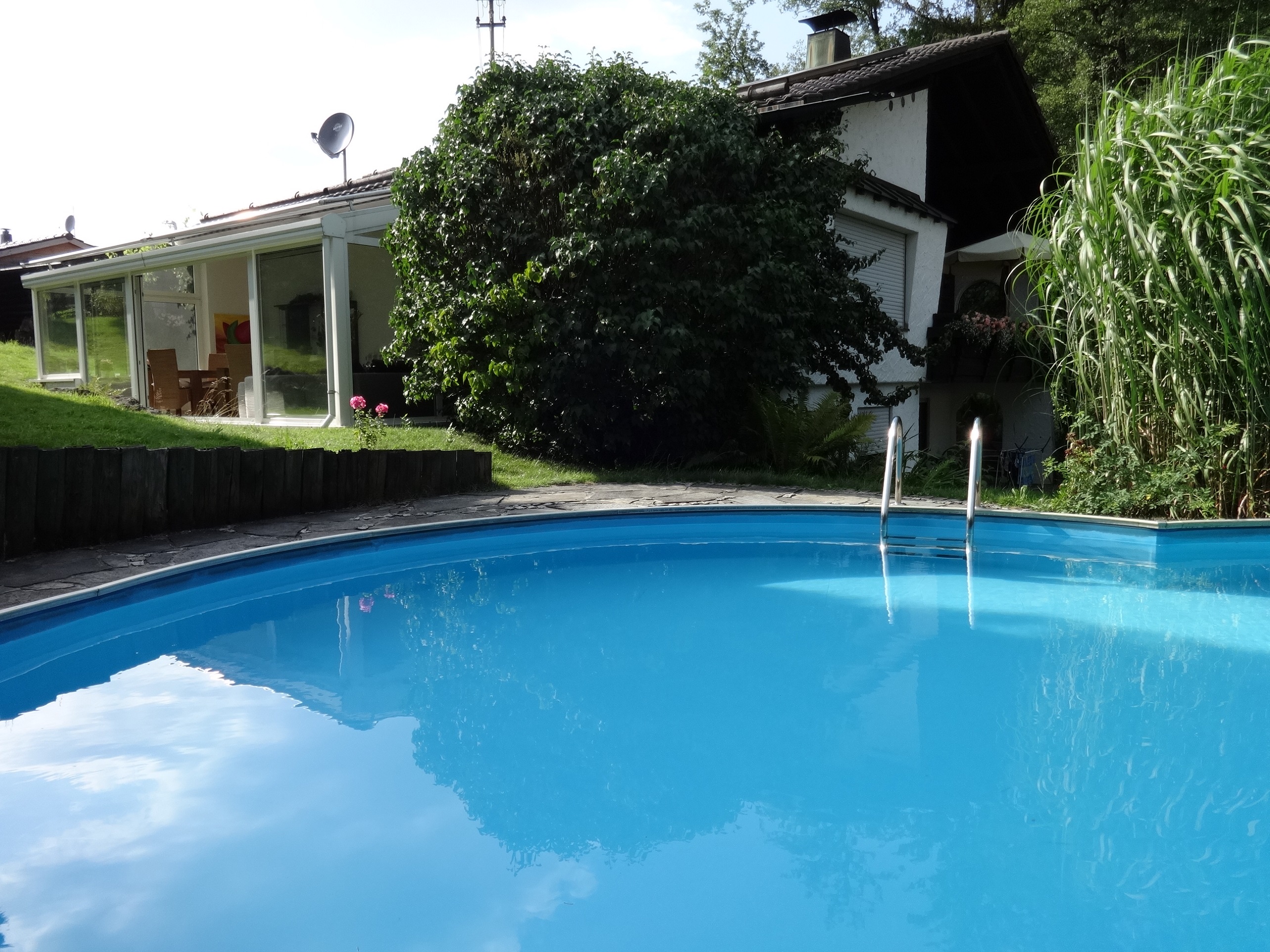 Ein herzliches Willkommen in unserem Gästehaus. Wir möchten Ihnen für die Zeit, welche Sie an unserem schönen Chiemsee verbringen, eine angenehme Unterkunft in einem behaglichen Ambiente bieten. Nur 10 Fahrminuten vom Seeufer entfernt, finden Sie bei uns die Ruhe, die Sie zur Erholung in Ihrem Urlaub brauchen. Unsere Zimmer sind liebevoll im Landhausstil eingerichtet und unsere Bäder sind top-modern bis luxuriös. Es soll Ihnen an nichts fehlen. Bitte beachten Sie, bei den Zimmern 1 und 2 sind die jeweiligen Bäder mit 2 Schritten gegenüber. Ihr Frühstück servieren wir Ihnen in unserm schönen großen Wintergarten. Der perfekte Start in den Tag. Wenn Sie mal nur relaxen wollen, dann suchen Sie sich gerne im Garten ein lauschiges Plätzchen. Vielleicht im Schatten unter einem Apfelbaum oder an unserem 50m² großen Pool. Schnelles Internet steht Ihnen genauso zur Verfügung wie ein Parkplatz für Auto und Radl. Wenn Sie einmal etwas besonderes erleben wollen, dann gönnen Sie sich eine geführte Tour mit unseren Segway´s. So oder so, Sie sollen sich in jedem Fall rundherum so richtig wohl fühlen. Kinder ab einem Alter von 14 Jahren sind bei uns herzlich willkommen. Aus Rücksichtnahme auf die Gesamtheit unserer Gäste, sind Haustiere leider nicht erlaubt.
