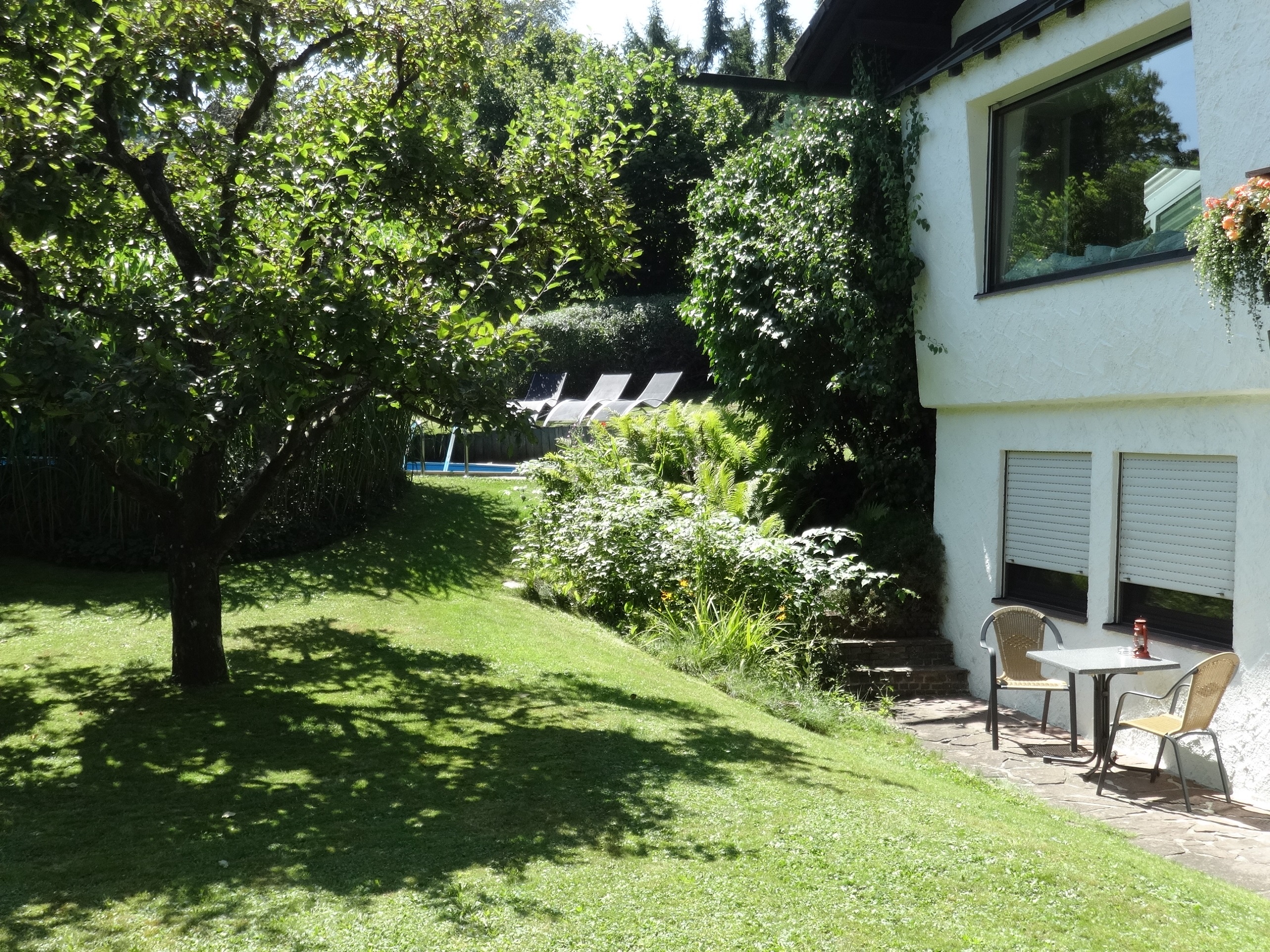 Ein herzliches Willkommen in unserem Gästehaus. Wir möchten Ihnen für die Zeit, welche Sie an unserem schönen Chiemsee verbringen, eine angenehme Unterkunft in einem behaglichen Ambiente bieten. Nur 10 Fahrminuten vom Seeufer entfernt, finden Sie bei uns die Ruhe, die Sie zur Erholung in Ihrem Urlaub brauchen. Unsere Zimmer sind liebevoll im Landhausstil eingerichtet und unsere Bäder sind top-modern bis luxuriös. Es soll Ihnen an nichts fehlen. Bitte beachten Sie, bei den Zimmern 1 und 2 sind die jeweiligen Bäder mit 2 Schritten gegenüber. Ihr Frühstück servieren wir Ihnen in unserm schönen großen Wintergarten. Der perfekte Start in den Tag. Wenn Sie mal nur relaxen wollen, dann suchen Sie sich gerne im Garten ein lauschiges Plätzchen. Vielleicht im Schatten unter einem Apfelbaum oder an unserem 50m² großen Pool. Schnelles Internet steht Ihnen genauso zur Verfügung wie ein Parkplatz für Auto und Radl. Wenn Sie einmal etwas besonderes erleben wollen, dann gönnen Sie sich eine geführte Tour mit unseren Segway´s. So oder so, Sie sollen sich in jedem Fall rundherum so richtig wohl fühlen. Kinder ab einem Alter von 14 Jahren sind bei uns herzlich willkommen. Aus Rücksichtnahme auf die Gesamtheit unserer Gäste, sind Haustiere leider nicht erlaubt.