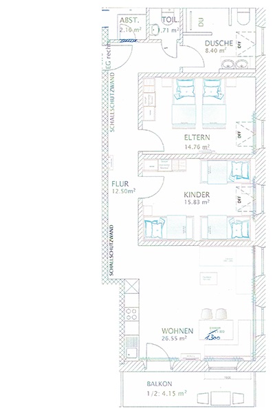 • ein Schlafzimmer mit 3 Einzelbetten