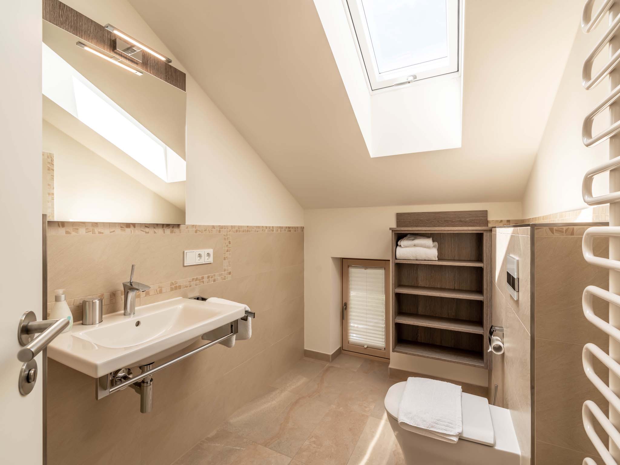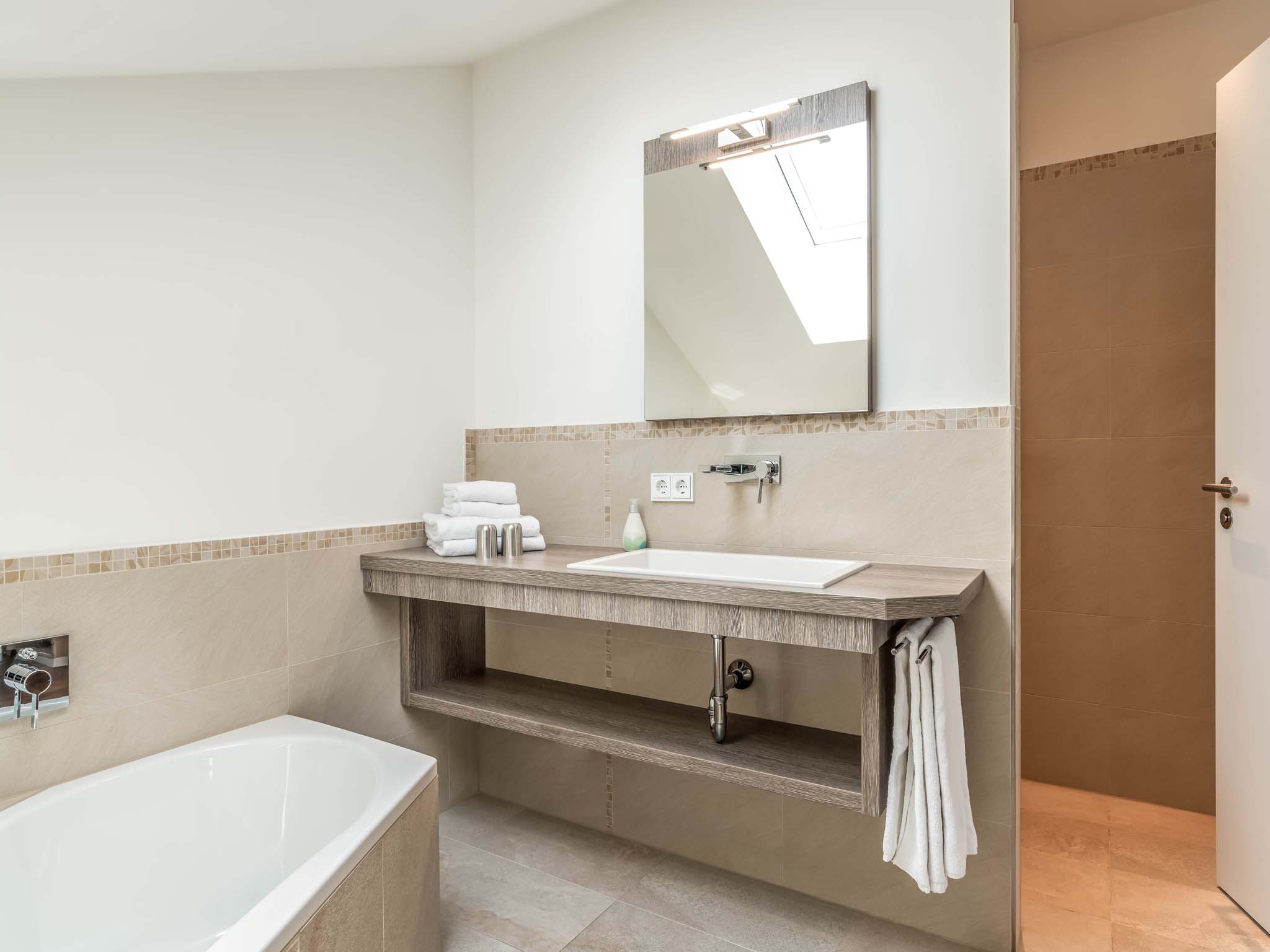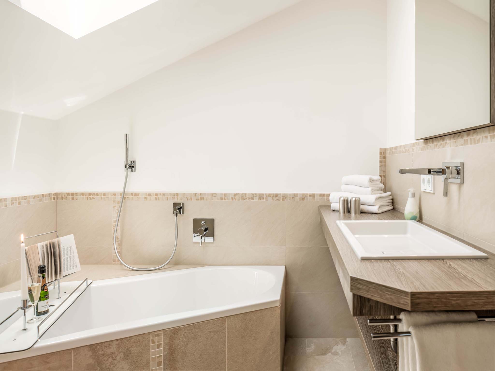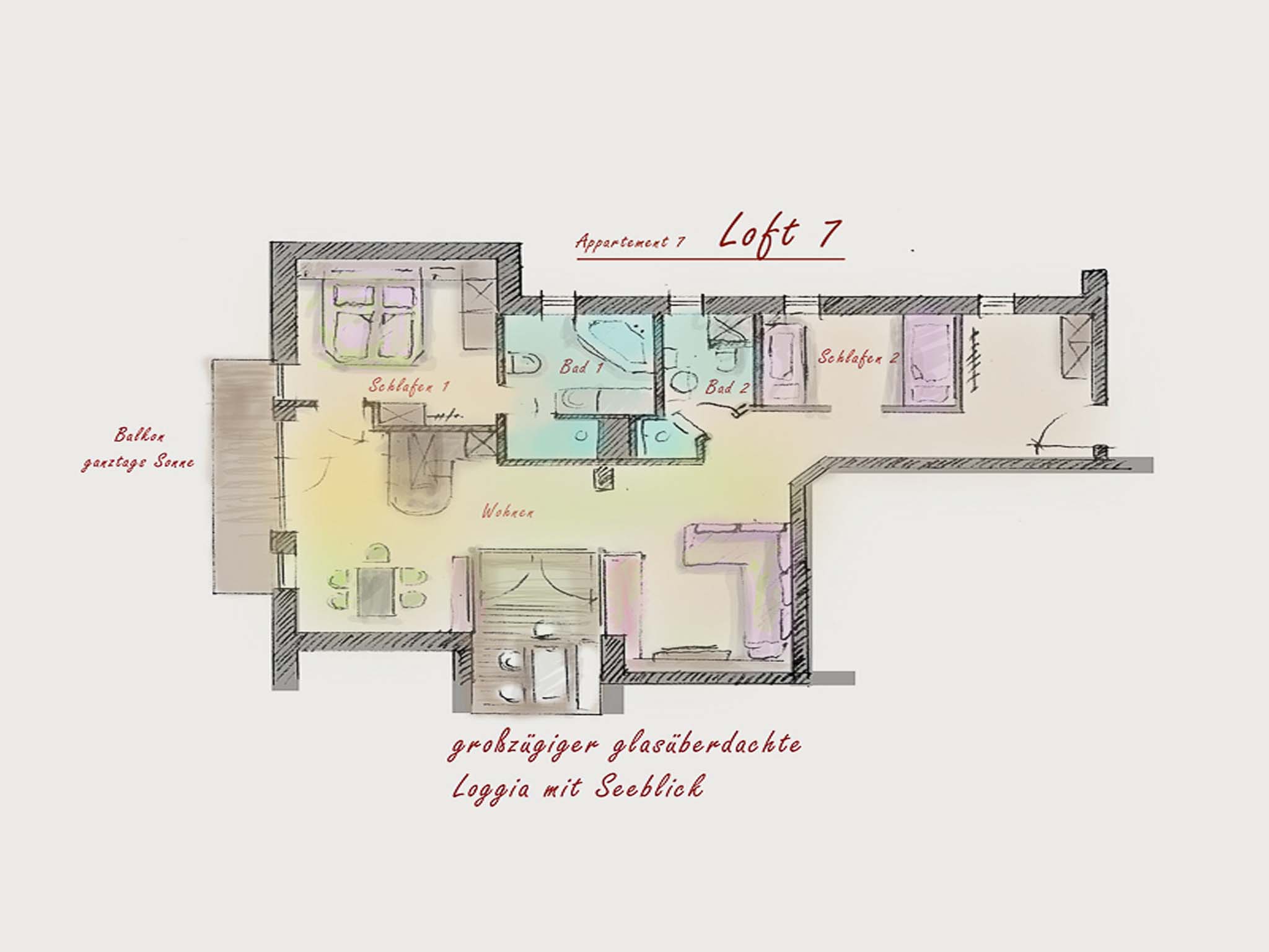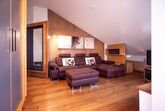 In dieser hellen, sehr modern gestalteten Ferienwohnung haben Sie einen Ausblick von oben über den Pelhamer-See in die Chiemgauer Alpenkette. Die sehr großzügige Wohnung verfügt über einen offenen Wohnraum, zwei getrennte Schlafzimmer sowie zwei Bäder und zwei Balkone. Ruhige, klare Formen bestimmen die Räumlichkeiten dieser Wohnung.