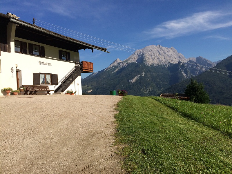 Unser Pfaffenlehen mit der großen Ferienwohnung befindet sich in schöner und ruhiger Lage auf dem Hochschwarzeck, ohne Durchgangsverkehr. Rund ums Haus gibt es Wiesenflächen mit einem Traumblick auf das gesamte Bergpanorama, besonders auf den Watzmann. Ihre Wandertouren können Sie direkt von der Haustüre aus starten, wie zum Beispiel zum Toten Mann, Soleleitungsweg, Schmuckenstein, Mordaualm, usw. Im Winter haben Sie die Langlaufloipe direkt vor der Haustür, zum nächsten Skilift sind es ca. 5 Minuten, ebenso zur Hirschecksesselbahn. Für Ihr leibliches Wohl ist auch gesorgt, in ca. 5 Gehminuten befindet sich ein Gasthaus.