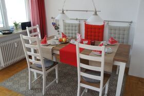 Unsere gemütliche Stadtwohnung mit eigenem Carport bietet auf einer Fläche von 65m² mit 2 Schlafzimmern, einem Wohnzimmer, einem Essplatz, einer Küche und einem Badezimmer ausreichend Platz für 1-4 Personen. Vom sonnigen Balkon aus haben Sie einen herrlichen Blick auf den Predigtstuhl und die Reiter Alpe.