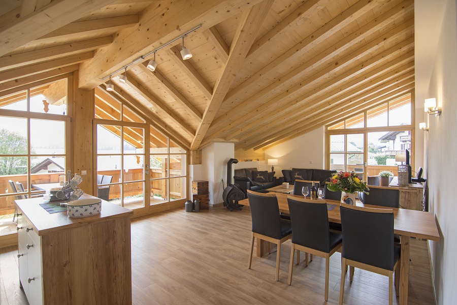 Die Ferienwohnung befindet sich im Dachgeschoss eines im August 2016 fertiggestellten hochwertig ausgestatteten Dreifamilienhauses in ruhiger Seitenstraße mit Süd-West Ausrichtung. Die Wohnung verfügt über zwei großzügige Balkone mit herrlichem Blick auf die Langlaufloipen, die Sprungschanzen, den Unterberg und das Kaisergebirge. Zur Wohnung gehört eine eigene Waschküche mit Waschmaschine und Trockner zur alleinigen Benutzung, Abstellmöglichkeiten für Fahrräder und Skier im verschlossenen Skiraum. Das Ortszentrum von Reit im Winkl sowie alle notwendigen Einkaufsmöglichkeiten sind innerhalb weniger Minuten fußläufig erreichbar. Der öffentliche Nahverkehr, insbesondere die Skibusse zum Skigebiet Winklmossalm/ Steinplatte sind in unmittelbarer Nähe. Das Haus wird mit Fußbodenheizung beheizt, zusätzlich verfügt die Wohnung über einen echten kanadischen Bullerjan, der für gemütliche Wärme an langen Winterabenden sorgt. 2 Stellplätze stehen auf dem Grundstück zur Verfügung. Alle Schlaf- und Wohnräume verfügen über kostenloses WLAN.