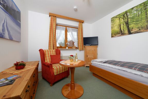 Genießen Sie bei uns den besten Komfort in unserem ca. 20m² großen Single-Apartement Alpenkammerl mit überdachtem Außen-Sitzplatz am Garten (Gartenblick). Die Wohnung eignet sich ideal für 1 Person (Alleinreisende oder Mitreisende). Sie enthält u.a. eine Küchenzeile und ein eigenes Bad mit Dusche. Ihr Apartment befindet sich im Obergeschoss unseres Privathauses. Der überdachte Außen-Sitzplatz lädt herrlich zum Entspannen ein oder Sie genießen einfach nur eine Tasse Kaffee/Tee oder das abendliche Weizenbier/Cocktail etc. Sonnenuntergang inbegriffen.