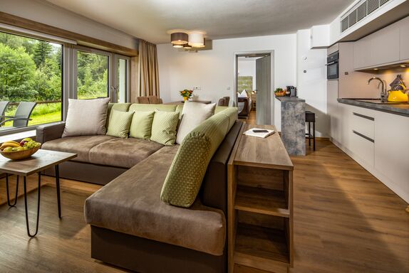 Großzügige, exklusive Wohnung mit 2 Schlafzimmern jeweils mit Du/WC, ideal für eine Familie oder Freunde bis zu 5 Personen. Der offene Wohnraum erweitert sich durch eine sonnige und überdachte Südterrasse, die mit Loungemöbeln wohnlich gestaltet ist. Genießen Sie einen traumhaften Blick auf den Gablerweiher und den Predigtstuhl.