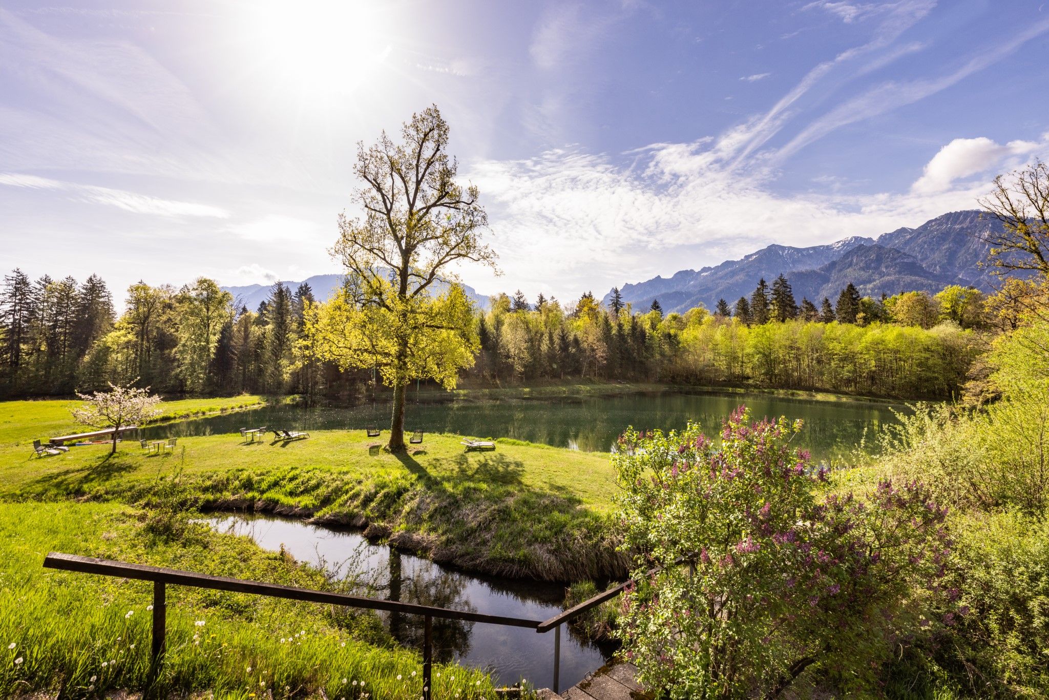 Der Gablerhof liegt außerhalb von Bad Reichenhall im sonnigen Ortsteil Nonn. Nah dran und doch ganz weit weg im Grünen mit eigenem Badesee. Unsere großzügigen, exklusiven Wohnungen mit lichtdurchflutetem, offenem Wohnraum und großen Panoramafenstern bieten einen unvergleichlichen Blick auf den Predigtstuhl. Das Thema Nachhaltigkeit, sowie generell das Thema Umwelt liegt uns sehr am Herzen. Eine große Photovoltaikanlage auf dem Dach liefert den Strom und unsere Hackschnitzelheizung aus dem eigenen Wald die Wärme. Mit unserer klimafreundlichen Grundwasserkühlung kann jedes Zimmer individuell gekühlt werden. Wir freuen uns, Sie im Gablerhof begrüßen zu dürfen!