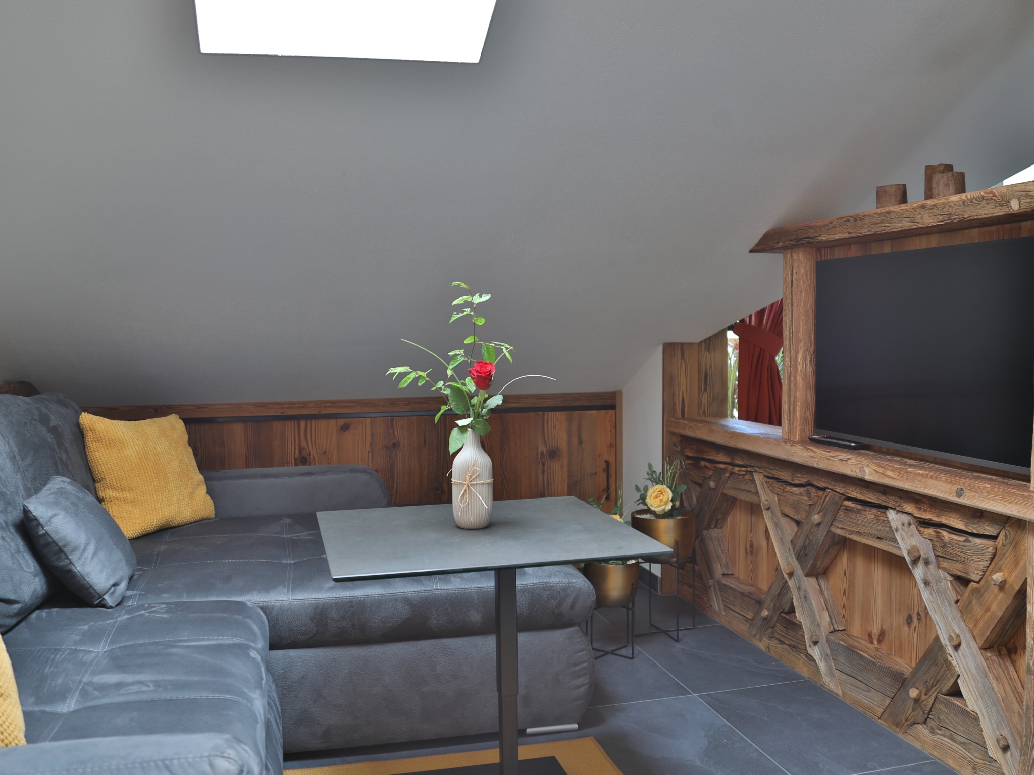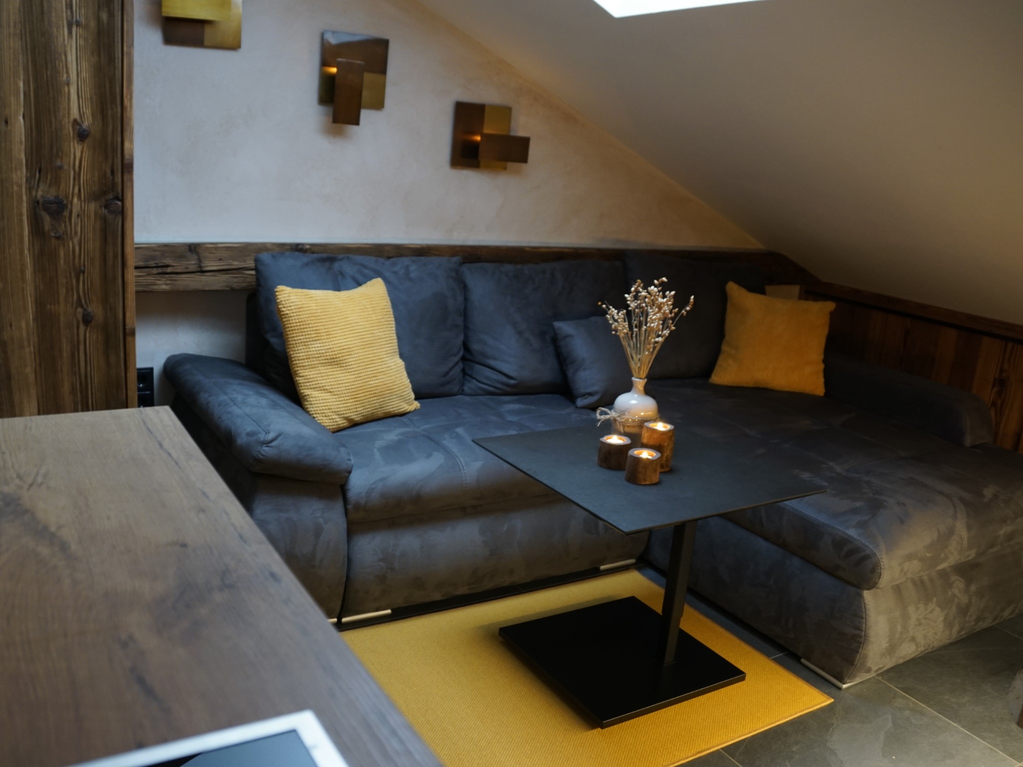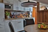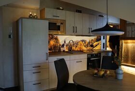 Die Ferienwohnung „ Gipfelsonne“ ist eine Dachgeschosswohnung mit großen Quergibel und befindet sich in der 2.Etage des Hauses mit einem herrlichen Blick zum Müllnerhorn, sowie Predigtstuhl und Hochstaufen, den sogenannten Hausbergen Bad Reichenhalls. In Ihrem vorrübergehenden Zuhause sollen Sie sich rundherum wohlfühlen. Daher haben wir Ihre Ferienwohnung mit vielen Annehmlichkeiten liebevoll ausgestattet. In der vollwertig eingerichteten Küche mit zentralem Esstisch und dem Ausblick auf die Berge, finden Sie alles, um Ihre Lieben kulinarisch zu verwöhnen. Die schöne integrierte Couchecke mit höhenverstellbaren Tisch und TV –Gerät sorgt für Entspannung und Gemütlichkeit. Auf dem sonnigen Balkon können Sie den Tag - als auch den Abend bei einem Glas Wein und den wunderschönen Blick auf das einmalige Bergpanorama genießen. So wird Ihnen Ihr Urlaub sicher in unvergesslicher Erinnerung bleiben. Schlafen wie ein König – das können Sie in zwei traumhaft eingerichteten separaten Schlafzimmern mit bequemen Doppelbetten. Für das Wohlfühl- Ambiente sorgen die hochwertige Bettwäsche, viele angenehme Lichteffekte, Klimaanlage und ein TV Gerät. Ein Kinderbettchen und auch ein Hochstuhl stehen für unsere kleinsten Urlaubsgäste zur Verfügung. Das Bad ist mit einem Doppelwaschbecken, einer großräumigen Dusche, WC sowie großzügigen Wandschränken ausgestattet. Ein Föhn, Kosmetikspiegel sowie Handtücher liegen selbstverständlich für Sie bereit. Wenn Sie mit mehreren Angehörigen, Freunden oder Bekannten Ihren Urlaub genießen möchten, haben Sie die Möglichkeit die Ferienwohnung „Gipfelsonne“ und „Bergsonne“ gemeinsam zu buchen. Beide Wohnungen bieten Platz für insgesamt 8 Personen.