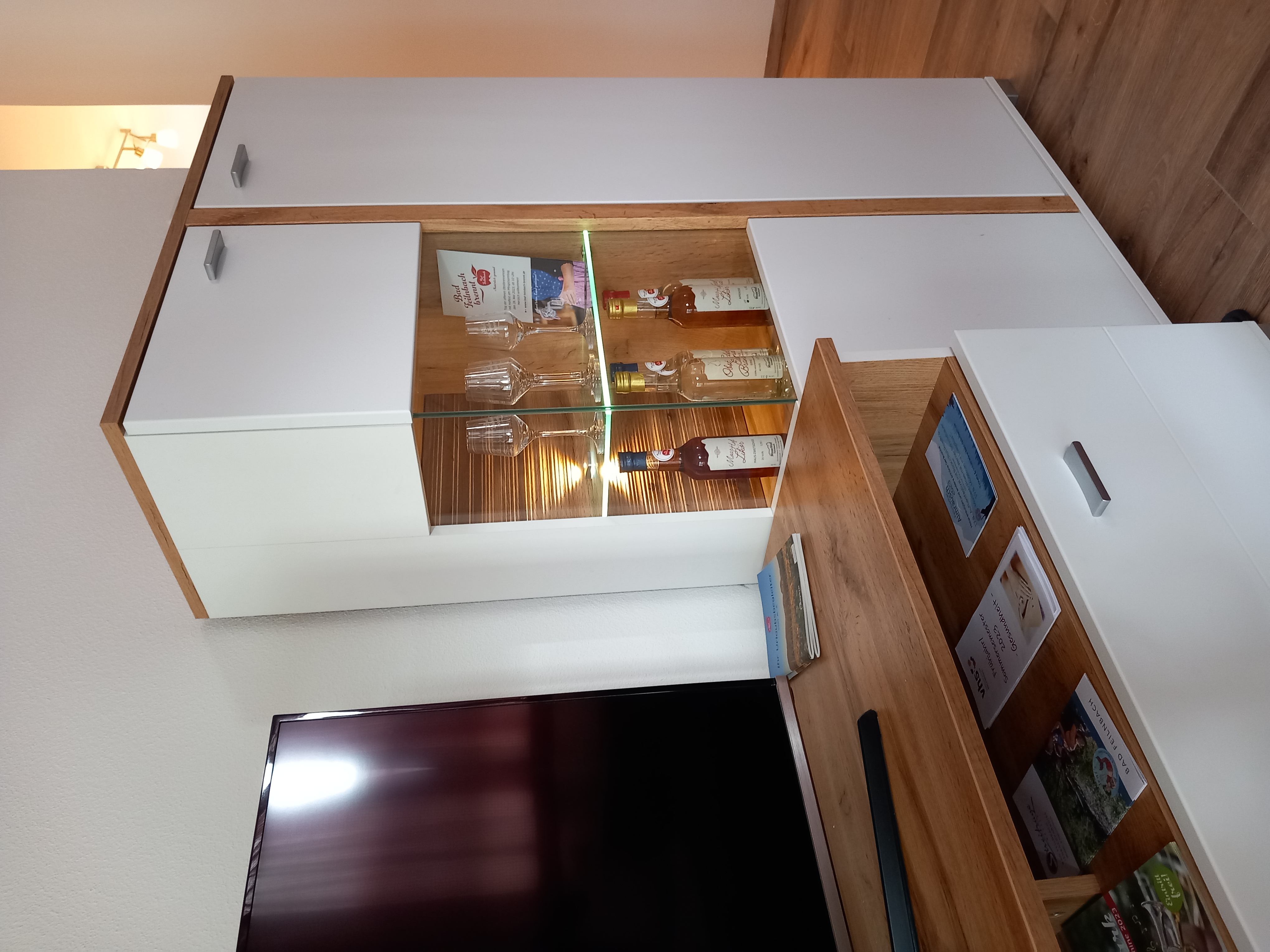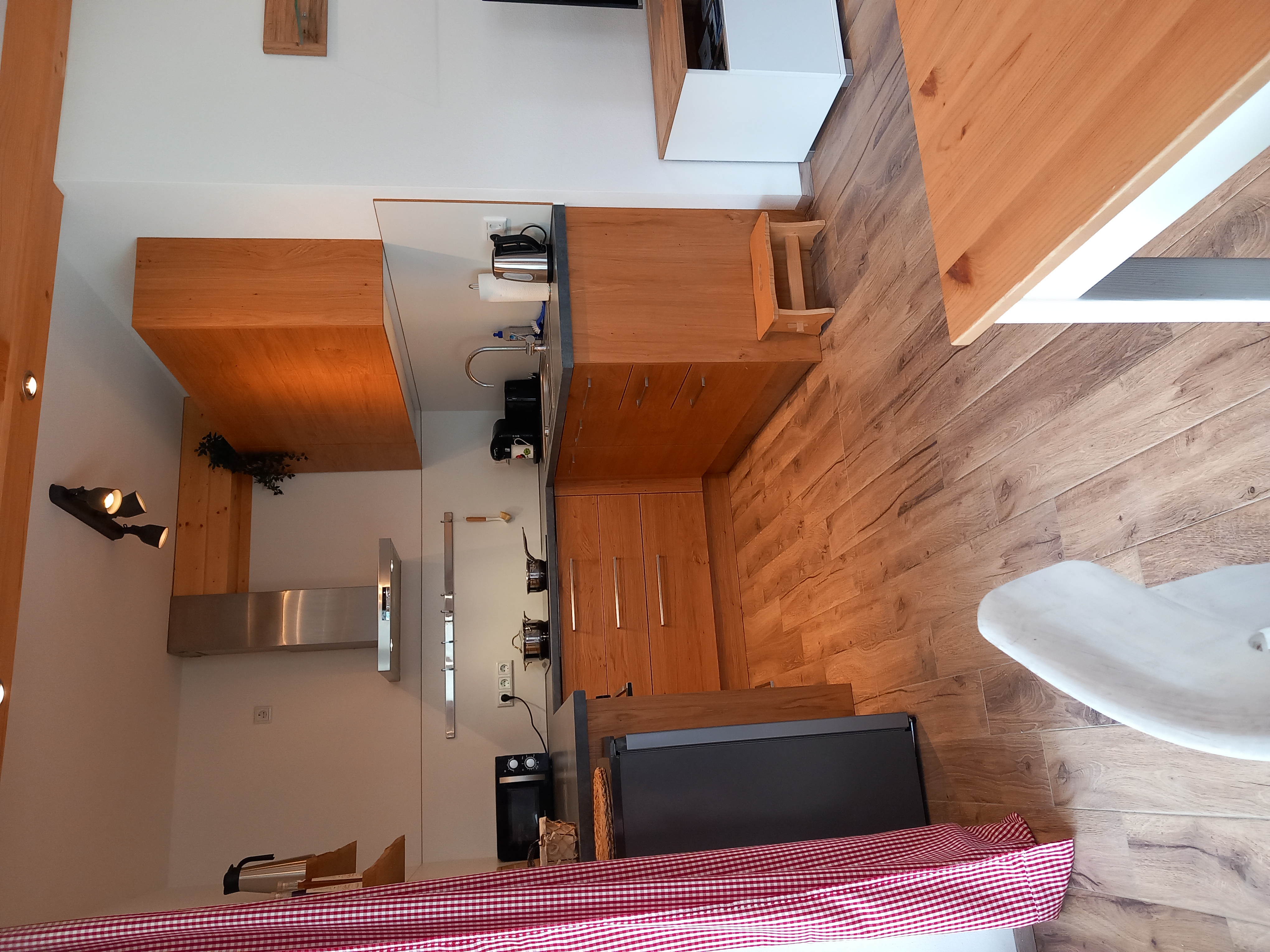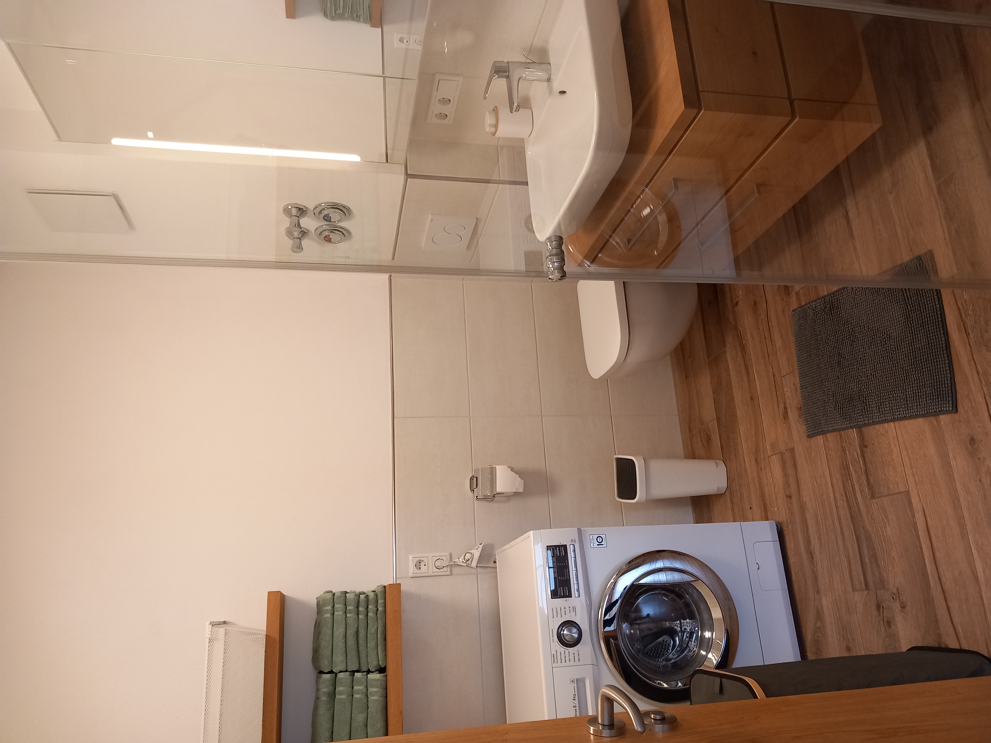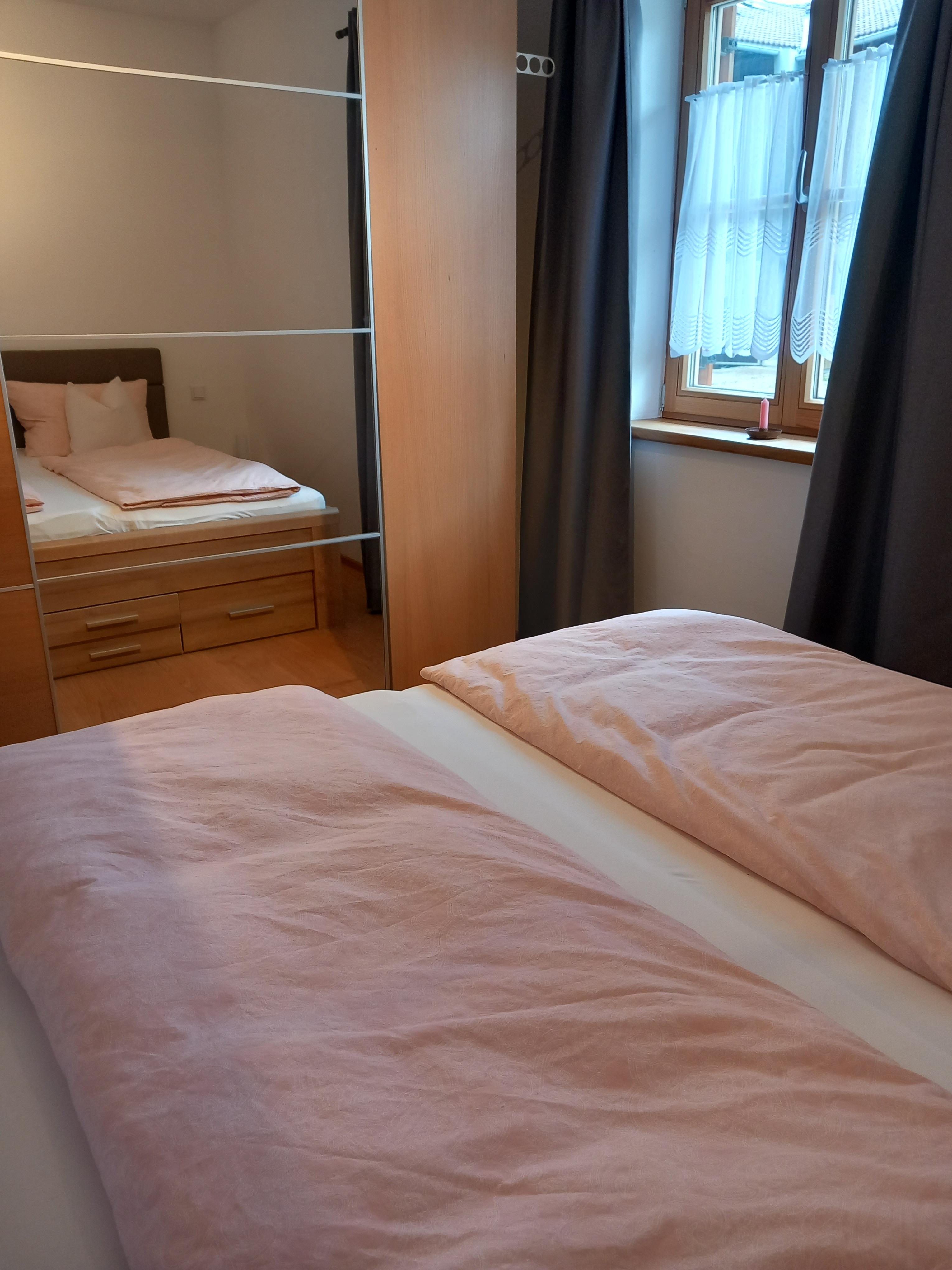Eigener Eingang, großer Wohnraum mit Essecke, bestens ausgestattete Küche, 1 Schlafzimmer, Badezimmer mit Dusche und WC, Waschmaschine mit Trocknerfunktion, freies WLAN