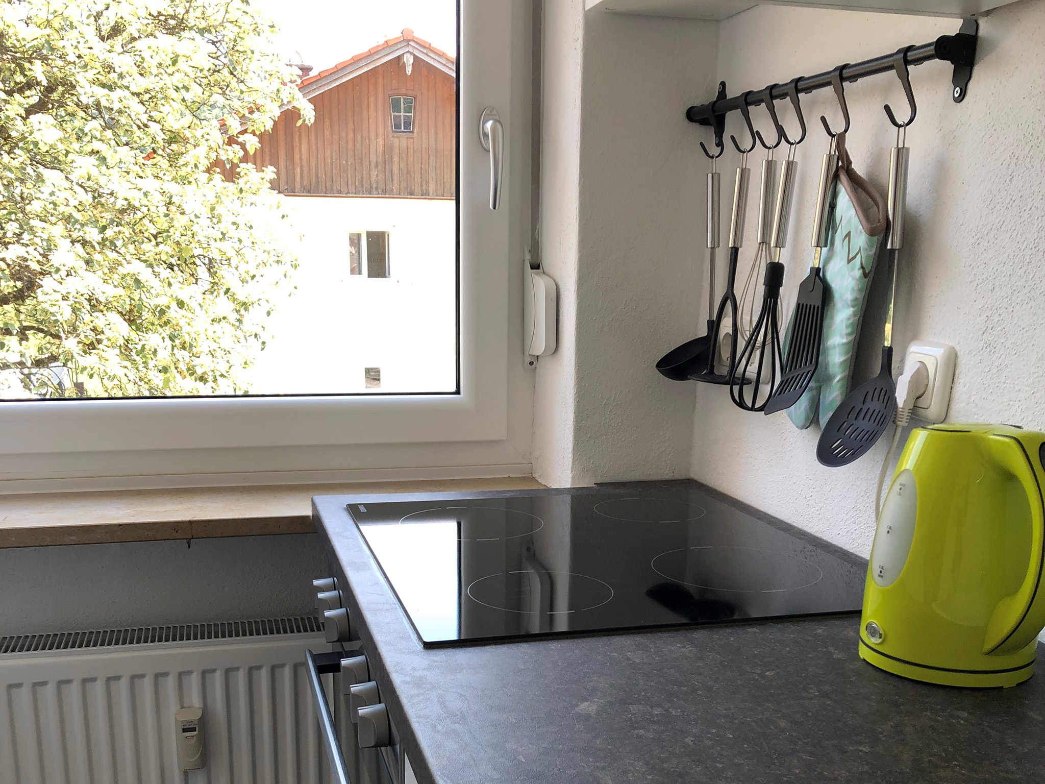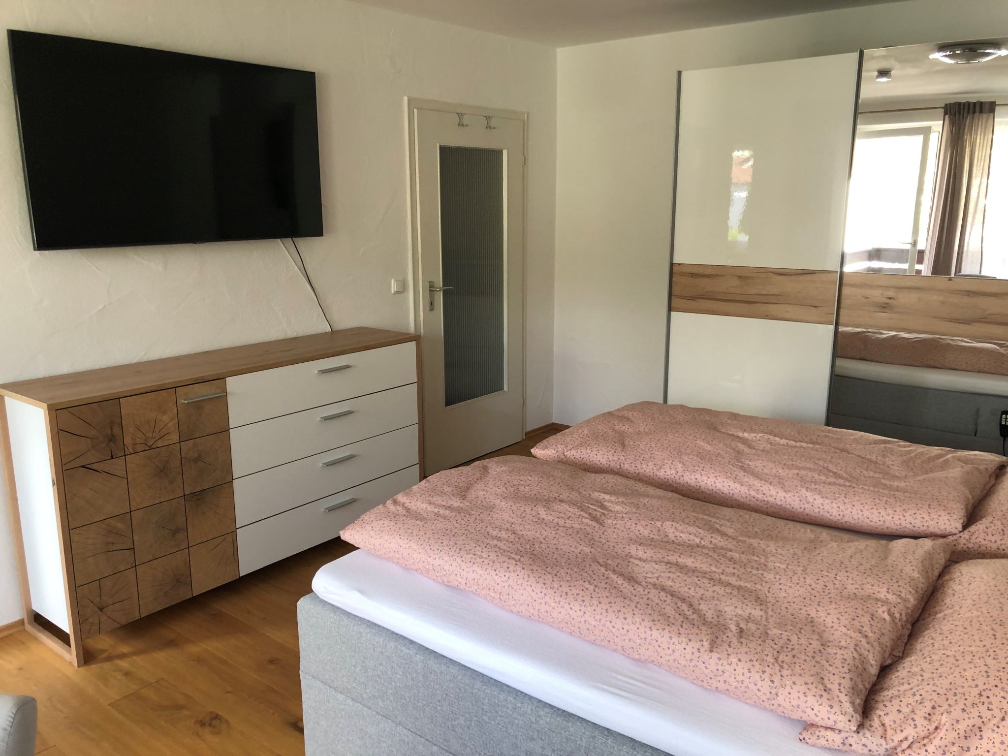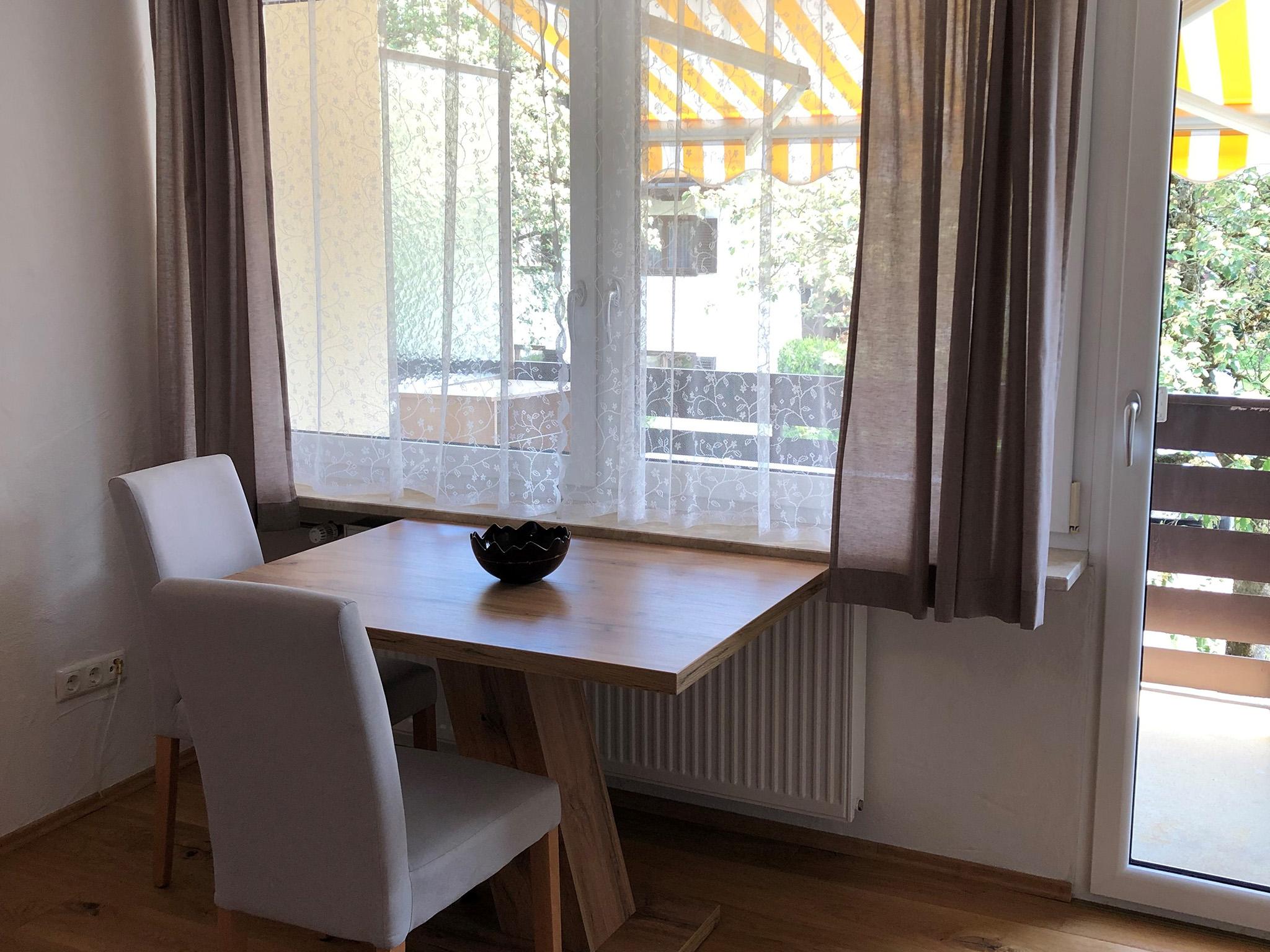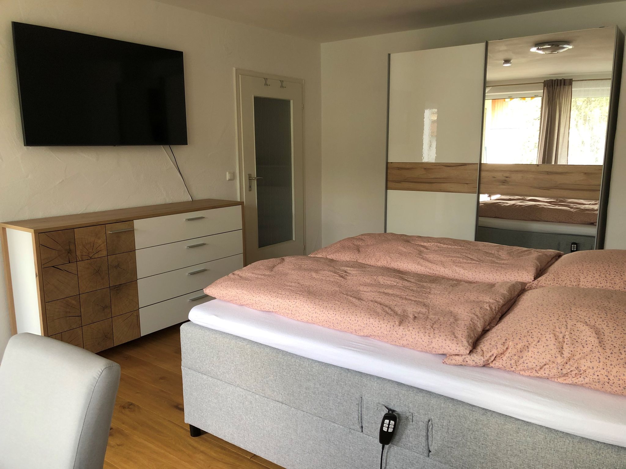 Unsere gemütliche Wohnung befindet sich im ersten Stock. Sie haben eine herrliche Aussicht von der gemütlichen Essecke in die Berge. Die Küche ist sehr gut ausgestattet mit einem Ceran Kochfeld, Backofen, Kühlschrank , Spüle und sämtlichen Küchenutensilien. Die Wohnung ist mit einem Naturholzboden aus Eiche ausgestattet. Im Wohnzimmer befindet sich ein 55 Zoll TV an der Wand. Am Boxspringbett ist Kopf- und Fußteil elektrisch höhenverstellbar. Im Badezimmer befindet sich Dusche und WC. Eine Münzwaschmaschine mit Trockner befindet sich im Haus. Ihre Fahrräder können Sie in einem abschließbaren Kellerabteil sicher unterstellen.