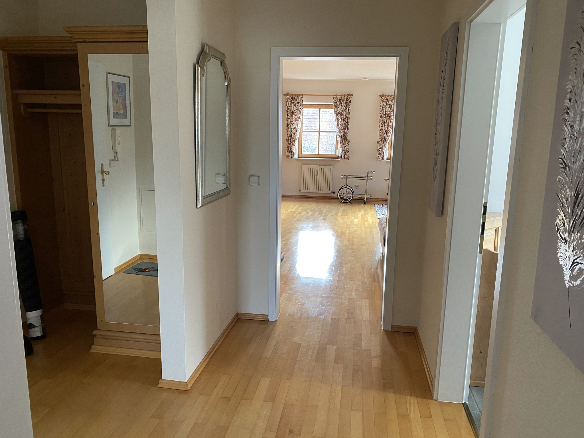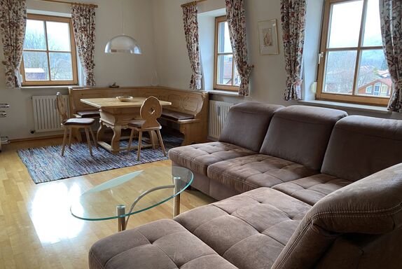 Die Ferienwohnung mit Balkon ist im Landhausstil mit biologisch naturbelassenem Mobiliar aus Fichte eingerichtet. Das Schlafzimmer ist mit einem Doppelbett von 2m x 2m ausgestattet. Das Badezimmer ist hell und mit einer Dusche ausgestattet. Die Wohnung liegt in einer sehr ruhigen Lage und bietet einen herrlichen Blick auf das Predigtstuhlmassiv, den Hochstaufen, den Zwiesel und die Reiteralpe. Das Rauchen ist nur auf dem Balkon erlaubt.