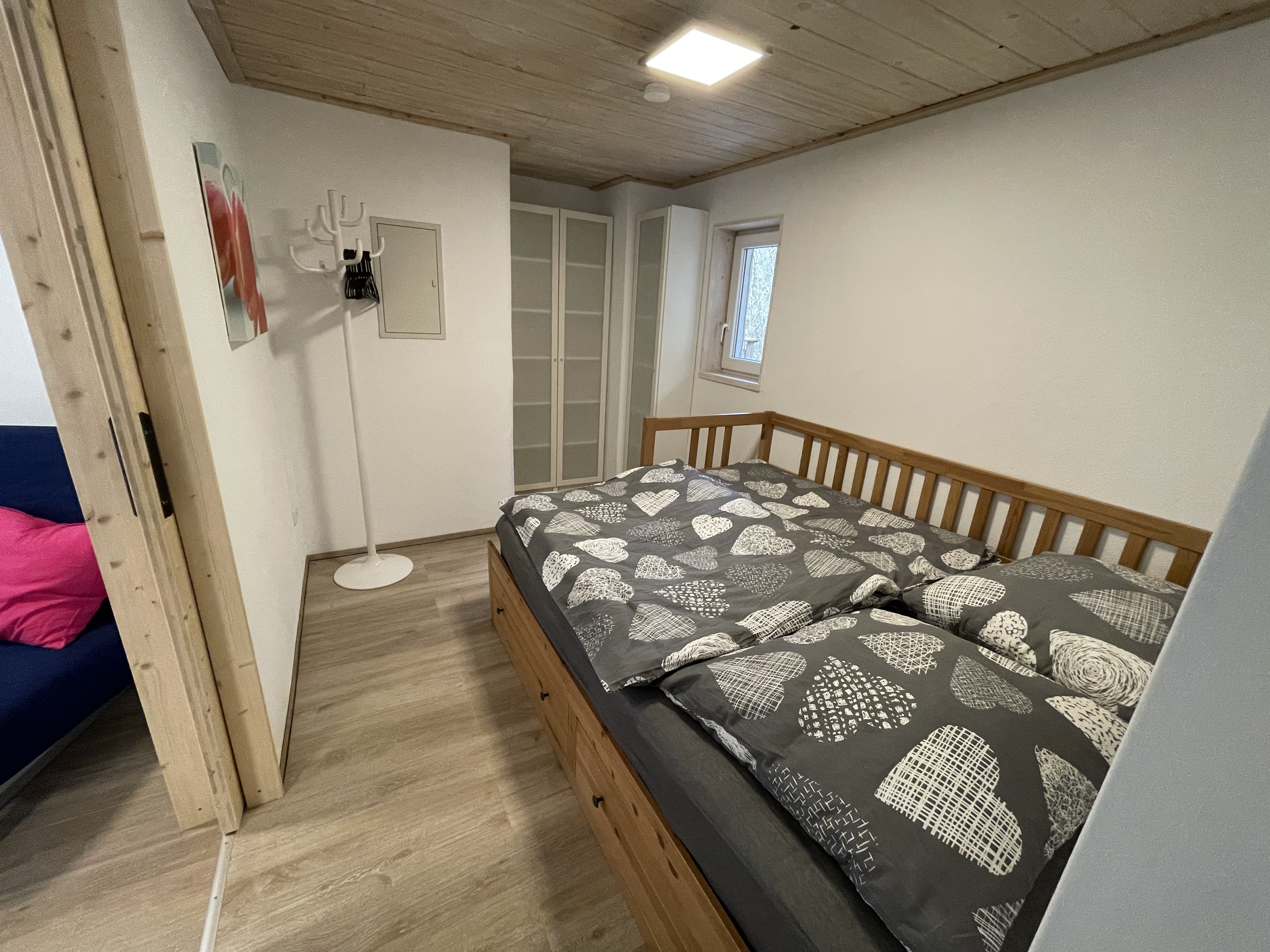 Unsere Ferienwohnung hat einen eigenen Eingangsbereich mit Garderobe. Die Wohnung verfügt über 2 Betten, die liegen im Schlafzimmer (160x200) und im Wohnbereich (140x200). Das Badezimmer ist ausgestattet mit einer Badewanne und einer integrierten Regendusche. Die Küche hat eine Grundausstattung mit Herd, Wasserkocher, Kaffeemaschine, Toaster, Mikrowelle mit Grillfunktion, großer Kühlschrank mit Gefrierfach und Spülmaschine. Im Wohnbereich finden Sie eine Schlafcouch und einen Flachbildfernseher. Die Ferienwohung verfügt über kostenloses WLAN.