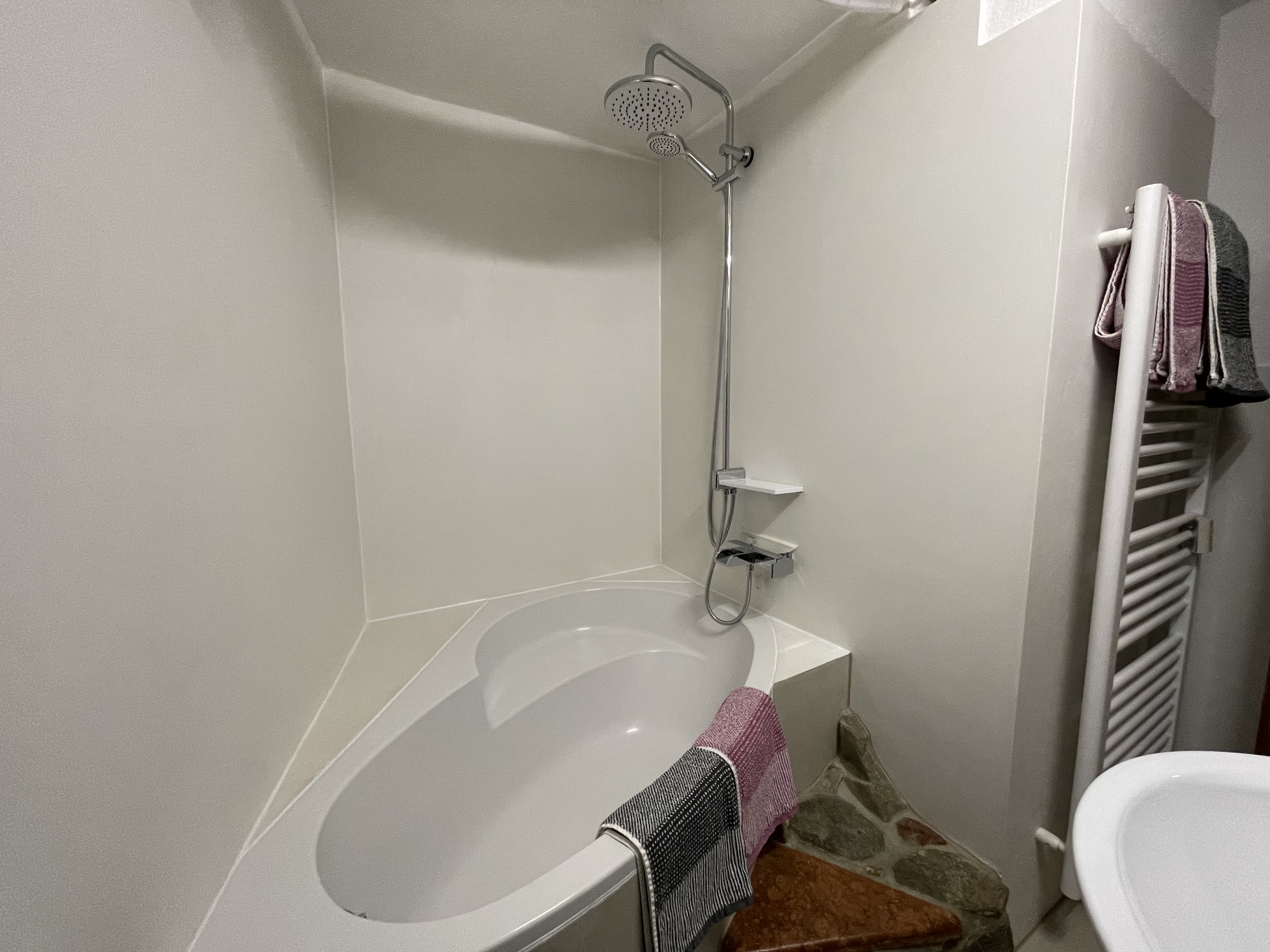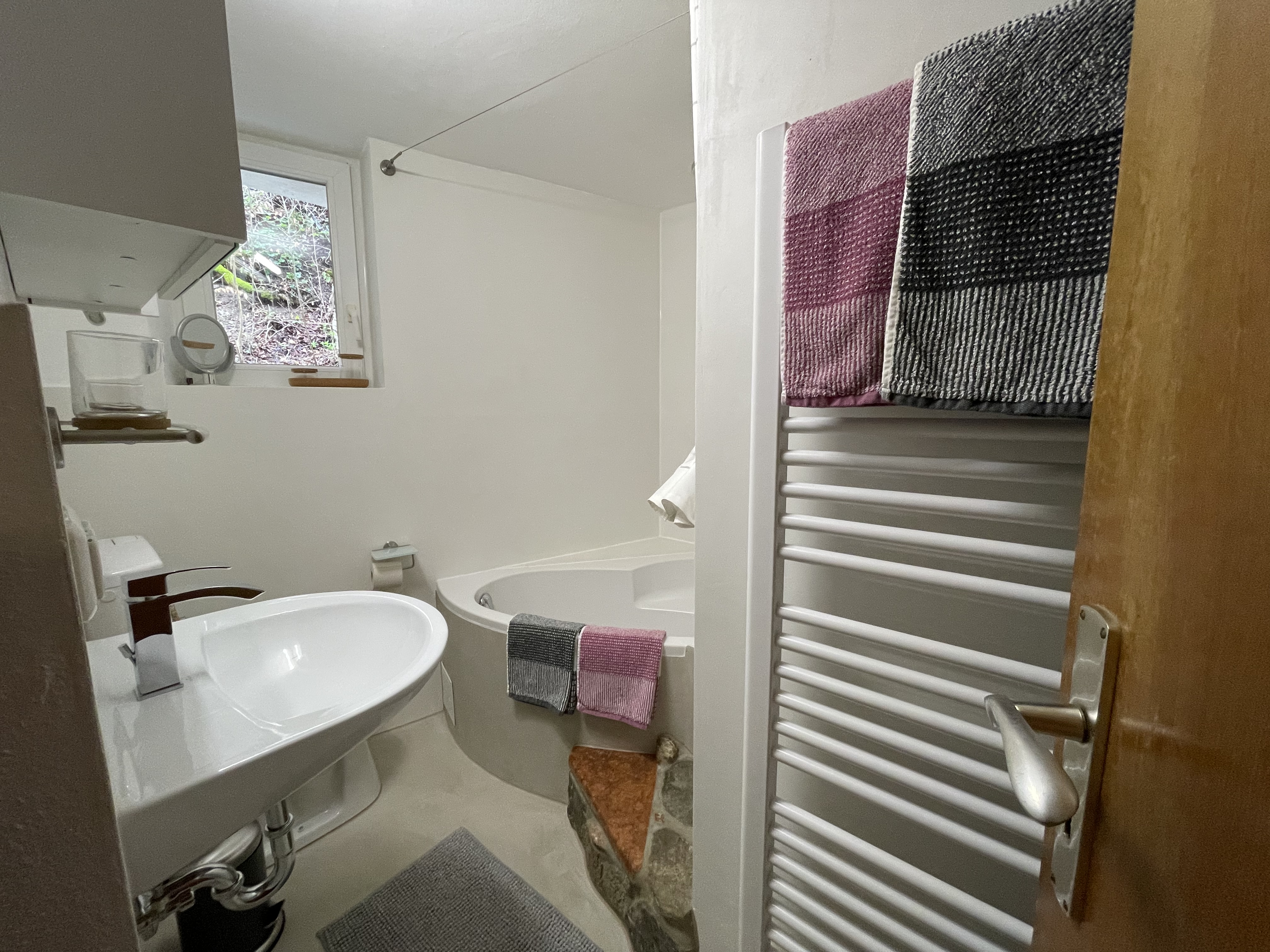 Unsere schöne Ferienwohnung hat einen eigenen Eingangsbereich mit Garderobe. Die Wohnung verfügt über 2 Betten, die liegen im Schlafzimmer (160x200) und im Wohnbereich (140x200). Das Badezimmer ist ausgestattet mit einer Badewanne und einer integrierten Regendusche. Die Küche hat eine Grundausstattung mit Herd, Wasserkocher, Kaffeemaschine, Toaster, Mikrowelle mit Grillfunktion, großer Kühlschrank mit Gefrierfach und Spülmaschine. Im Wohnbereich finden Sie eine Schlafcouch und einen Flachbildfernseher. Die Ferienwohung verfügt über kostenloses WLAN.