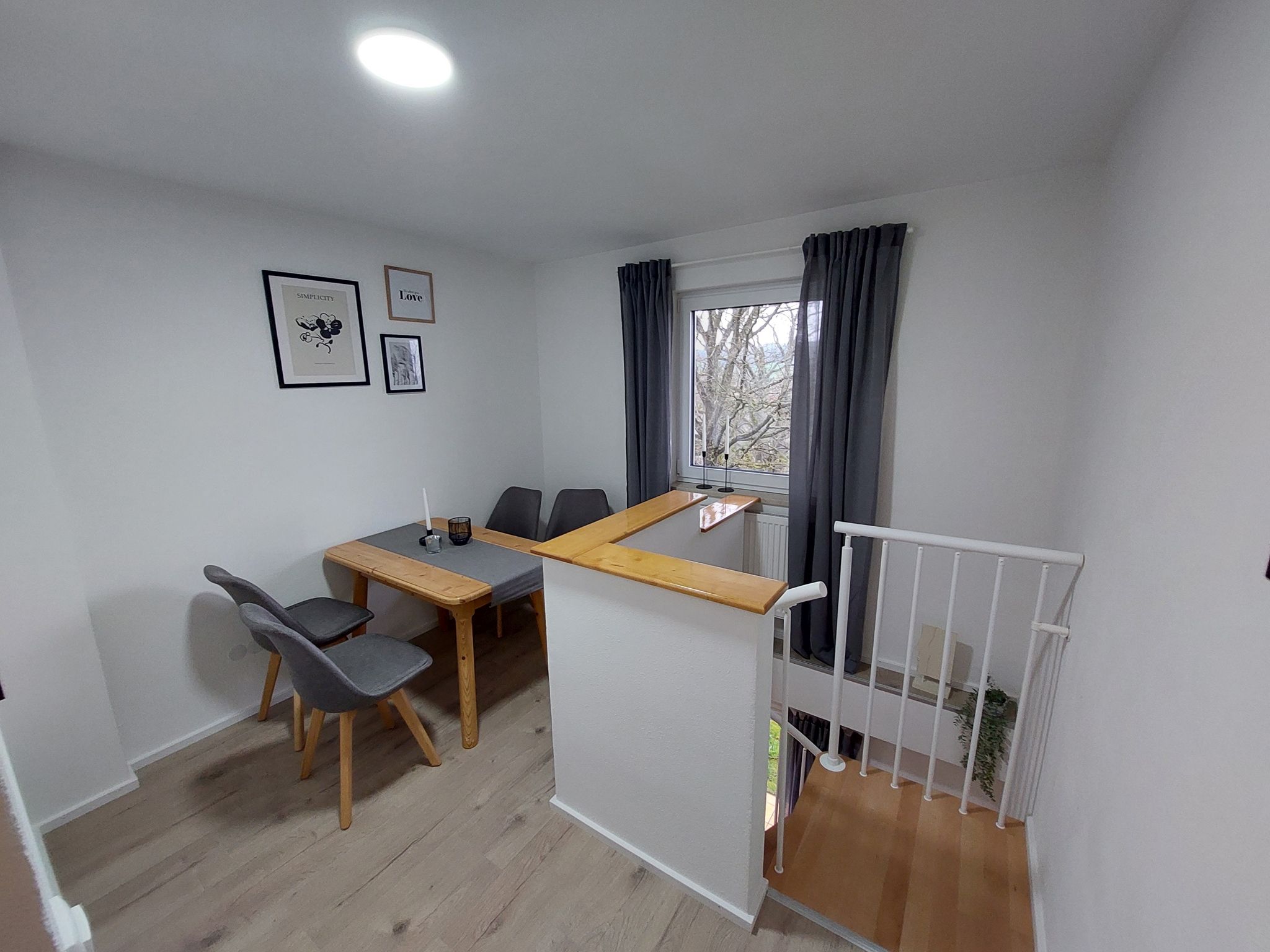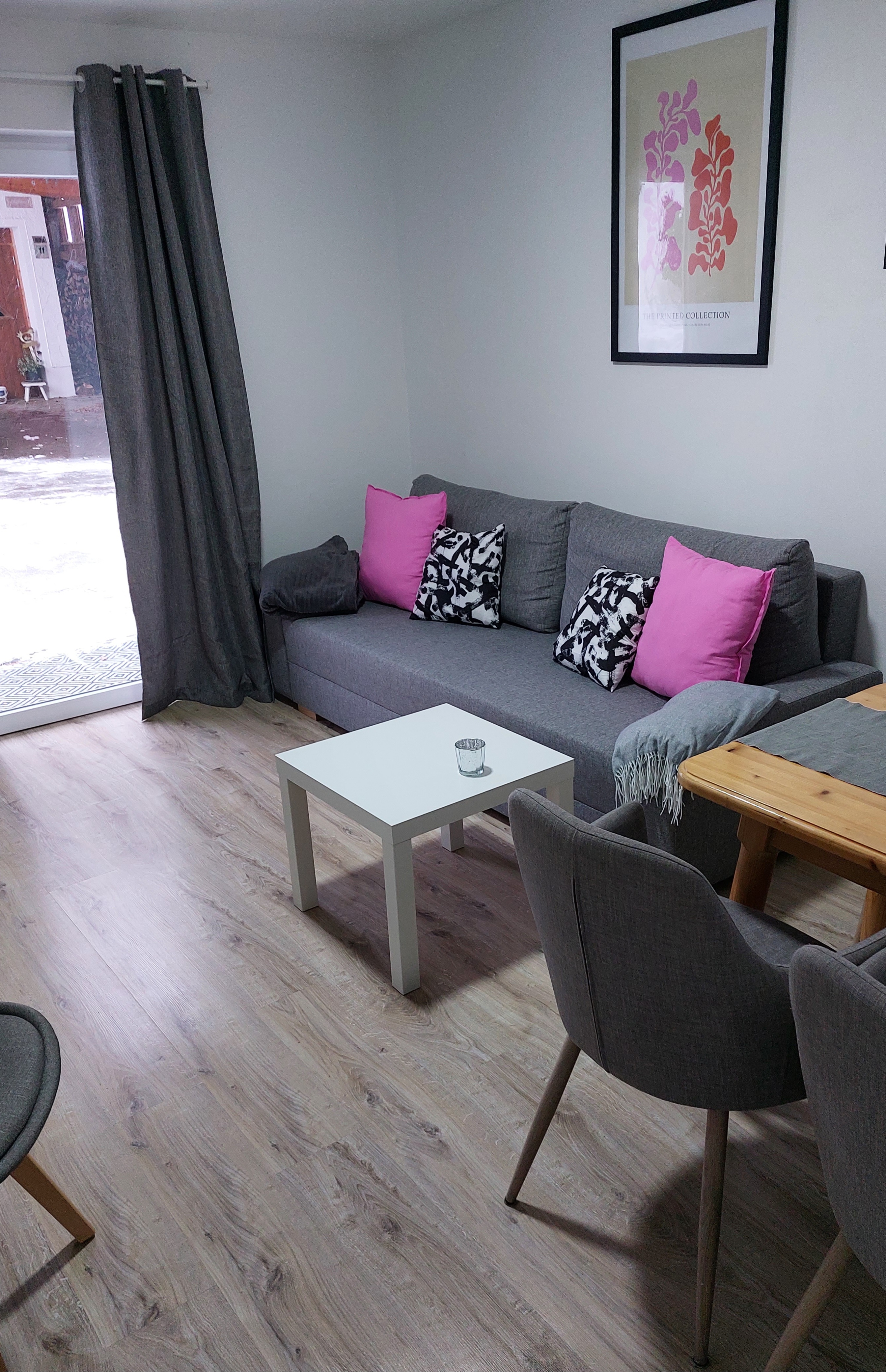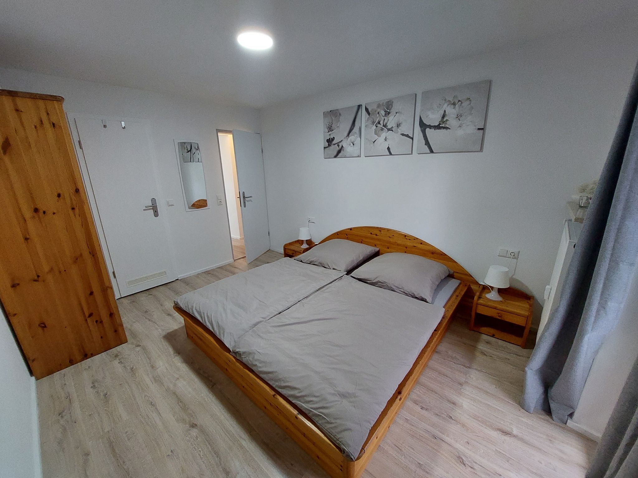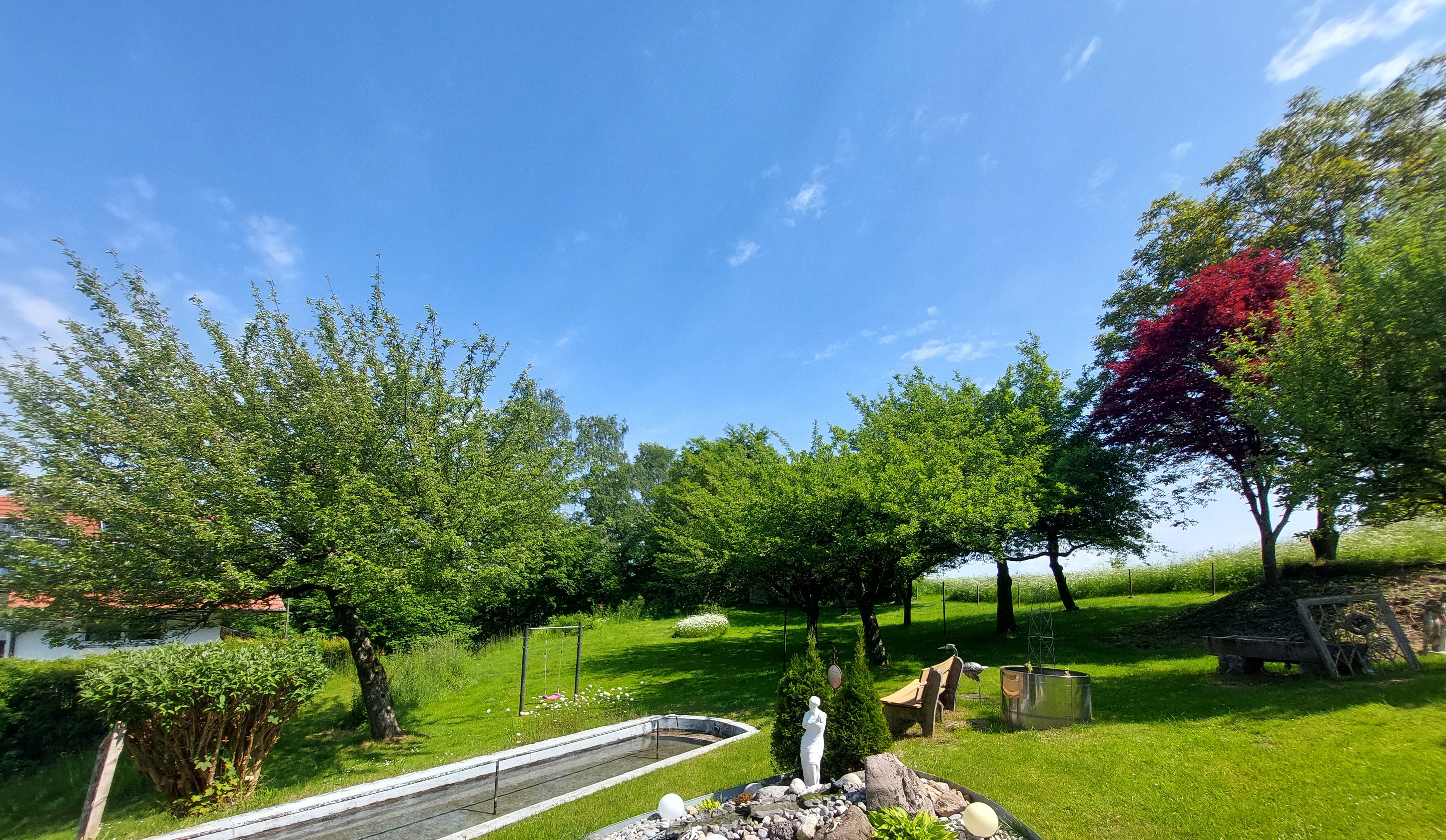 Unsere liebevoll eingerichtete Ferienwohnung (50 qm) für bis zu 4 Personen befindet sich am Ortsrand von Waging am See, direkt am Waldrand, idyllisch über Waging gelegen. Sie wurde im Jahr 2023 umfangreich saniert und lädt zu einem unbeschwerten Urlaub am wärmsten Badesee Oberbayerns ein. Auch Kinder sind bei uns herzlich willkommen. Die Wohnung erstreckt sich über zwei Geschosse. Im Erdgeschoss verfügt sie über eine gemütliche und voll ausgestattete Küche mit Kaffeepadautomat, ein geschmackvoll eingerichtetes Wohnzimmer / Esszimmer mit Flachbild-Fernseher und ein separates Bad mit begehbarer Dusche und Handtuchtrockner. Rauf über die Wendeltreppe gelangen Sie in ein kleines Zimmer mit französischem Doppelbett. Von da aus kommen sie in ein separates Schlafzimmer mit extra Badezimmer. Vom Balkon aus blicken sie auf eine natürliche Blumenwiese mit alten Obstbäumen. Zur Wohnung gehört außerdem eine Terrasse im Innenhof, auf der die Geselligkeit bestimmt nicht zu kurz kommt. In der gesamten Wohnung steht Ihnen kostenloses WLAN zur Verfügung.