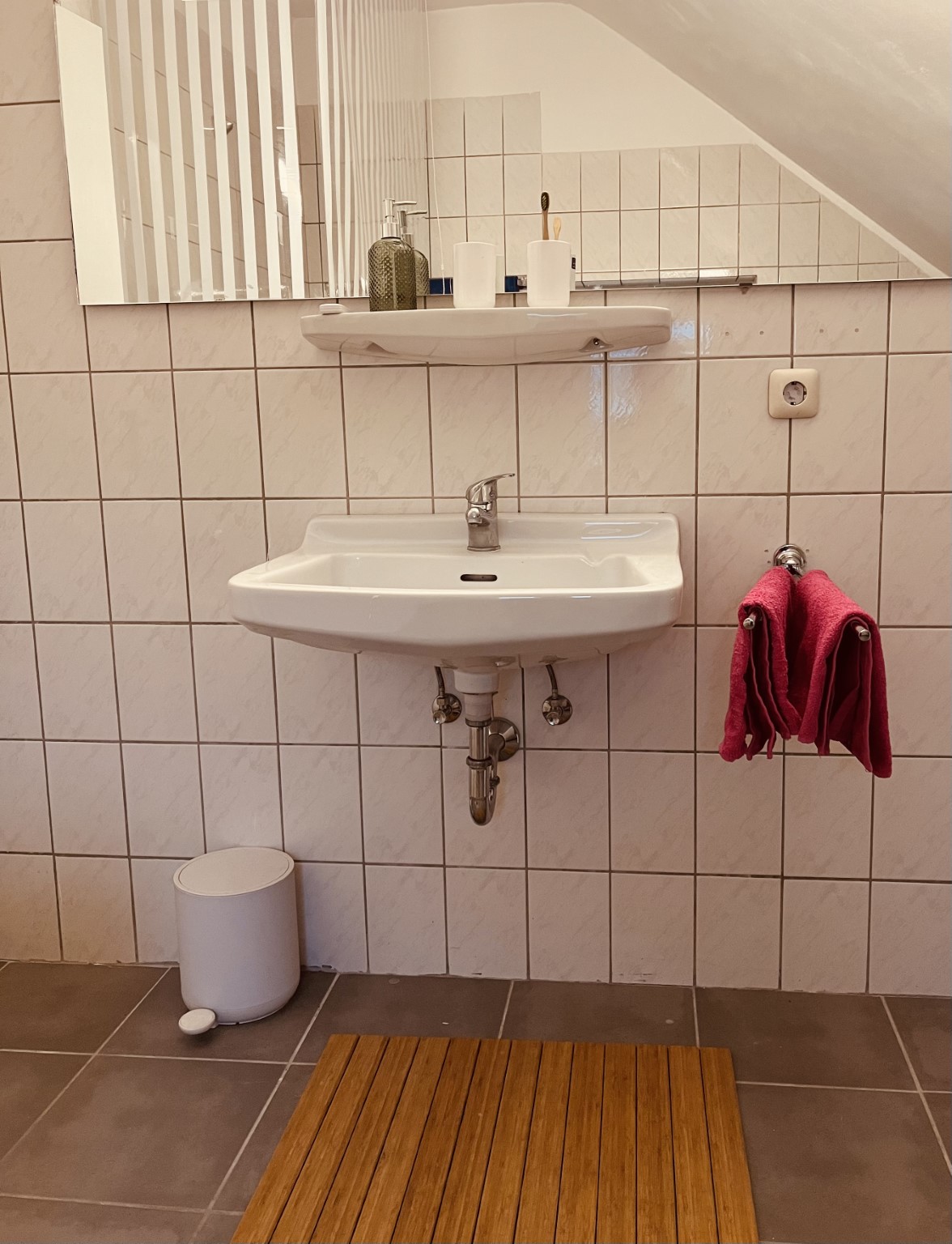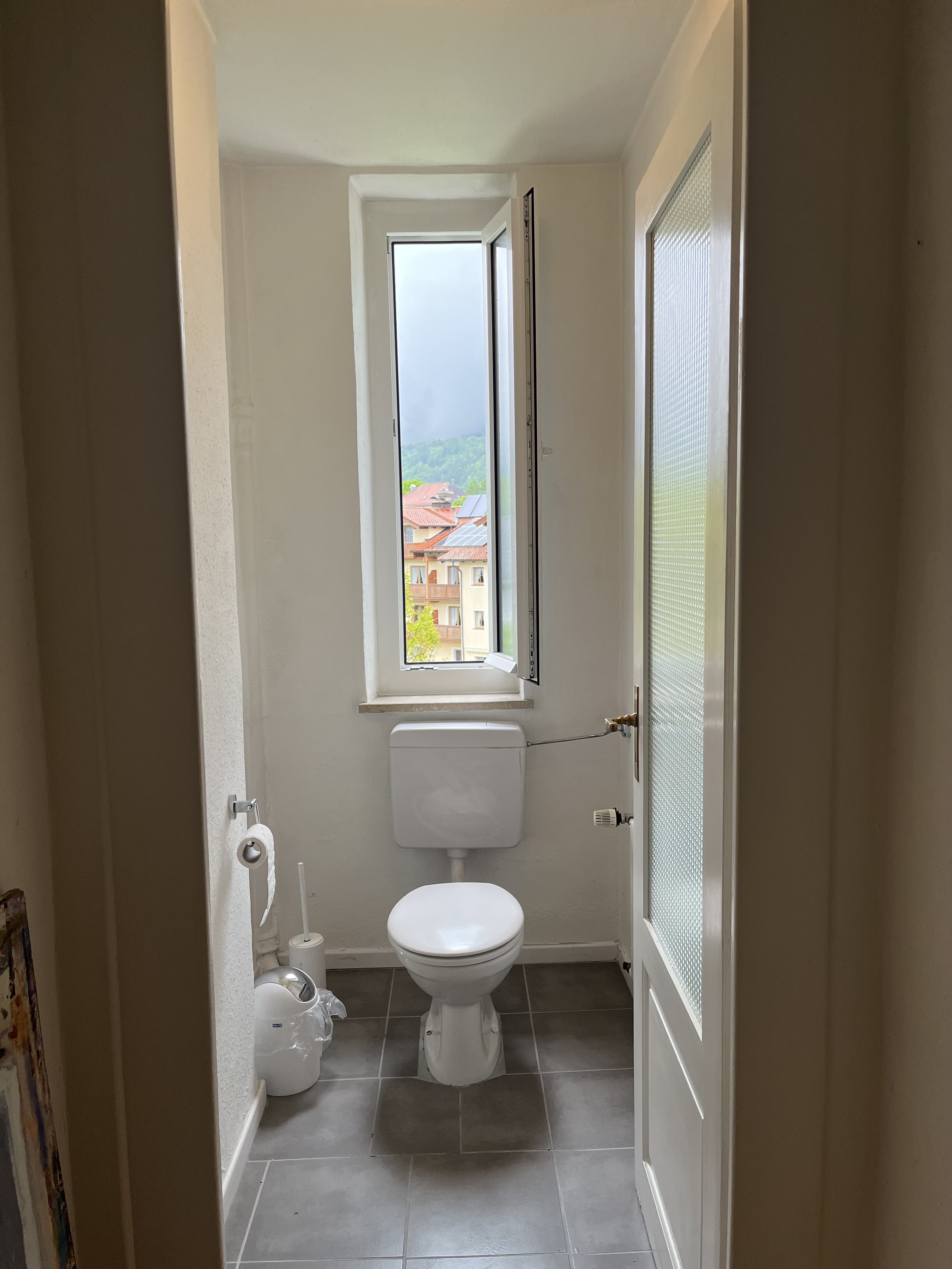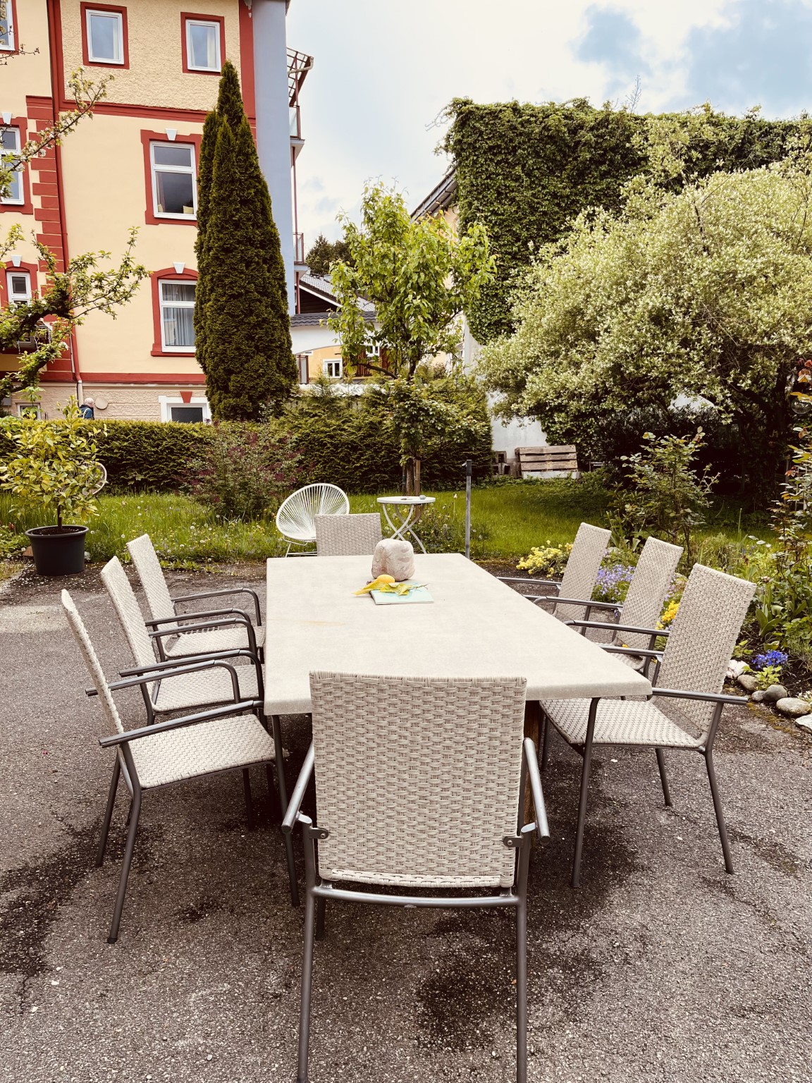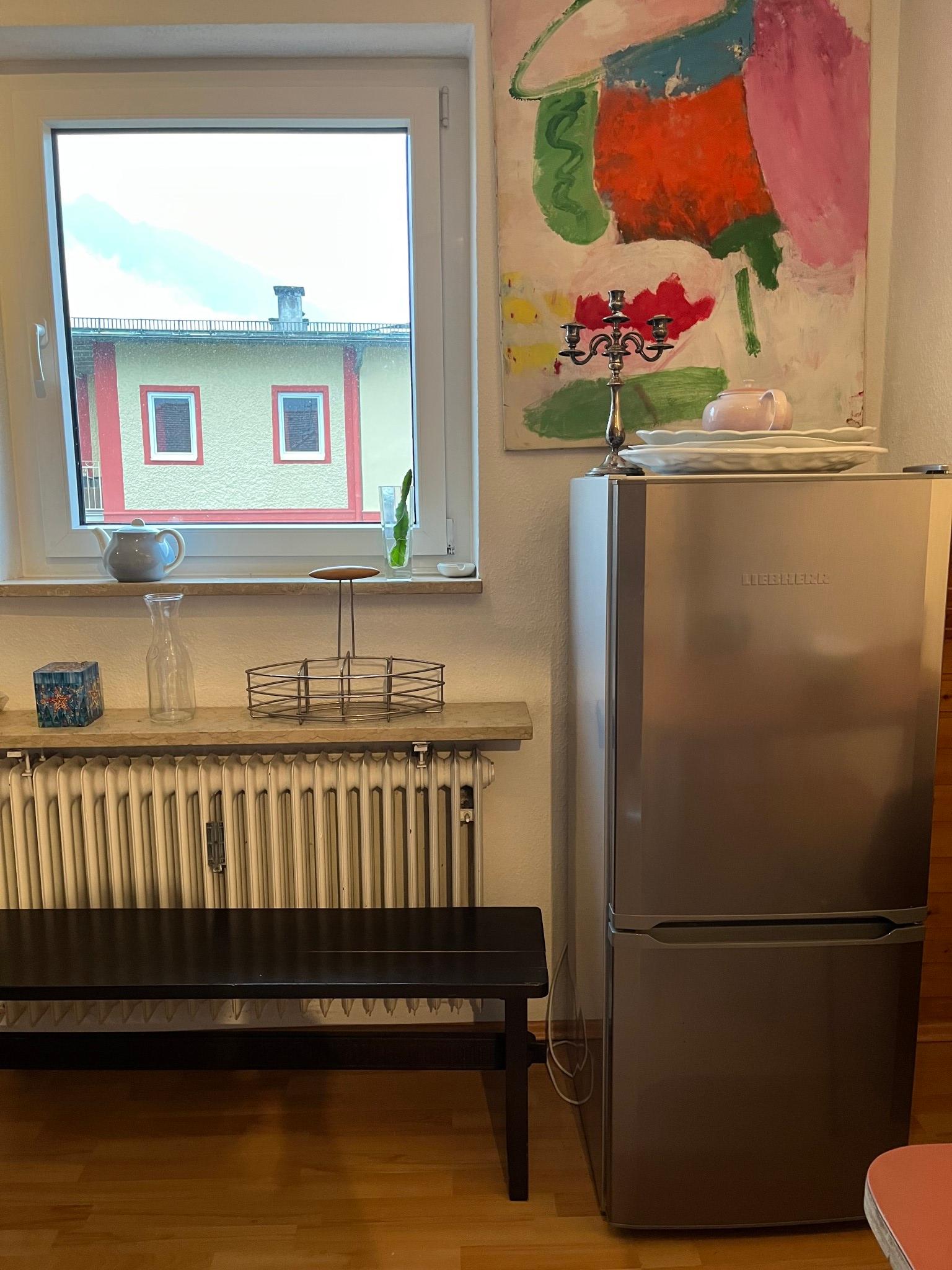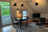 Die charmante, großzügige Dachgeschosswohnung ist liebevoll und individuell eingerichtet und lädt zum Relaxen ein. Das Wohnzimmer verfügt über ein großes Sofa zum Entspannen, das auch als zusätzlicher Schlafplatz verwendet werden kann. Ein TV, kostenloses W-Lan, ein digitales, tragbares Radio, verschiedene Spiele und Bücher stellen sicher, dass keine Langeweile aufkommt. Das Schlafzimmer verfügt über ein großes Doppelbett und bietet, wie das Wohnzimmer einen direkten Zugang zum Balkon, wo sich die erste Tasse Kaffee am Morgen oder das letzte Glas Wein am Abend, mit dem Blick auf die Berge, fabelhaft genießen lässt. Die Küche ist komplett mit Spülmaschine, Kühl-Gefrierschrank, Herd, Kaffeemaschine, Espressokanne einen Toaster und ausreichendem Kochgeschirr ausgestattet. Das großzügige Bad mit Fenster, das einen Blick auf die Berge und den Garten freigibt, verfügt über eine Badewanne mit Duschvorrichtung, ein Waschbecken und eine Waschmaschine. Die Toilette ist vom Bad getrennt. Auch der große Garten des Hauses kann benutzt werden. Es gibt dort einen ausgewiesenen Gästebereich. Ein Parkplatz im Anwesen steht zur Verfügung.