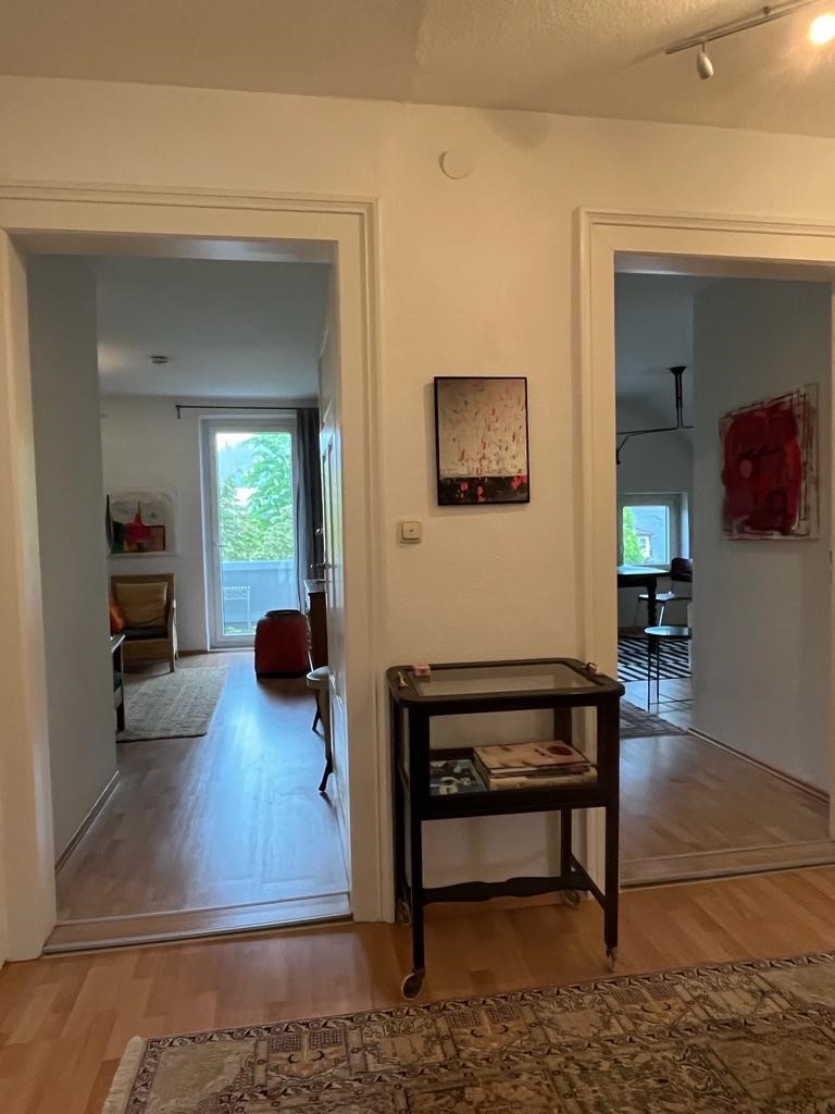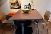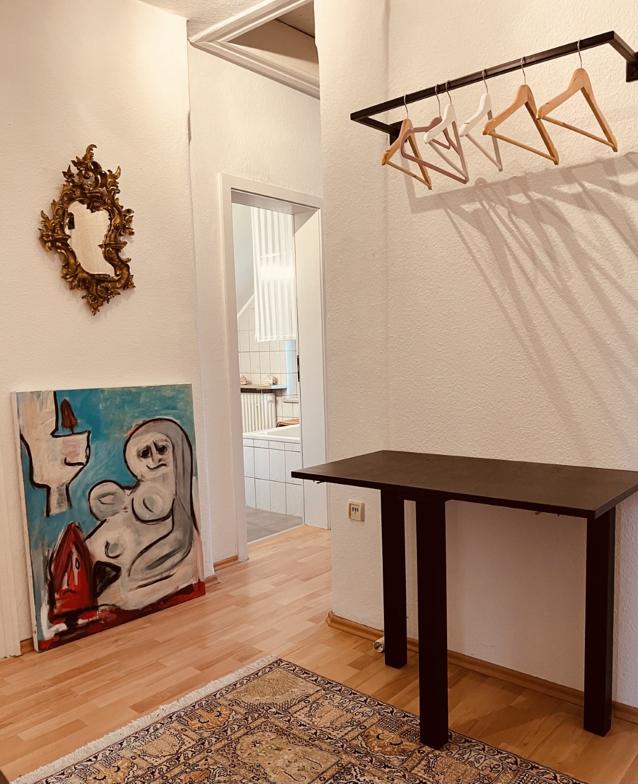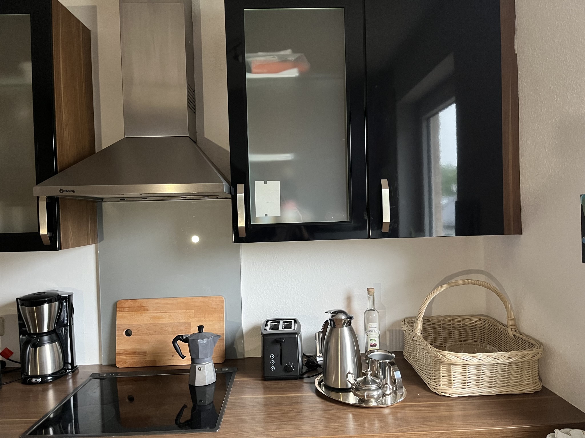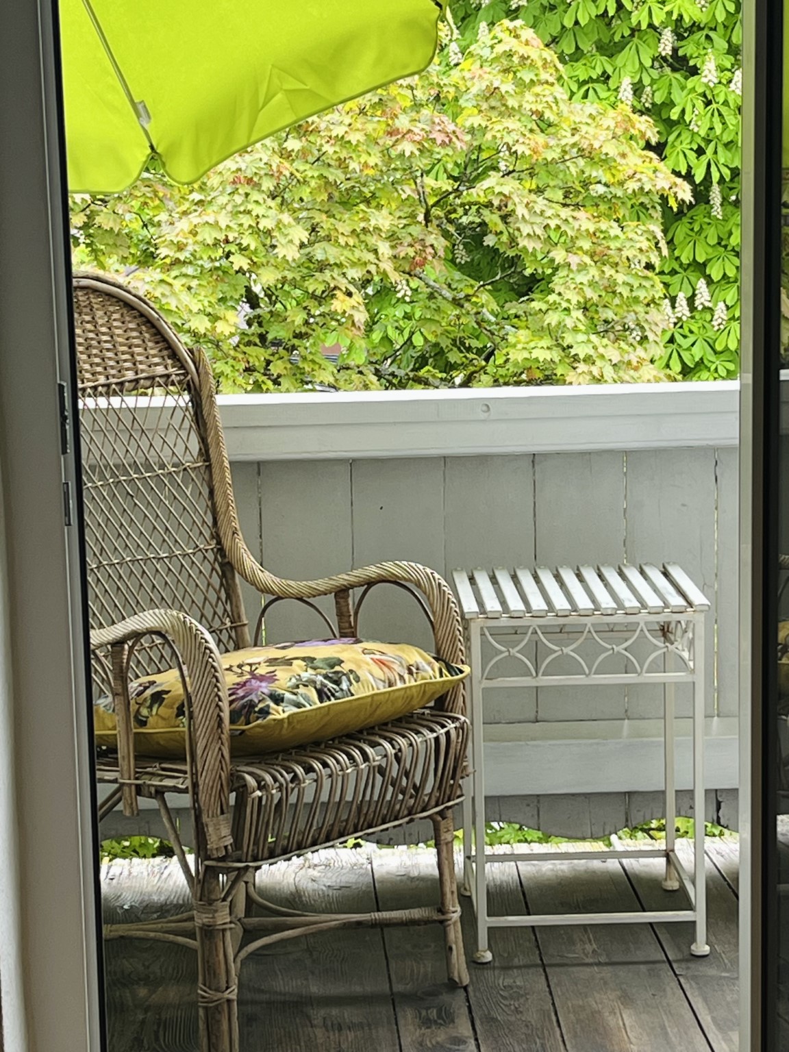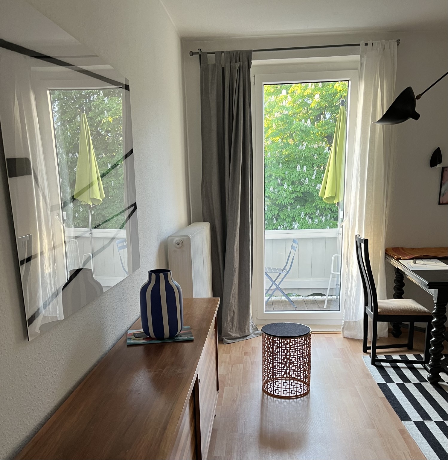 Die charmante, großzügige Dachgeschosswohnung ist liebevoll und individuell eingerichtet und lädt zum Relaxen ein. Das Wohnzimmer verfügt über ein großes Sofa zum Entspannen, das auch als zusätzlicher Schlafplatz verwendet werden kann. Ein TV, kostenloses W-Lan, ein digitales, tragbares Radio, verschiedene Spiele und Bücher stellen sicher, dass keine Langeweile aufkommt. Das Schlafzimmer verfügt über ein großes Doppelbett und bietet, wie das Wohnzimmer einen direkten Zugang zum Balkon, wo sich die erste Tasse Kaffee am Morgen oder das letzte Glas Wein am Abend, mit dem Blick auf die Berge, fabelhaft genießen lässt. Die Küche ist komplett mit Spülmaschine, Kühl-Gefrierschrank, Herd, Kaffeemaschine, Espressokanne einen Toaster und ausreichendem Kochgeschirr ausgestattet. Das großzügige Bad mit Fenster, das einen Blick auf die Berge und den Garten freigibt, verfügt über eine Badewanne mit Duschvorrichtung, ein Waschbecken und eine Waschmaschine. Die Toilette ist vom Bad getrennt. Auch der große Garten des Hauses kann benutzt werden. Es gibt dort einen ausgewiesenen Gästebereich. Ein Parkplatz im Anwesen steht zur Verfügung.