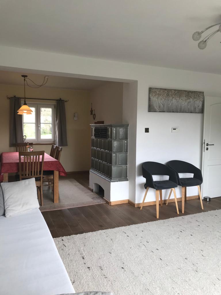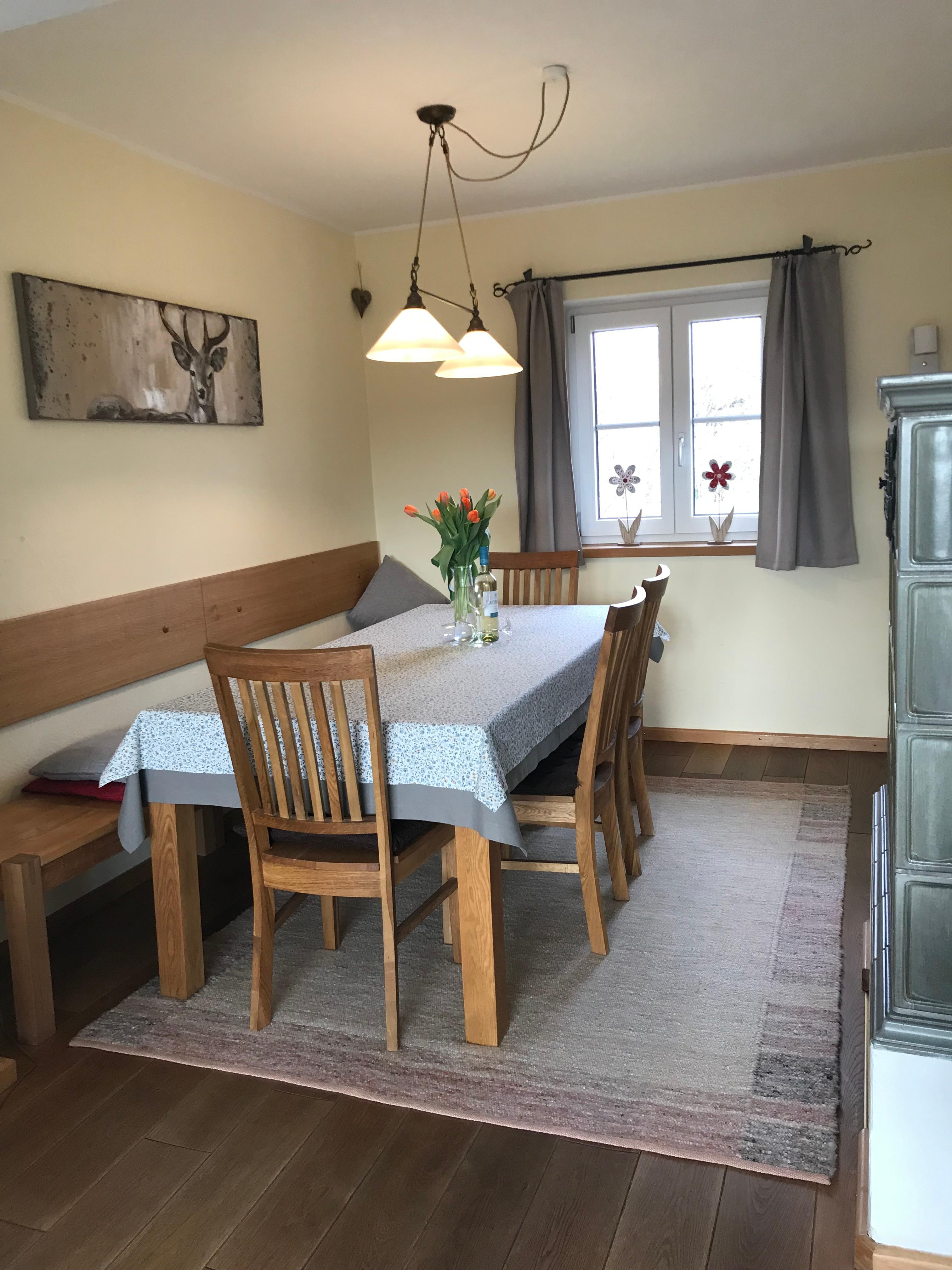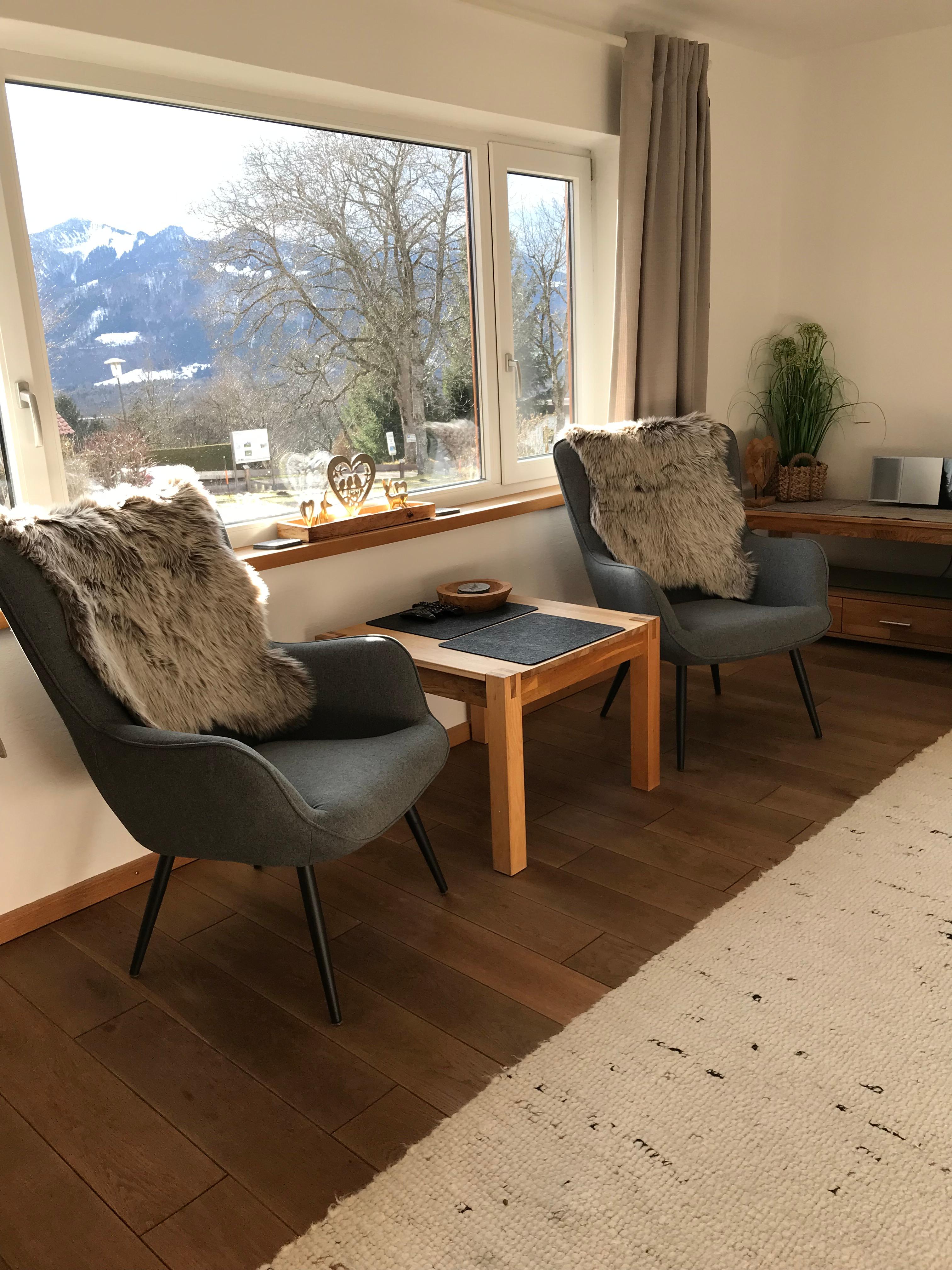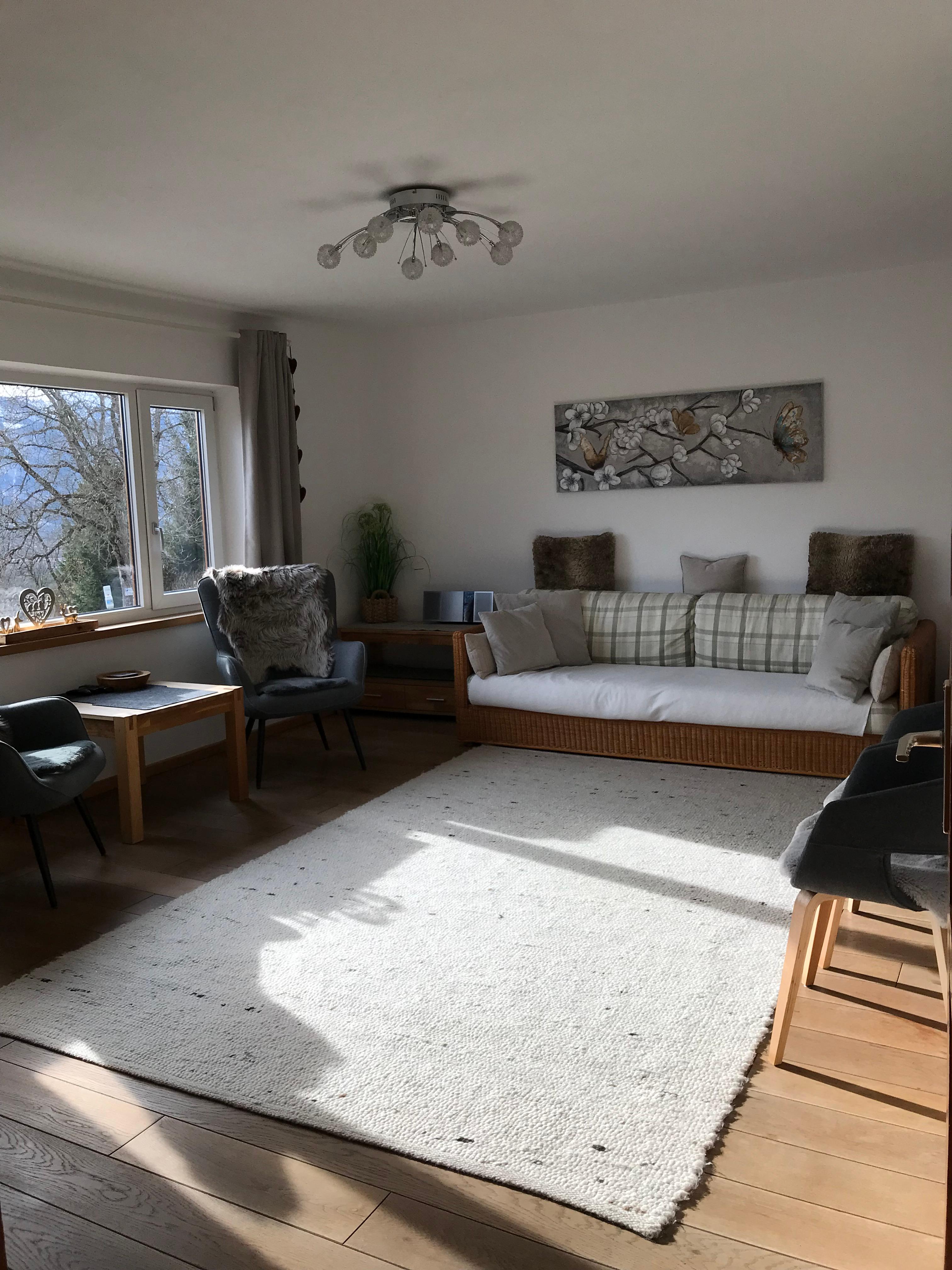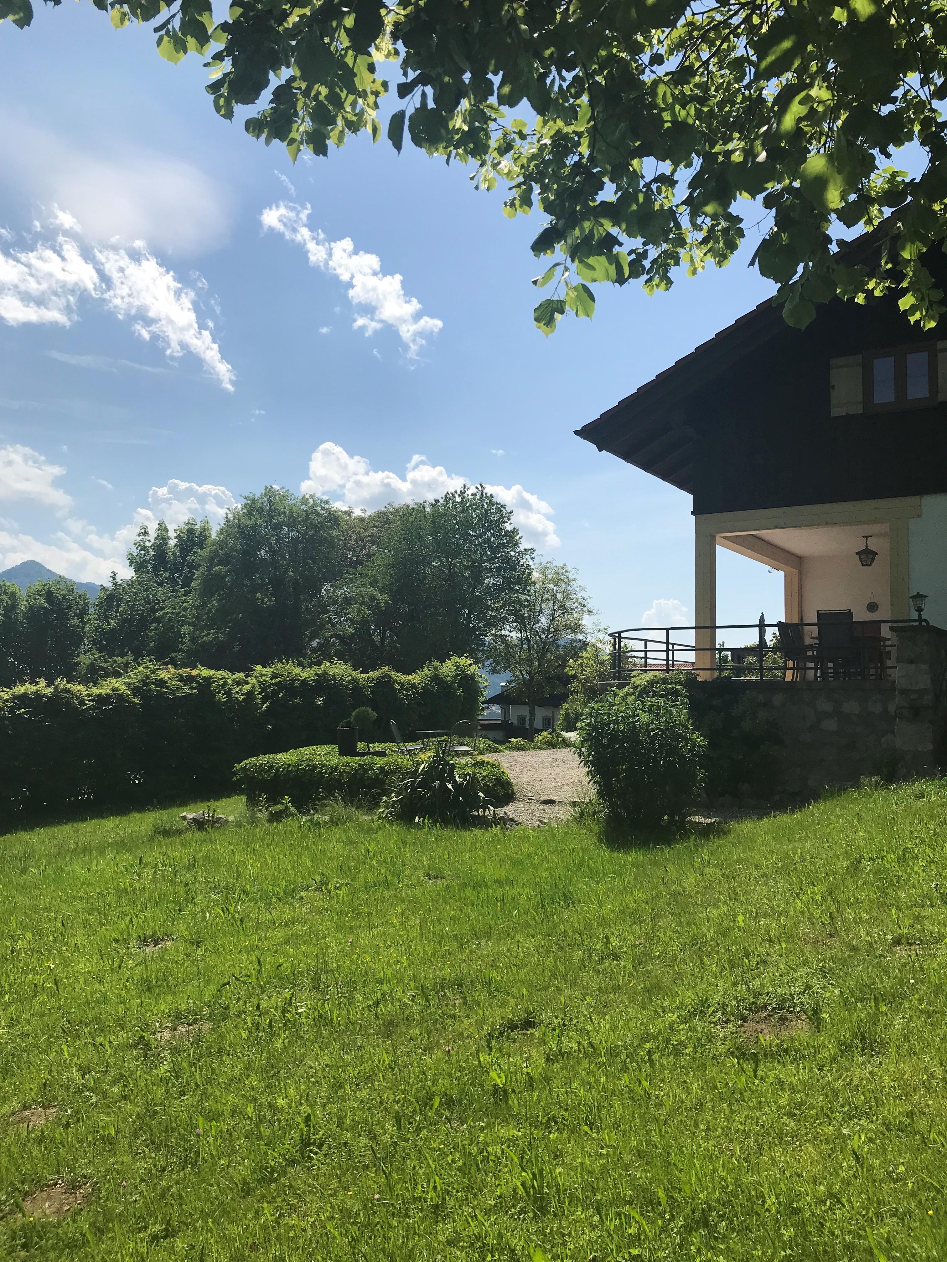 der Terrasse und vom Haus auf die Chiemgauer Alpen genießen. Das Haus verfügt über 3 Schlafzimmer, 1 großes Wohn- und Esszimmer, 1 weiteres Zimmer und eine separate Küche. Fernseher mit 132cm Bildschirmdiagonale und WLAN.