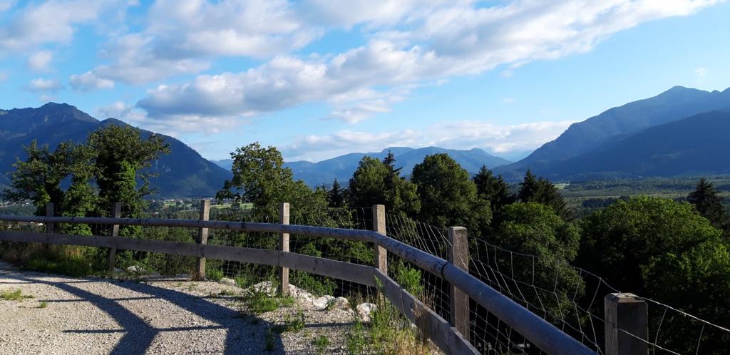 bezauberndem Blick auf grüne Wiesen und die Chiemgauer Alpen. 5 km