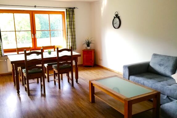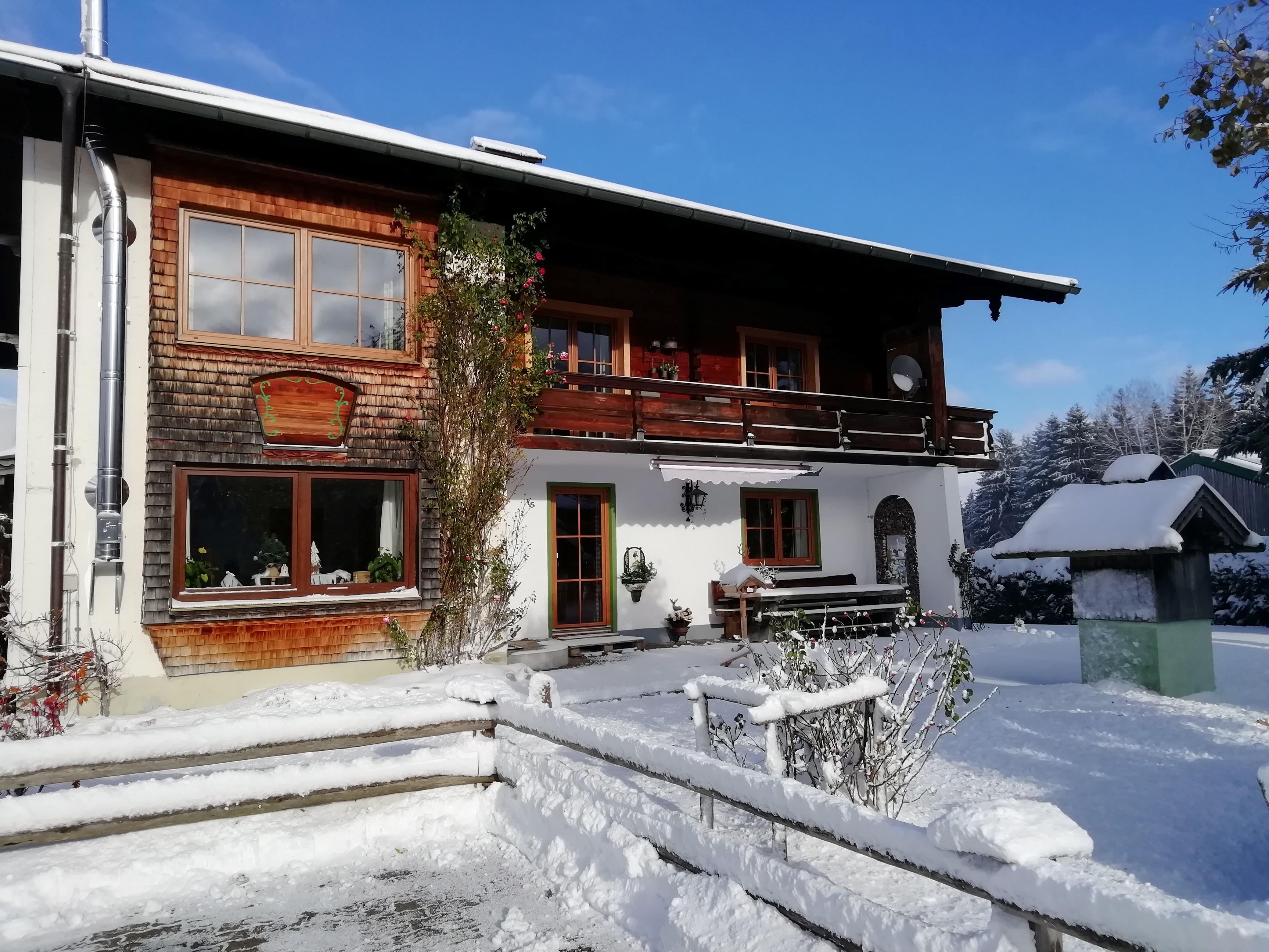 Herzlich Willkommen in unserer komplett eingerichteten, mit 100qm sehr geräumigen Ferienwohnung inklusive Bettwäsche und Handtücher.Die Wohnung bietet Wohnbereich mit Flachbild-TV und Sattelitenempfang. Die vollausgestattete Küche hat Backofen, Geschirrspülmaschine, Toaster, Kühlschrank mit Tiefkühlfach, Wasserkocher, Kaffeemaschine sowie eine Essbereich. Das Badezimmer hat eine Badewanne, Dusche, Haartrockner.Die Wohnung hat zwei Schlafzimmer, das erste mit 20qm und Bett 1,80x2,00 Meter, das zweite Schlafzimmer ist 14qm groß und hat ein Bette 1,60x2,00 Meter.Vom Balkon der Wohnung kann man dank der ruhigen Lage den Bergblick, die Sonne und den Blick in Garten und umliegende Natur in vollen Zügen genießen.Grillmöglichkeit im Garten vorhanden. Abstellraum für Ski. Urige Keller-Bar wo Sie Weihnachten/Silvester ihr Fondue oder Raclette geniessen können. Das Rauchen ist auf dem Balkon erlaubt, in der Wohnung allerdings nicht.Auch Motorradfahrer und E-Biker sind bei uns herzlich Willkommen.Neu ab Dezember 2024 Chiemgau Karte. Der Vorteil für Sie: Noch mehr Vergünstigungen was Ihren Urlaub noch Atraktiver macht.Familie Gimpl freut sich auf euch mit einem Begrüßungs Drink, und für die Kinder gibt's eine kleine Überraschung.