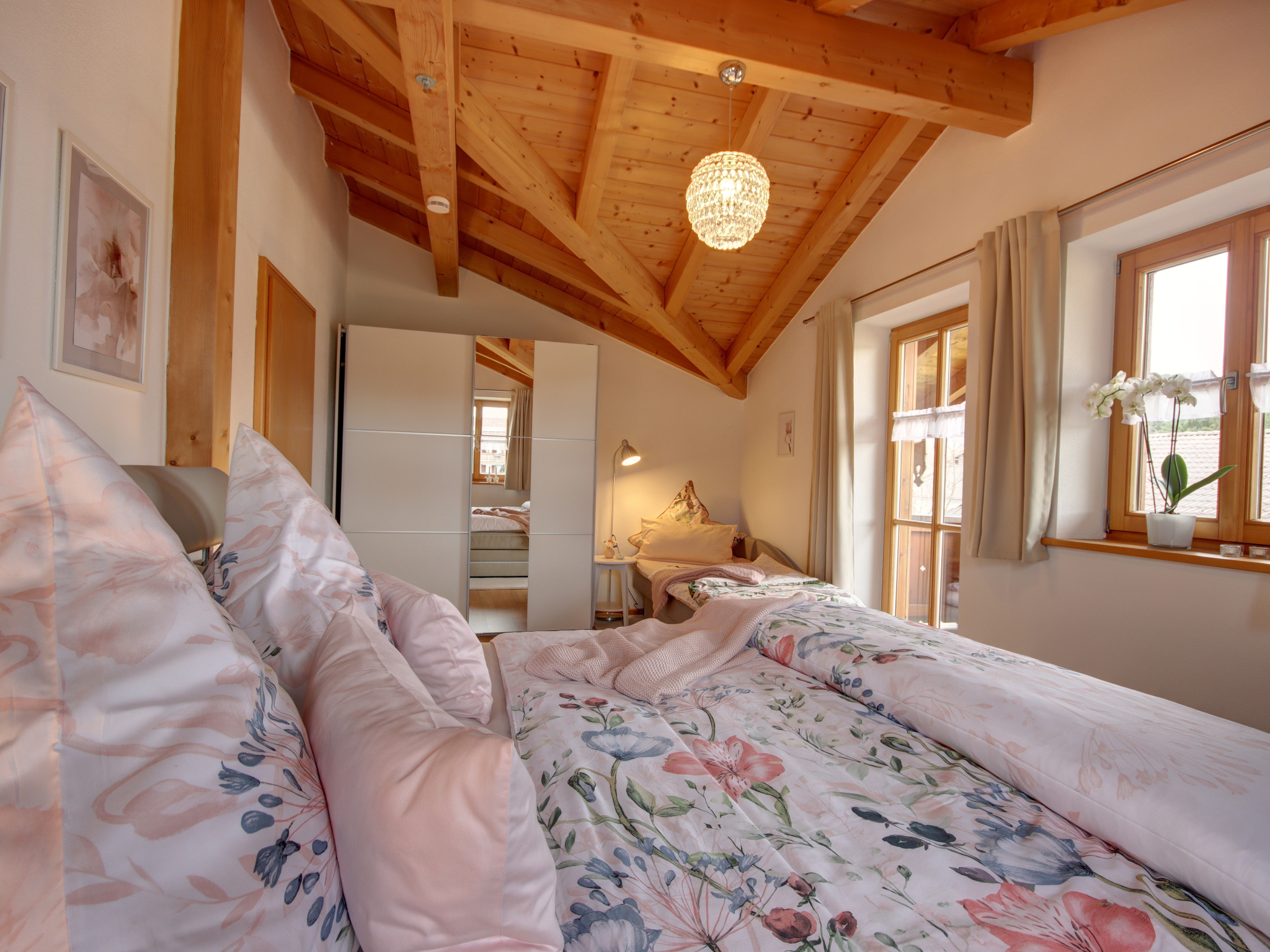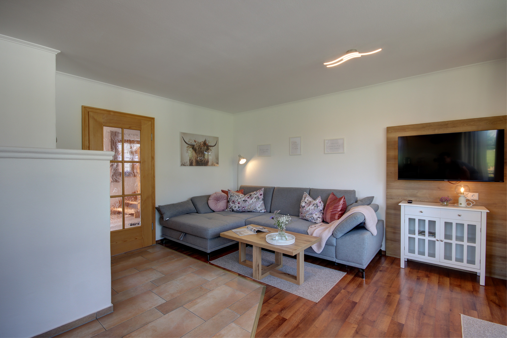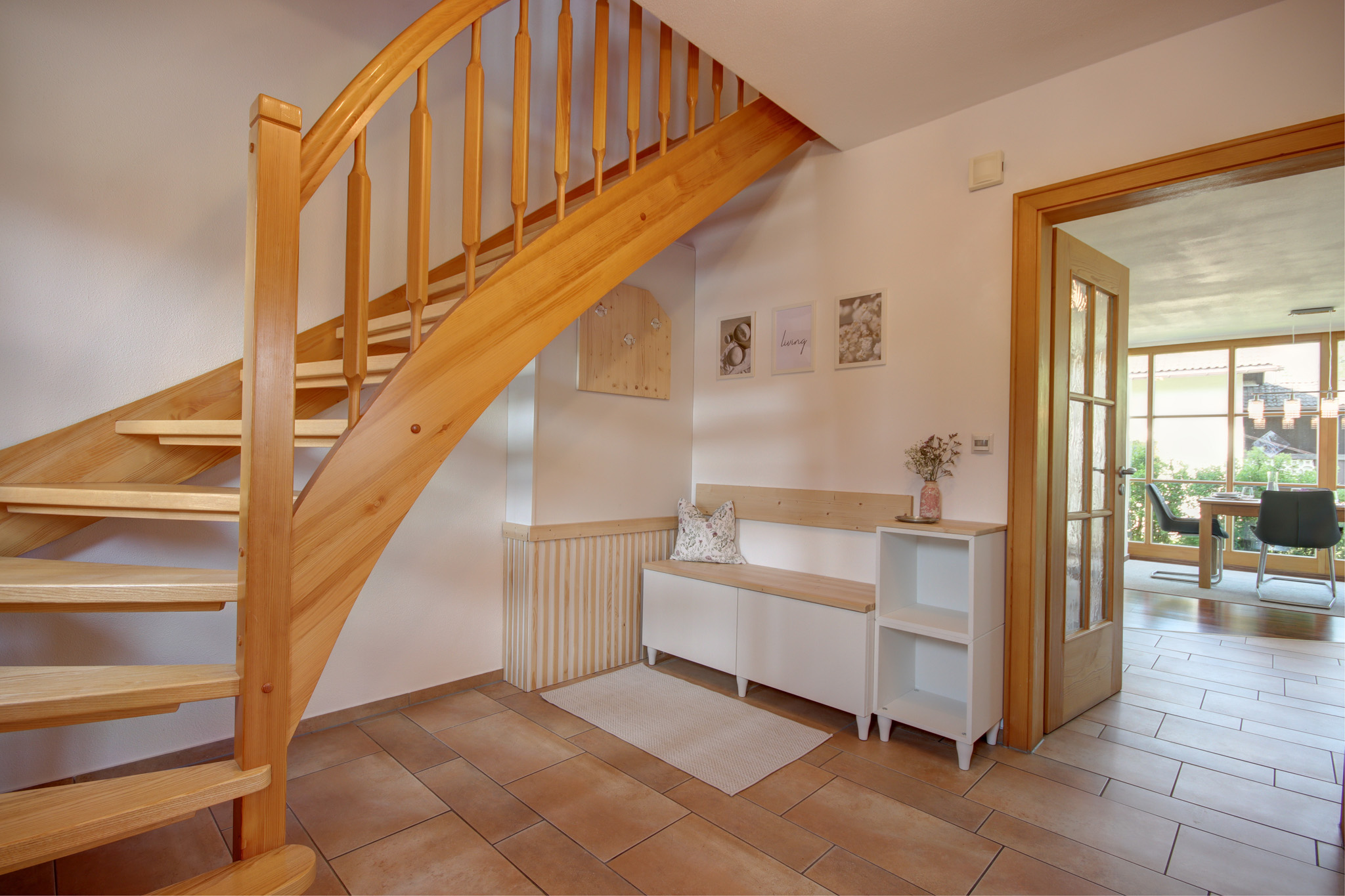 Im Erdgeschoss befindet sich: - ein Vorraum mit Garderobe- ein kleines Gäste-WC- eine Speisekammer mit Abstellmöglichkeiten, Waschmaschine, Gefrierschrank- ein großer Wohn-Essbereich mit Couch und schwenkbarem Smart TV,- ein massiver Vollholz Esstisch mit Stühlen ( kleiner Wintergarten)- eine neue, sehr gut sortierte Küche ( Kaffeevollautomat, hochwertiges Besteck und Geschirr, verschiedene Küchengeräte, Brotmaschine, Töpfe und Pfannen..) - Kaminofen Eine offene Holztreppe führt ins Obergeschoss mit Sichtdachstuhl und Gaube. Hier befindet sich: - ein großes Schlafzimmer mit großem Boxspringbett, ausziehbarer Schlafcouch, die bei Bedarf mit Topper und Bettwäsche vorbereitet wird, und einem Smart TV.- ein Zimmer, dass mit einem Boxspringbett 1,40x2,00m ausgestattet ist und als 2. Schlafzimmer oder als Relax-und Lesezimmer geeignet. Das Bett ist zum Schlafen ideal für 1-2 Personen, genauso kann es als Liegewiese zum Lesen und Entspannen genutzt werden.- ein großes Badezimmer mit einer großzügigen Dusche mit Regenbrause, WC, Waschtisch, Föhn und Kosmetikspiegel - Handtücher, Bettwäsche, Geschirrtücher, Decken sowie Küchenrolle,Toilettenpapier und Geschirrspülreiniger werden von uns gestellt In unserem Ferienhaus ist rauchen nicht gestattetHaustiere können wir leider nicht aufnehmenDas Haus ist für Allergiker geeignetIm gesamten Haus ist Fußbodenheizung