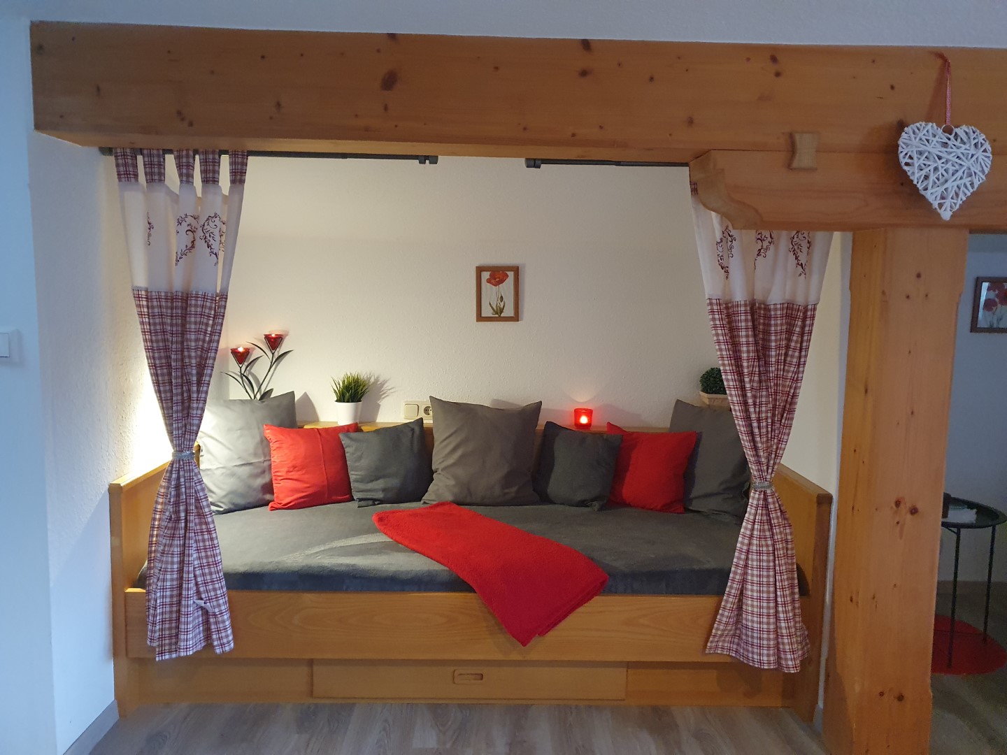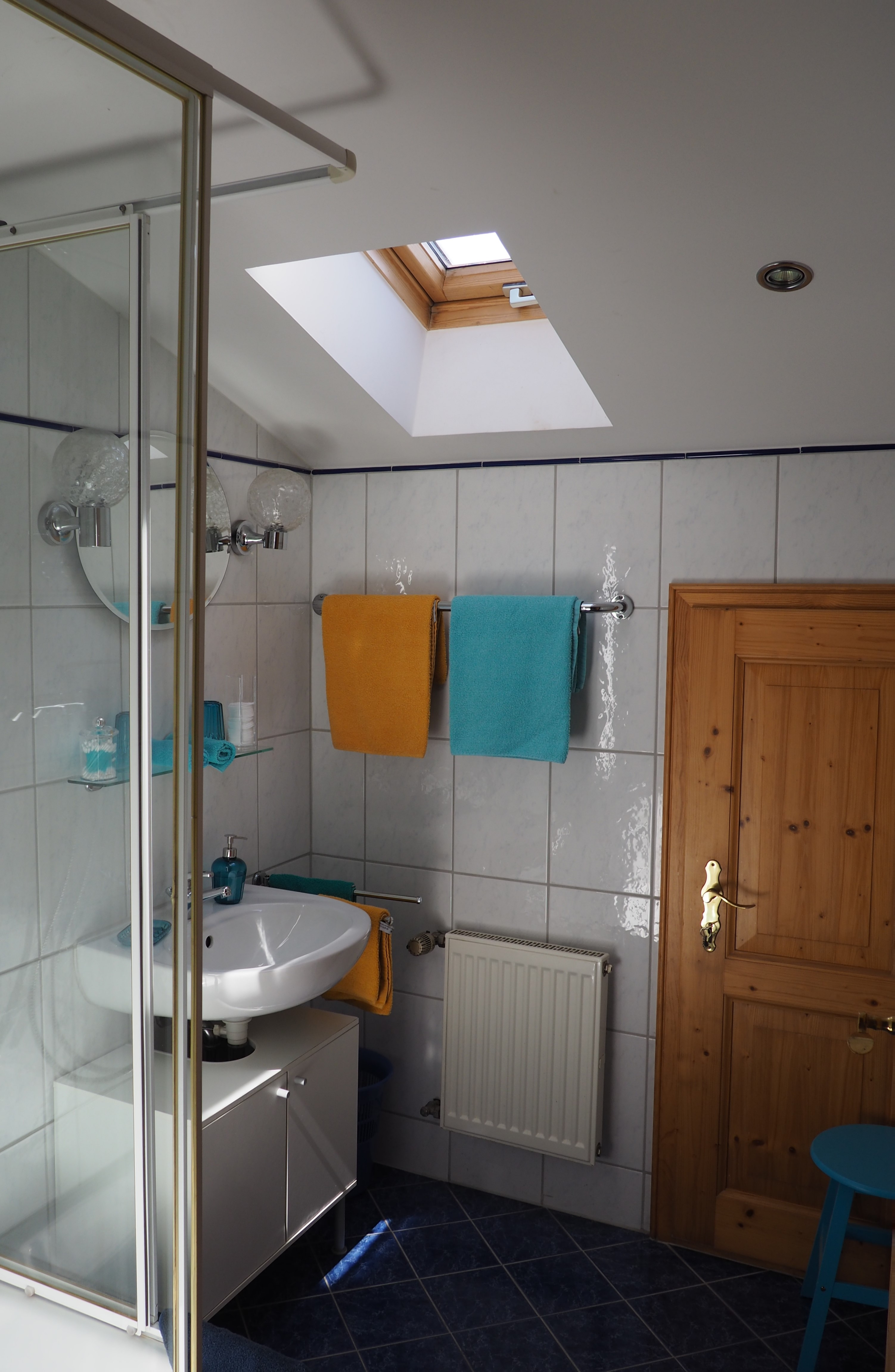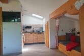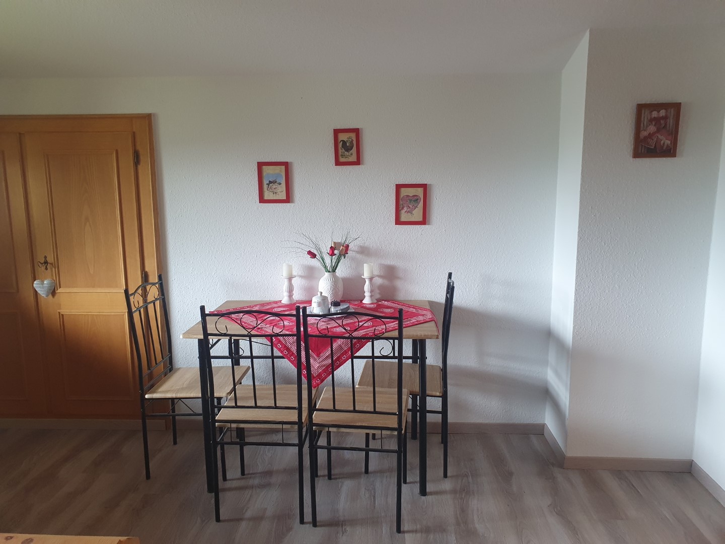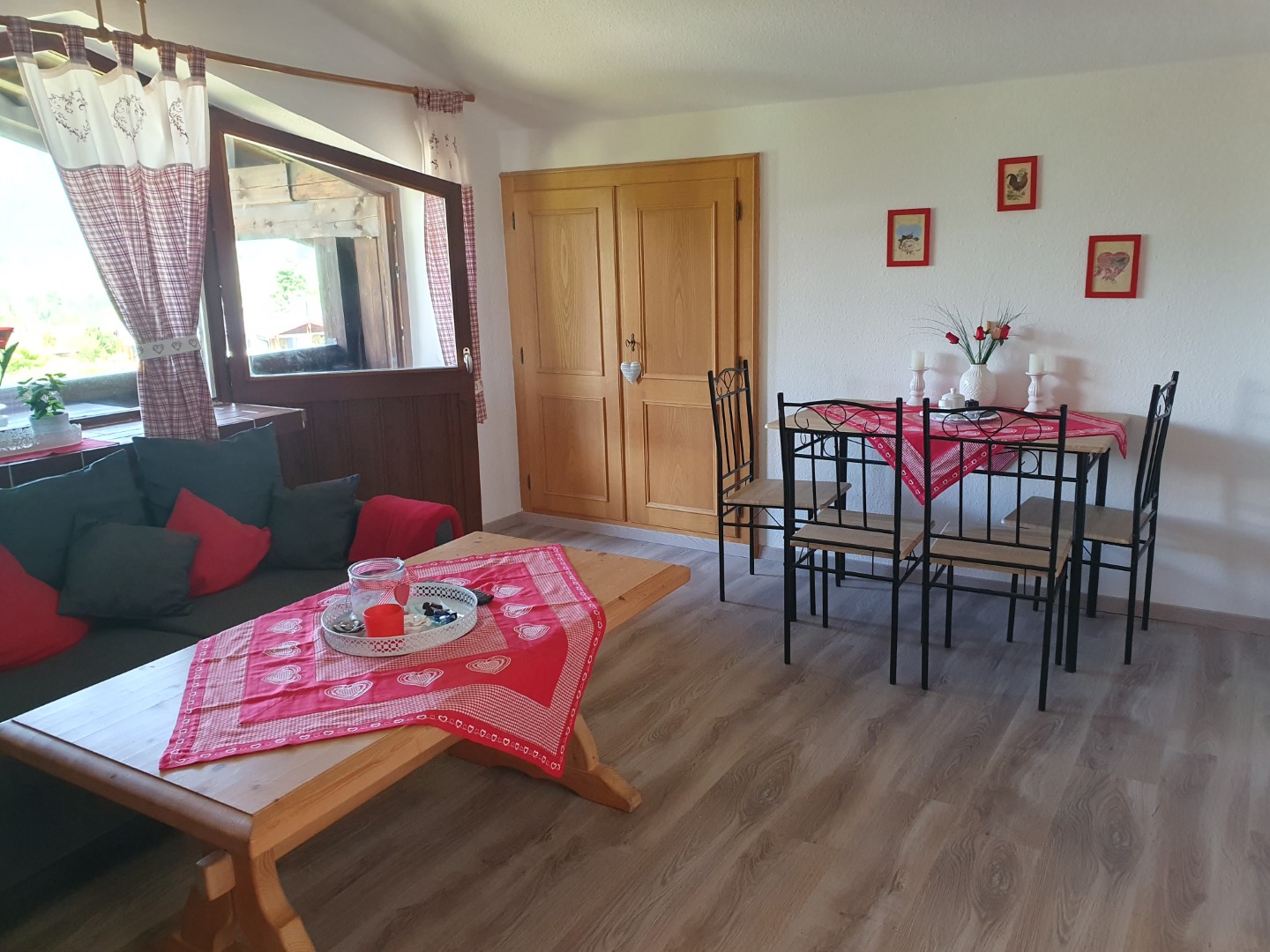 Unsere neugestaltete Nichtraucher-Ferienwohnung bietet Platz auf 65 qm. Sie ist ausgestattet mit einem separaten Schlafzimmer, einem Wohnzimmer mit Schlafsofa für die dritte Person (oder 2 Kindern), einer Essecke und einer offenen, kleinen, gut sortierten Küche, einem Bad mit Dusche, sowie zwei zusätzlichen WCs. Auf dem möblierten Balkon genießen Sie einen wunderbaren Blick in die Natur und auf die umliegenden Berge.