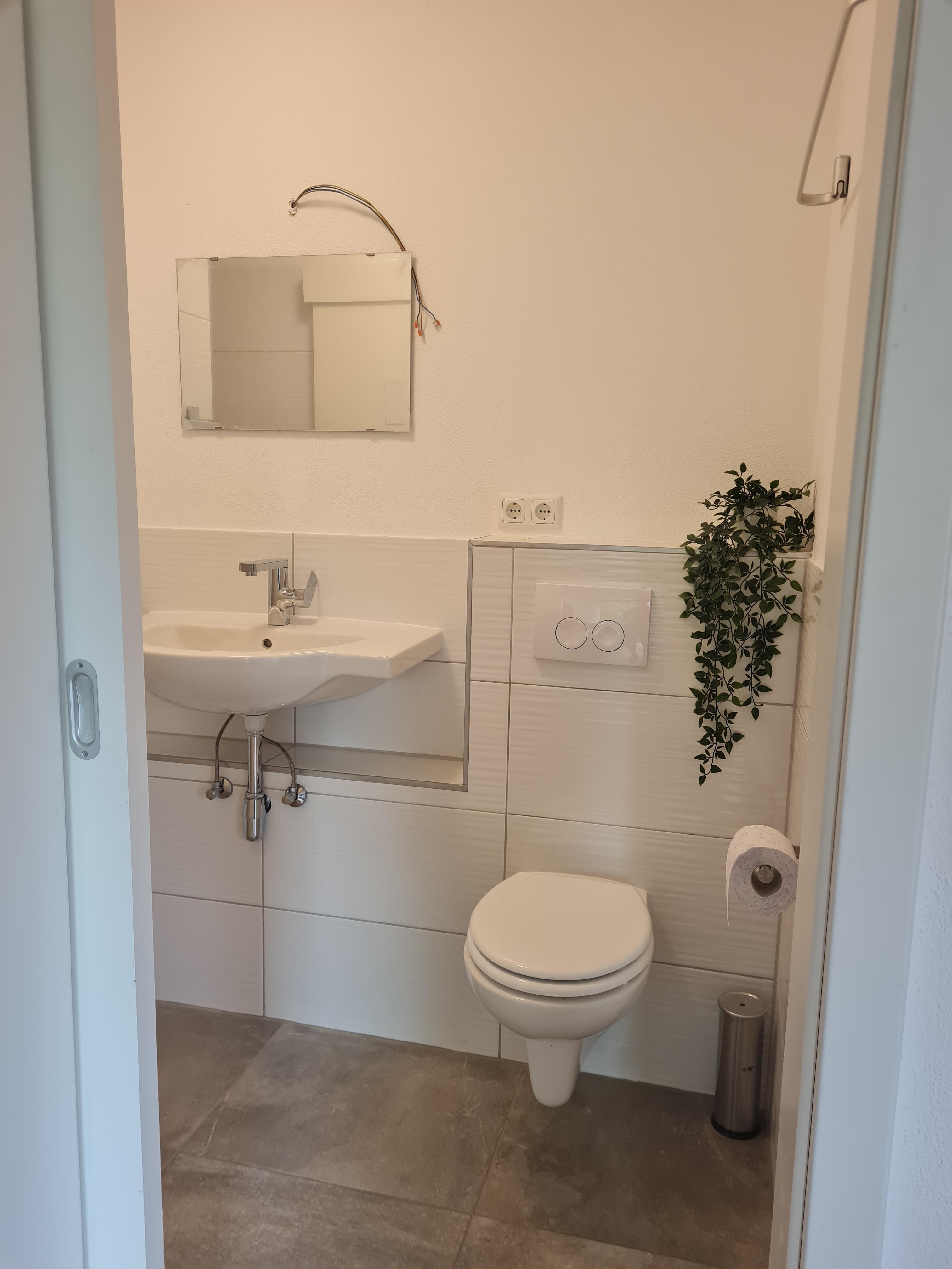 Die Einrichtung hat Hotelstandard. Aus den Fenstern und der Terrasse genießt man die Aussicht ins Grüne und auf die Berge. Die Unterkunft befindet sich bis zum Sonnenuntergang in sonniger heller Lage. Im Sommer sind Kälber auf der angrenzenden Weide. Es steht eine Waschmachine und ein Trockner im Untergeschoß der Unterkunft über eine Treppe erreichbar zur Verfügung. Ein Bügelbrett und Bügeleisen sind im ebenerdigen Gemeinschaftsbereich verfügbar. Die Unterkunft liegt am äußersten Südrand des ehemaligen Dorfes Pang (jetzt von Rosenheim eingemeindet) sehr ruhig, sonnig und hell gelegen. Der Flughafen München ist über die Autobahn 100 km, ca 1 Stunde entfernt. Zum Flughafen Salzburg sind es 77 km über die Autobahn. In 5 Minuten erreicht man das  Autobahnkreuz Inntaldreieck oder die Anschlußstelle Bad Aibling an der A8. Auch mit den öffnetlichen Verkehrsmitteln Bahn und Bus und 2 Gehminuten (nach 19:00 Uhr ca 6 km mit dem Taxi) erreicht man die Unterkunft sehr gut. Der Bus fährt im 20 Minuten Takt vom Bahnhof zur Unterkunft in Pang. Vor Ort gibt es in 2-5 Gehminuten Apotheke, Lebensmittelladen, Bäcker, Pizzaria, bayerische Wirtschaften, Post, Bushaltestellen, Dorfladen, Autowerkstatt, 5 Fahrminuten zu den nächsten Seen, Angelmöglichkeiten, Golfplatz, Boulderhalle, Ponyreiten, Beachvolleyball, Tankstelle, Supermarkt. Kanufahren, Kajakwelle, diverse Freibäder, Hallenbad, Kletterhalle, Stadtmitte (Bahnhof) sind 10 Auto-Minuten entfernt. Die nächsten Skilifte sind 18,4 km (18 Auto-Minuten bis 33 km (29 Minuten) (Nachtskilauf) entfernt. Man kann von der Haustüre weg flach Wandern, Radfahren und Bergradfahren (13 km Anfahrt über Feldstraßen verkehrsberuhigt) mit sehr guter Aussicht. Die nächsten Bergwanderungen und Klettergebiete sind 18,4 km (18 Auto-Minuten) entfernt. Langlaufen kann man an den nächsten schneesicheren Zielen in ca. 30 km Entfernung ca. 30 Minuten entfernt in zB. Sachrang und Bayrischzell, Tiersee etc., 55 km in 53 Minuten dauert die Anfahrt zum legendären Alpinkletter und Wander Mekka - dem Kaisergebirge. Wenn es um Berg-, Skisport, Klettersteige, Hochtouren und Eisklettern geht, sind sie von der Vermieterin bestens beraten und geführt. Diese ist staatlich geprüfte BERG UND SKIFÜHRERIN. Tauchen, Windsurfmöglichkeiten und geführte Angeltouren mit Boot bietet der Chiemsee. Das Westufer erreicht man in ca. 29 km und 25 Minuten. Zur nächsten Gleitschirmschule und den nächsten Flugbergen sind es ca. 16 km.