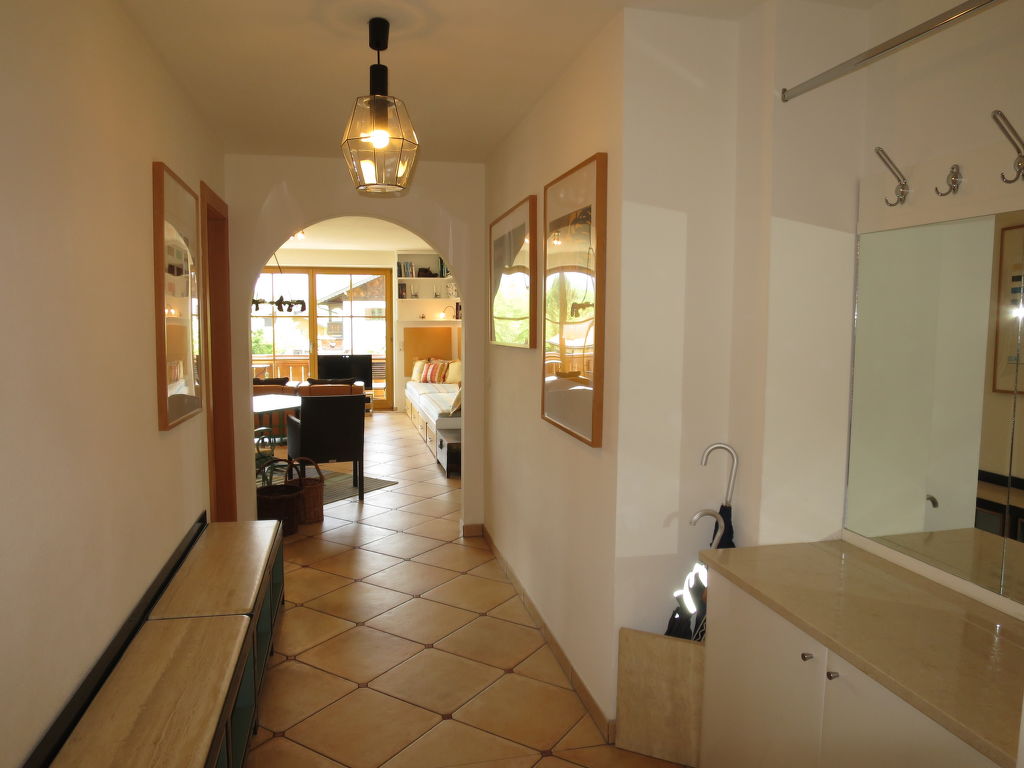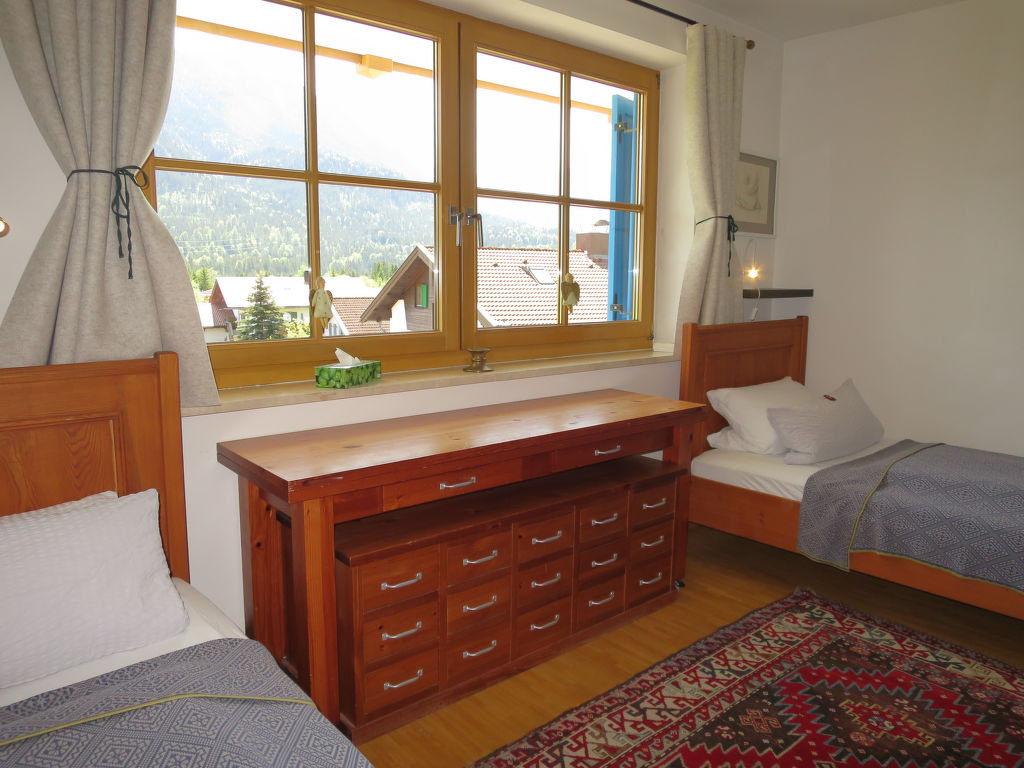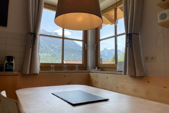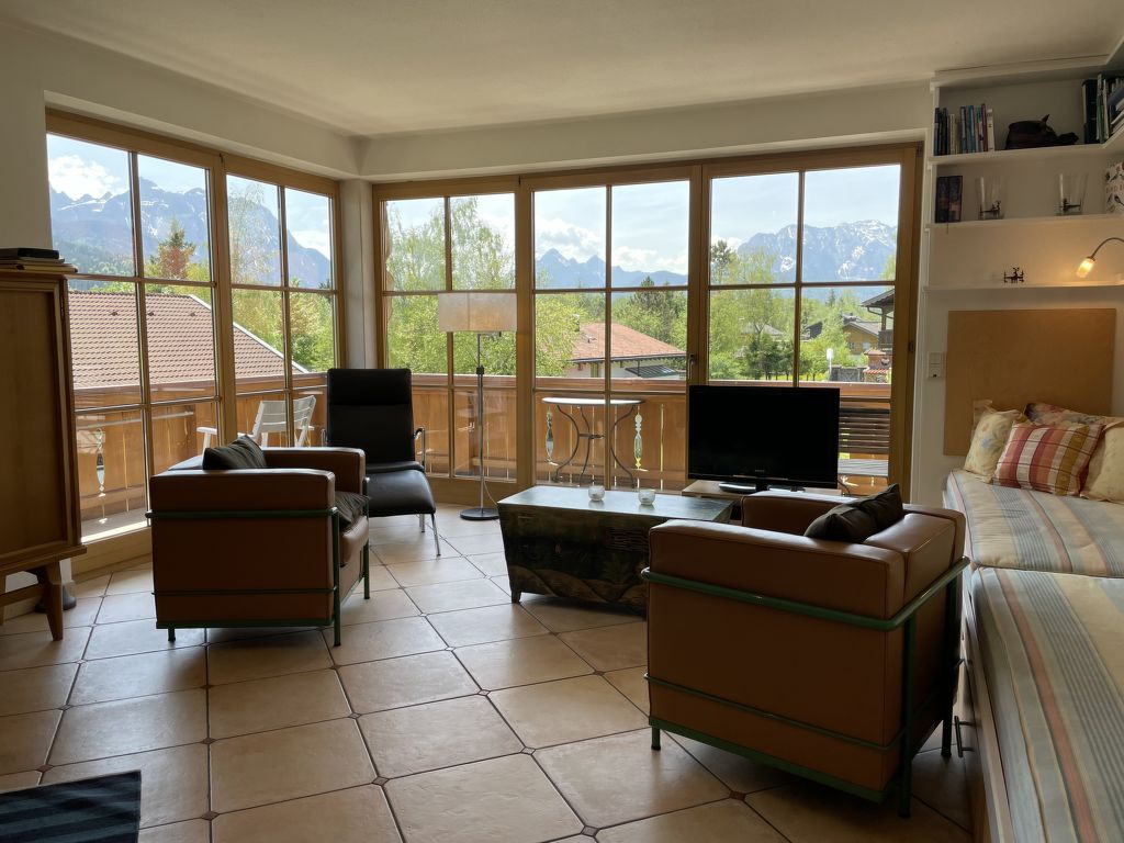 3-Zimmer-Wohnung 92 m2 im 1. Stock. Modern und stilvoll eingerichtet: Wohnzimmer mit Kabel-TV (Flachbildschirm), DVD. Ausgang zum Balkon. 1 Zimmer mit 2 Betten. 1 Doppelzimmer. Küche (Backofen, Geschirrspüler, Mikrowelle, elektrische Kaffeemaschine) mit Esstisch. Dusche/WC, Bad/Dusche/WC. Bodenheizung. Balkon 16 m2, Südlage. Balkonmöbel, Gartengrill. Sehr schöne Panoramasicht auf die Berge. Zur Verfügung: Waschmaschine, Wäschetrockner. Internet (Wireless LAN, gratis). Bitte beachten: Nichtraucher-Unterkunft. Hochwertige Ausstattung mit Parkett- und Terracottaboden sowie Designermöbeln. Küche mit Eckbank und W-LAN-Radio. Sehr schöne Panoramasicht vom Balkon auf Karwendel, Stubai, Wetterstein-Gebirge und Zugspitze.