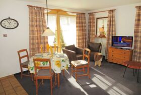 Wohnung 4 (Am Sonneneck), 2-Zimmer-Wohnung 50 m2, im Erdgeschoss. Schön und gemütlich eingerichtet: Wohn-/Esszimmer mit 1 Doppeldiwanbett (160 cm, Länge 200 cm), Kabel-TV (Flachbildschirm), Radio. Ausgang zur Terrasse. 1 Doppelzimmer. Ausgang zur Terrasse. Kochnische (Geschirrspüler, 4 Glaskeramikplatten, elektrische Kaffeemaschine, Kombinationsmikrowelle). Dusche/WC. Terrassenmöbel. Zur Verfügung: Telefon (extra), Kinderhochstuhl, Babybett, Haartrockner. Internet (Wireless LAN, gratis). Bitte beachten: Nichtraucher-Unterkunft. Rauchmelder.
