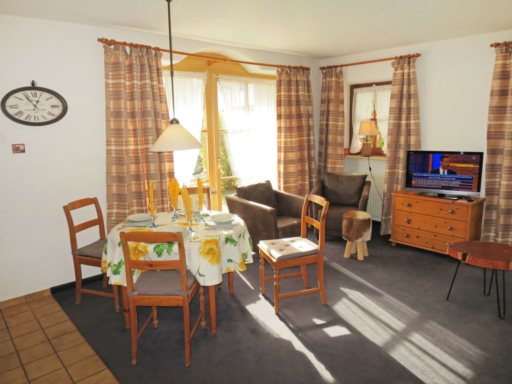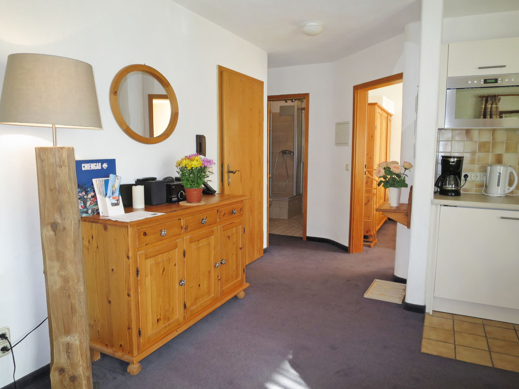 Mehrfamilienhaus Am Sonneneck. Im Ort, 800 m vom Zentrum von Ruhpolding, in einem Wohnquartier, 150 m vom Fluss. Im Hause: Sauna, Ruheraum, Skiraum, Zentralheizung. Parkplatz beim Haus. Supermarkt 1 km, Bar, Bäckerei 800 m, Café, Bahnstation Ruhpolding, Hallenbad 800 m. Golfplatz (18 Loch) 2.5 km, Skilift 2 km, Langlaufloipe 400 m. Nahe gelegene Sehenswürdigkeiten: Chiemgau Coaster (Rodelbahn) 1.7 km, Freizeitpark Ruhpolding 5 km, Salzburg 50 km, München 110 km. Bekannte Skigebiete sind gut erreichbar: Reit im Winkl Steinplatte 18 km. Bekannte Seen in der Umgebung sind gut erreichbar: Chiemsee 23 km, Königssee 44 km. Fluss Weisse Traun 150 m. Sauna, Ruheraum und ein kleiner Kinderspielbereich stehen zur kostenlosen Mitbenutzung zur Verfügung.