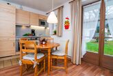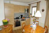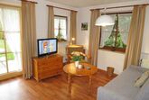 Wohnung 5 (Am Sonneneck), 2-Zimmer-Wohnung 50 m2, im Erdgeschoss. Schön und gemütlich eingerichtet: Wohn-/Esszimmer mit 1 Doppeldiwanbett (160 cm, Länge 200 cm), Kabel-TV (Flachbildschirm). Ausgang zur Terrasse. 1 Doppelzimmer. Ausgang zur Terrasse. Kochnische (Backofen, Geschirrspüler, 4 Glaskeramikplatten, Mikrowelle, elektrische Kaffeemaschine). Dusche/WC. Terrassenmöbel. Zur Verfügung: Kinderhochstuhl, Babybett, Haartrockner. Internet (Wireless LAN, gratis). Bitte beachten: Nichtraucher-Unterkunft. Maximal 1 Haustier/Hund erlaubt. Rauchmelder.